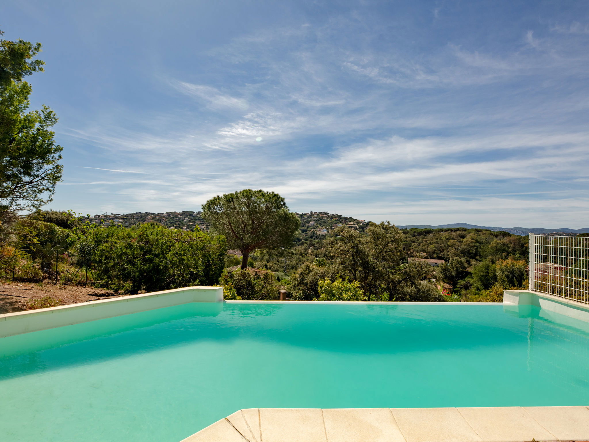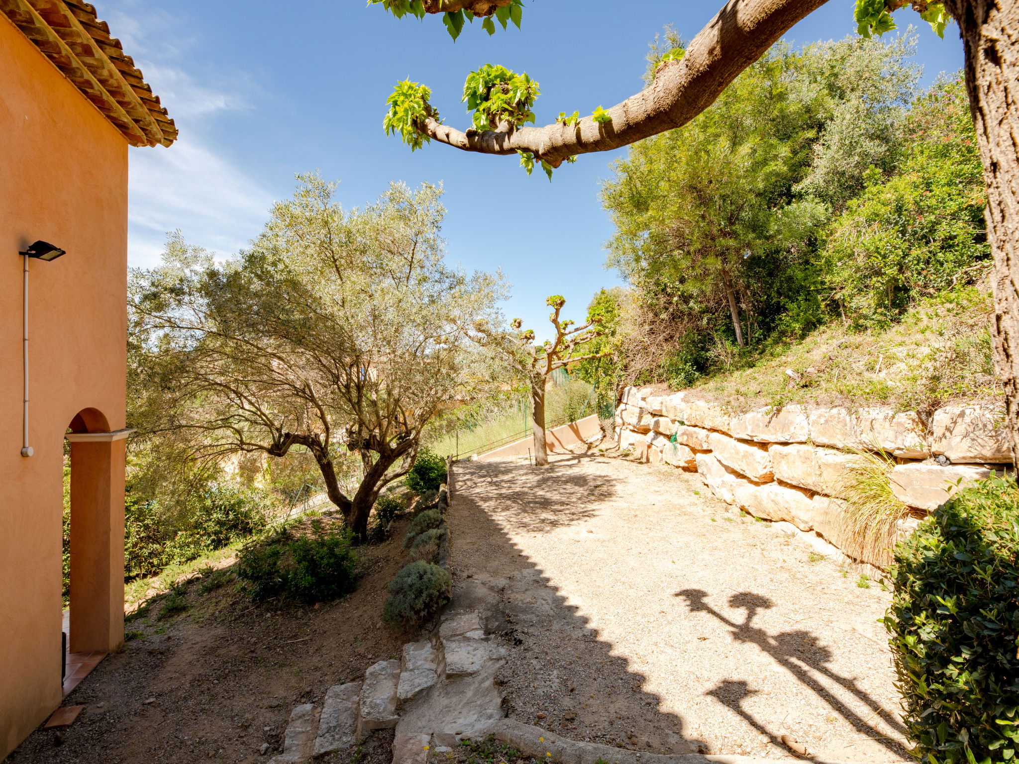Beautiful villa "La Figuière". 3.5 km from the centre of Sainte Maxime, 17 km from the centre of Saint Tropez, 70 km from the centre of Cannes, on a slope, residential area (villas), 3 km from the sea. Private: property 1'800 m2 (fenced), terraced garden with wildlife garden, swimming pool (9 x 3 m, seasonal availability: 01.Mar. - 31.Oct.). Boules. Stepped path to the house. Parking (for 2 cars) on the premises, single garage. Shop 3.5 km, bus stop 600 m, sandy beach "La Nartelle" 3 km. Golf course (18 hole) 2 km. The owner does not accept any youth groups.