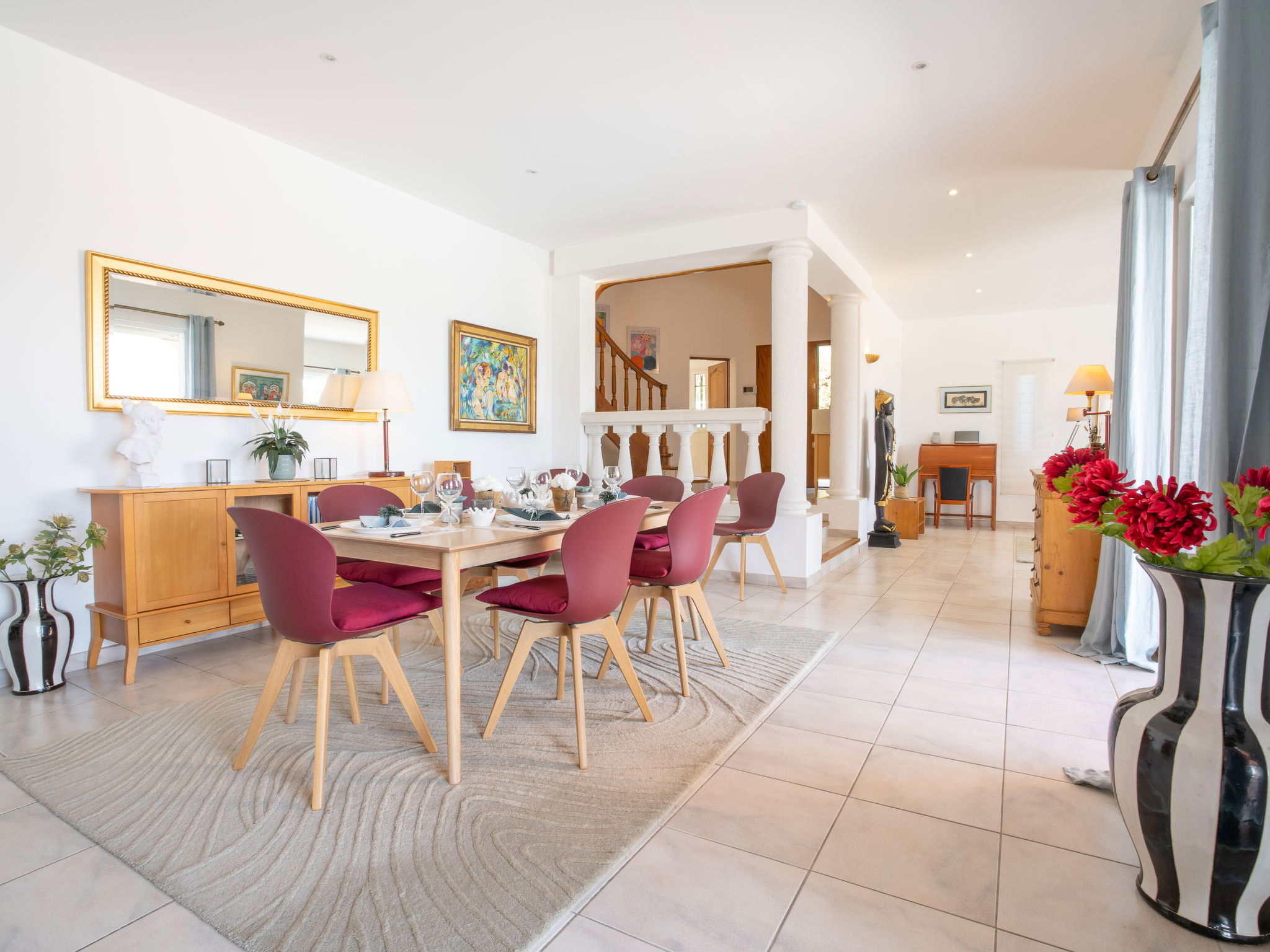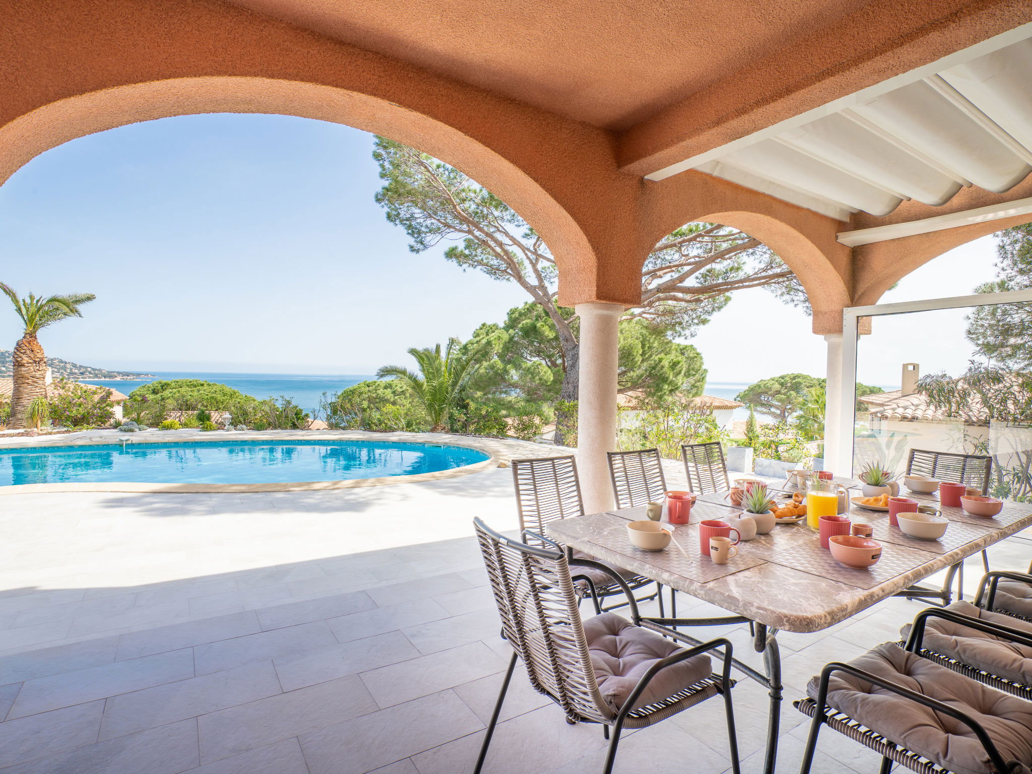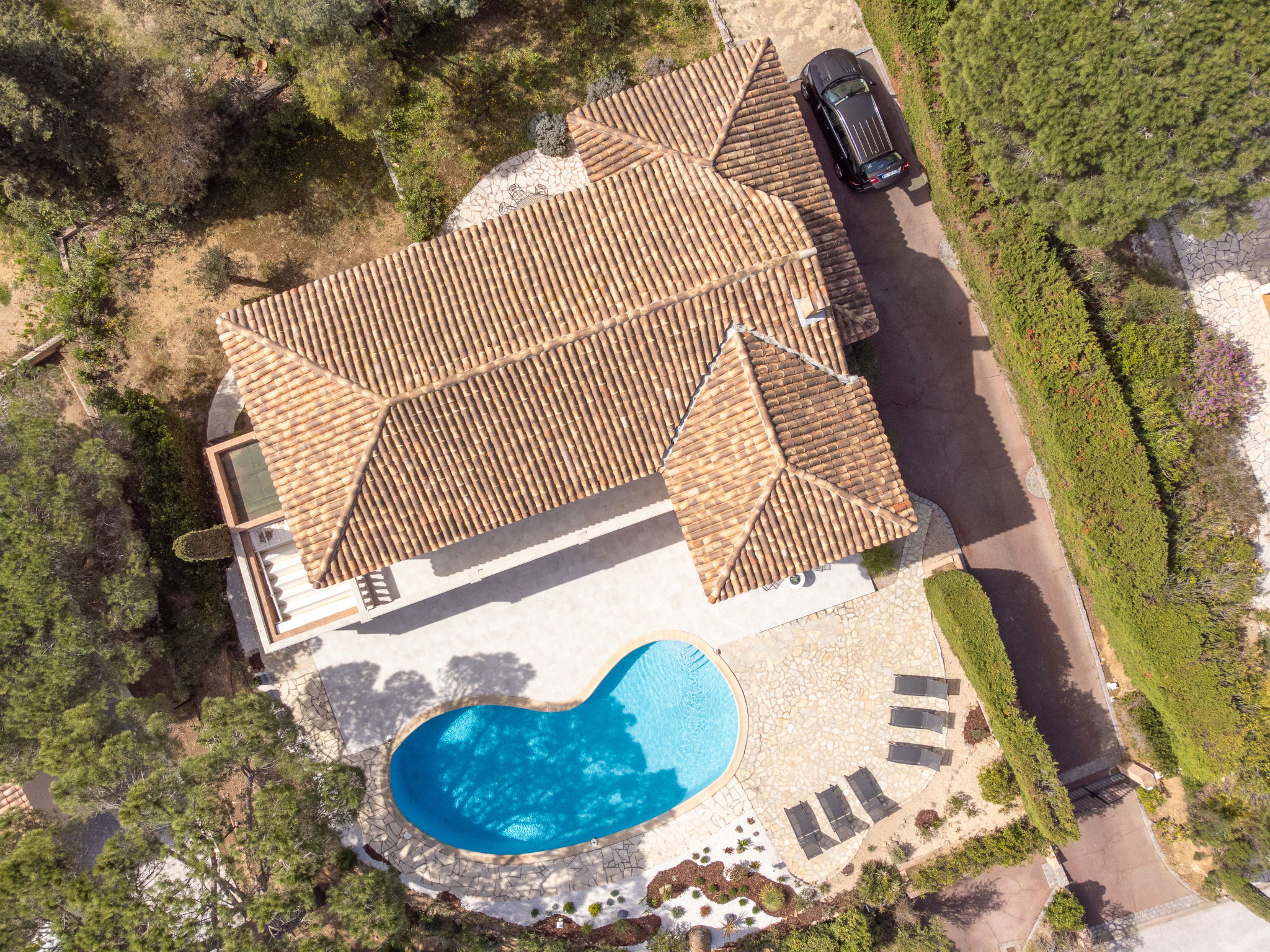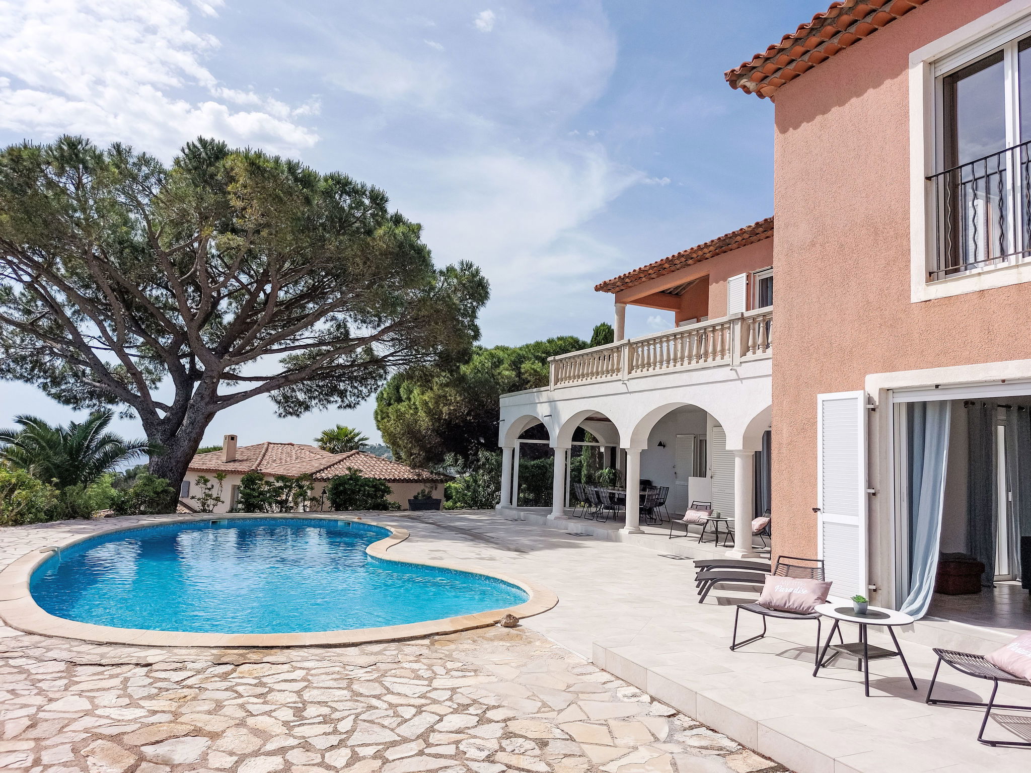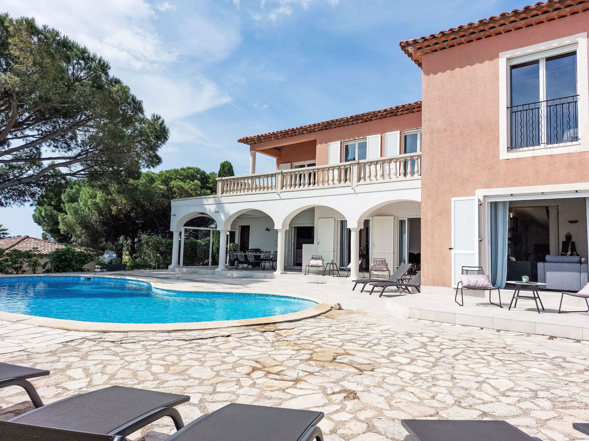 Large, beautiful villa "Cacharel". In the district of La Nartelle 7 km from the centre of Sainte Maxime, 3.3 km from the centre of Les Issambres, 18 km from the centre of Saint Tropez, on a slope, residential area (villas), 1 km from the sea. Private: property 1'500 m2, well-kept garden with lawn and wildlife garden, swimming pool (12 x 4 m, seasonal availability: 01.Jan. - 31.Dec.) with alarm system and salt-electrolysis pool-cleaning system. Boules, parking on the premises, single garage. Shop 3.3 km, bus stop 1.3 km, sandy beach 1 km. The owner does not accept any groups.