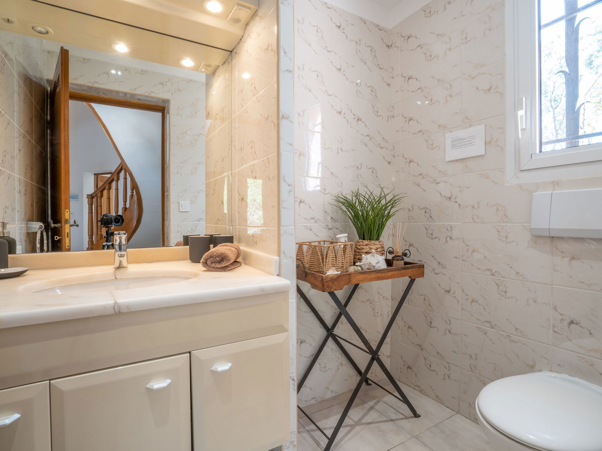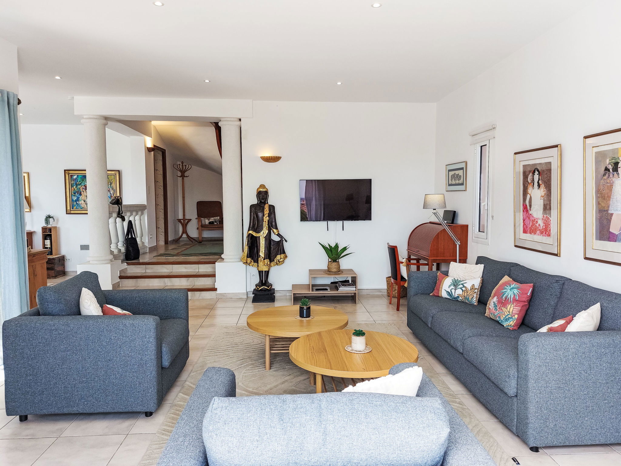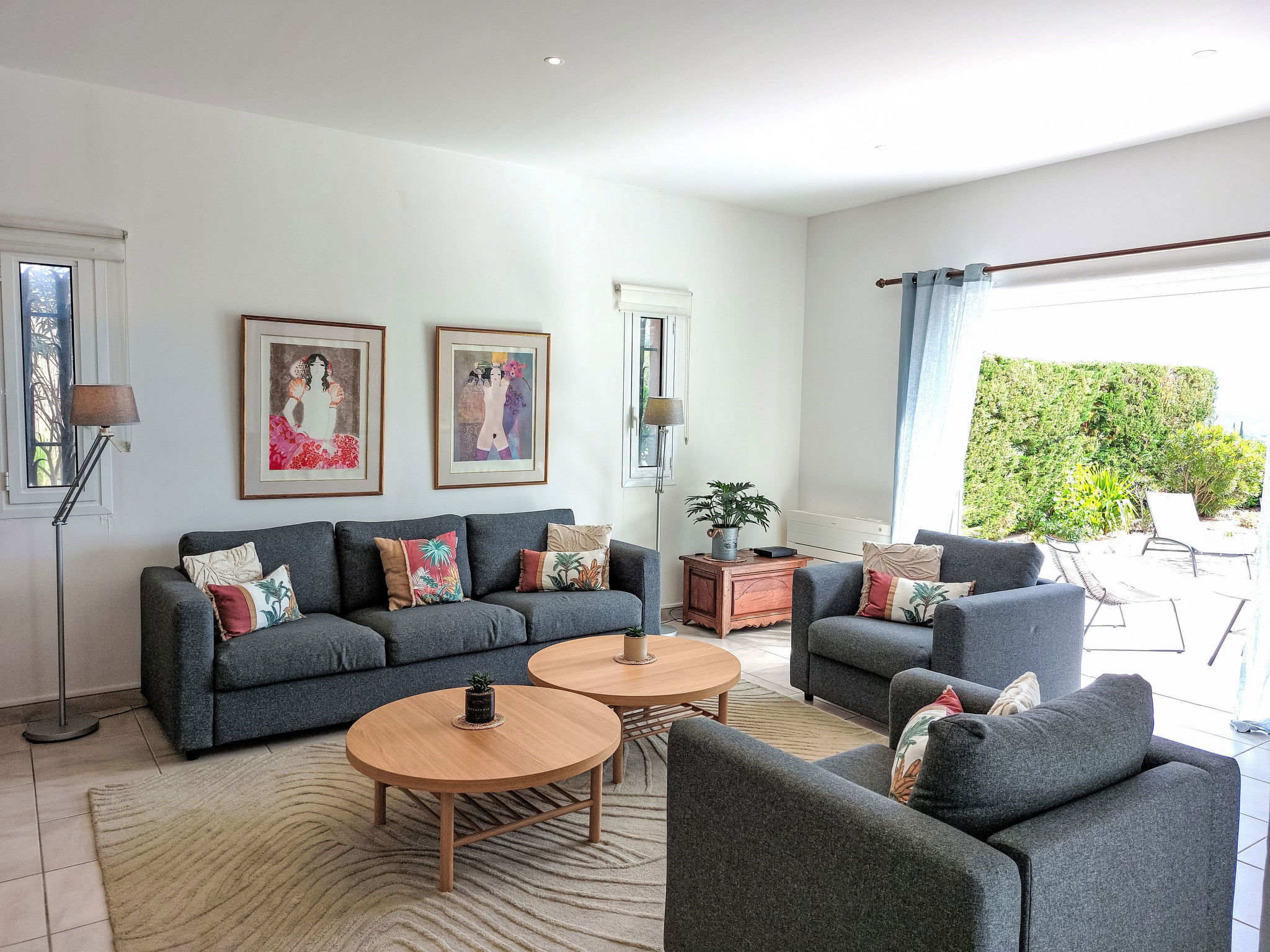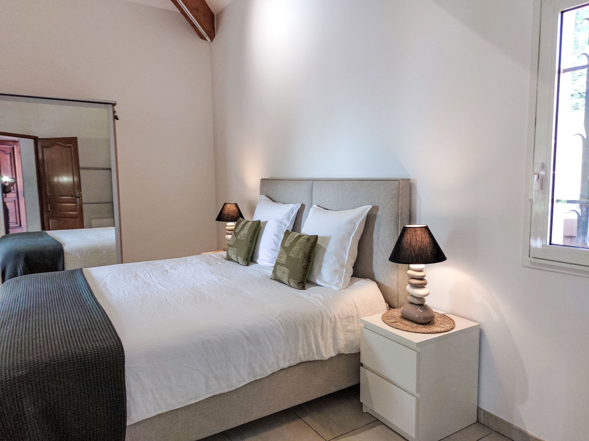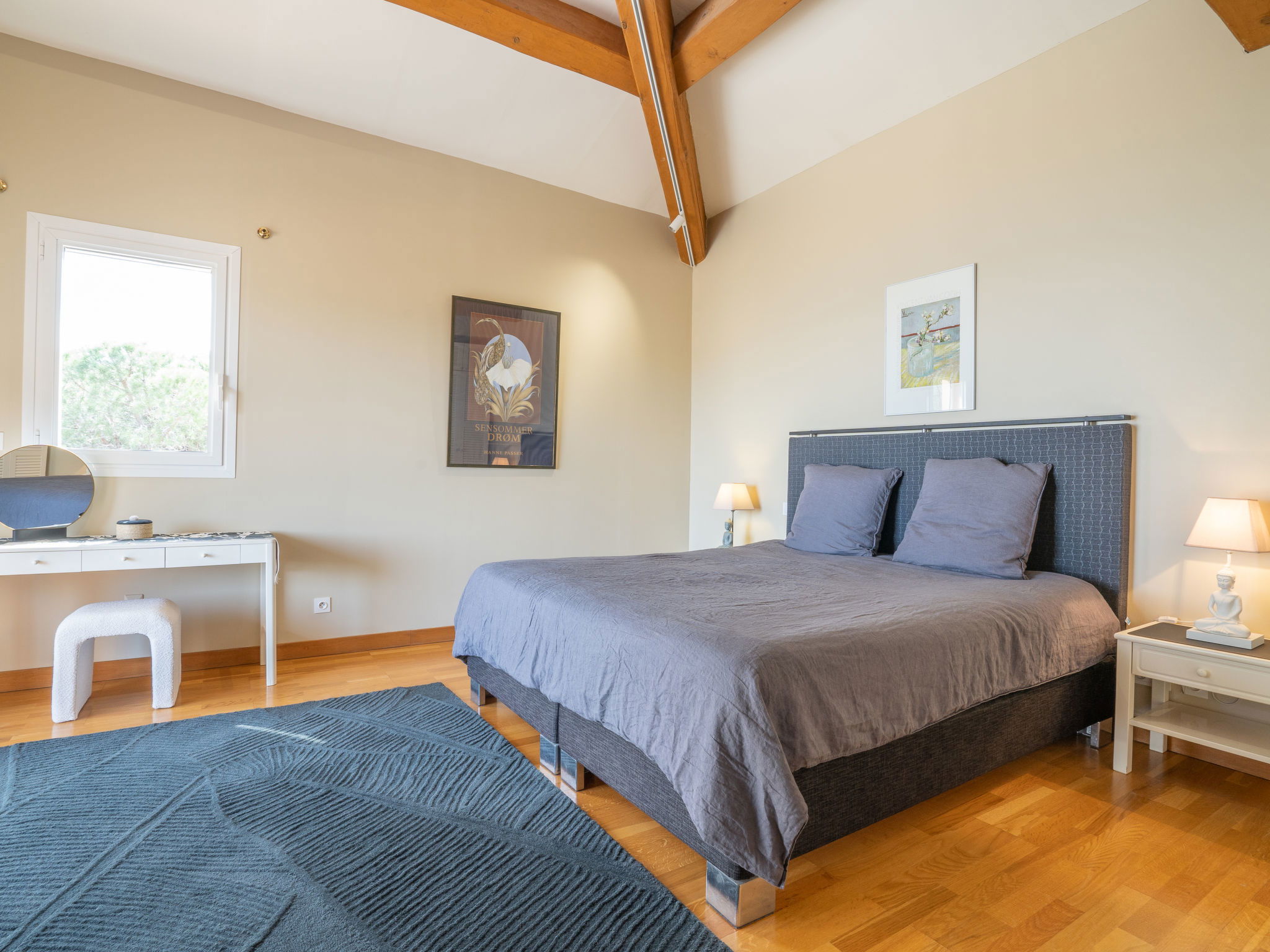 Large, beautiful villa "Cacharel". In the district of La Nartelle 7 km from the centre of Sainte Maxime, 3.3 km from the centre of Les Issambres, 18 km from the centre of Saint Tropez, on a slope, residential area (villas), 1 km from the sea. Private: property 1'500 m2, well-kept garden with lawn and wildlife garden, swimming pool (12 x 4 m, seasonal availability: 01.Jan. - 31.Dec.) with alarm system and salt-electrolysis pool-cleaning system. Boules, parking on the premises, single garage. Shop 3.3 km, bus stop 1.3 km, sandy beach 1 km. The owner does not accept any groups.