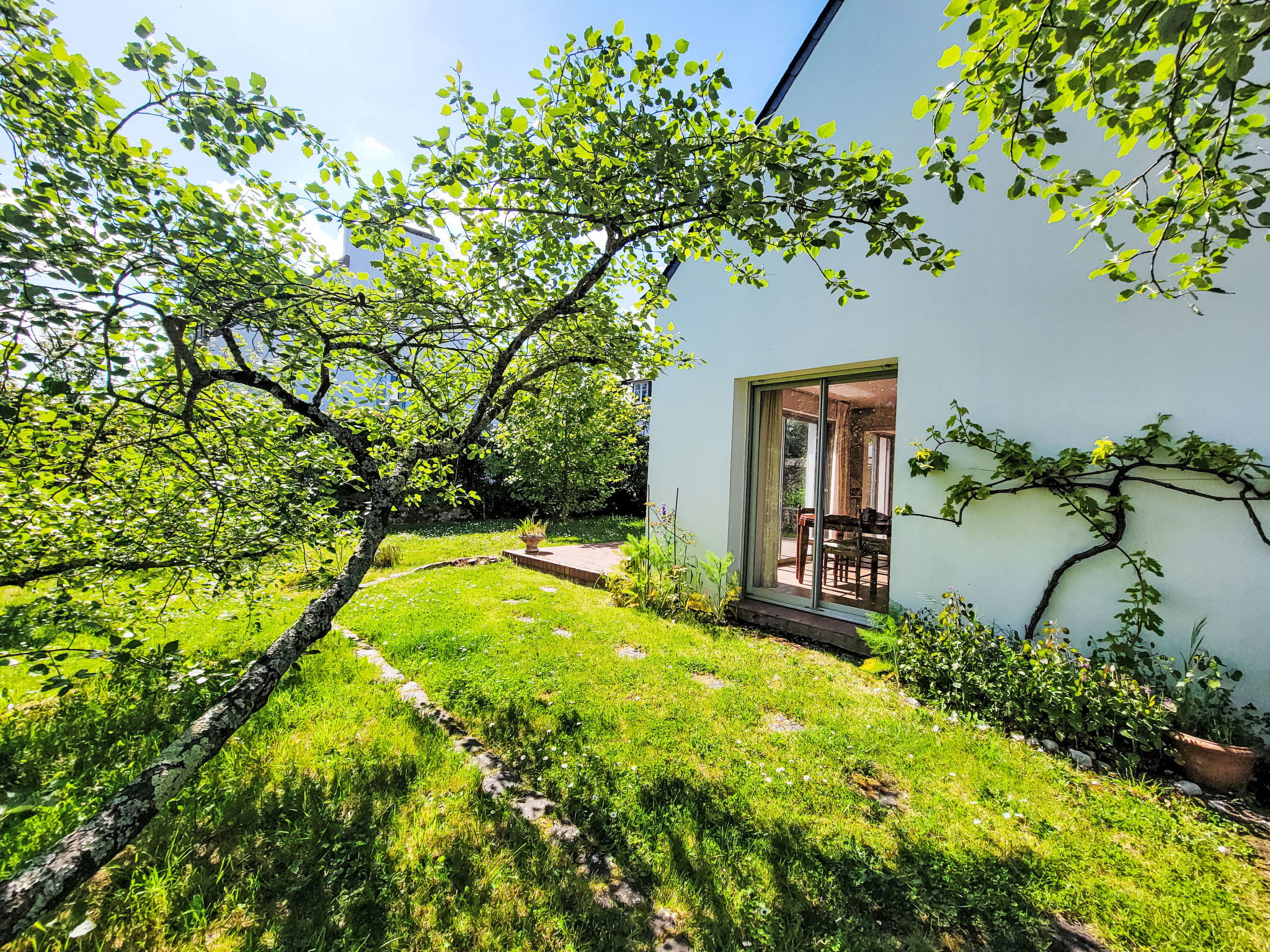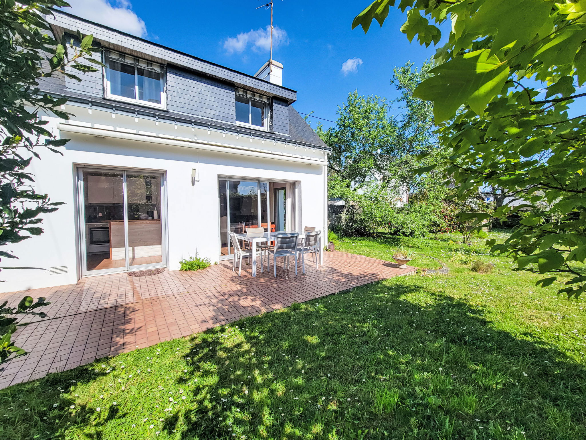 3-room house 90 m2 on 2 levels. Beautiful furnishings: living/dining room with TV (flat screen). Exit to the garden, to the terrace. Small kitchen (4 hot plates, oven, dishwasher, toaster, kettle, microwave, freezer, electric coffee machine). Exit to the garden, to the terrace. Upper floor: 1 room with 2 beds (90 cm, length 190 cm). 1 room with 1 french bed (1 x 140 cm, length 190 cm). Bathroom, sep. WC. Electric heating. Terrace 15 m2. Terrace furniture, barbecue, deck chairs (2). View of the garden. Facilities: washing machine, iron, hair dryer. Internet (WiFi, free). Please note: smoke alarm. 56258000149JB