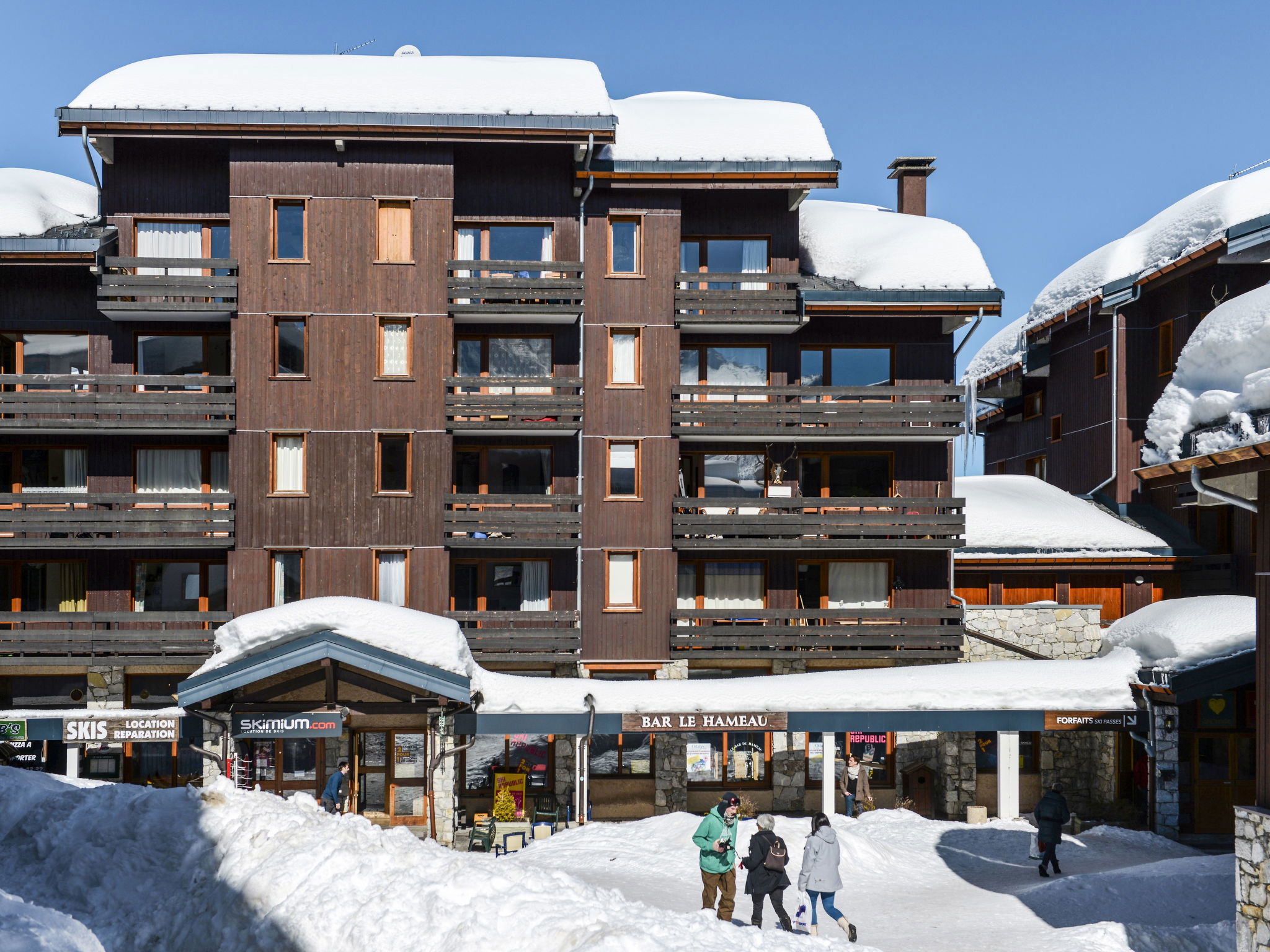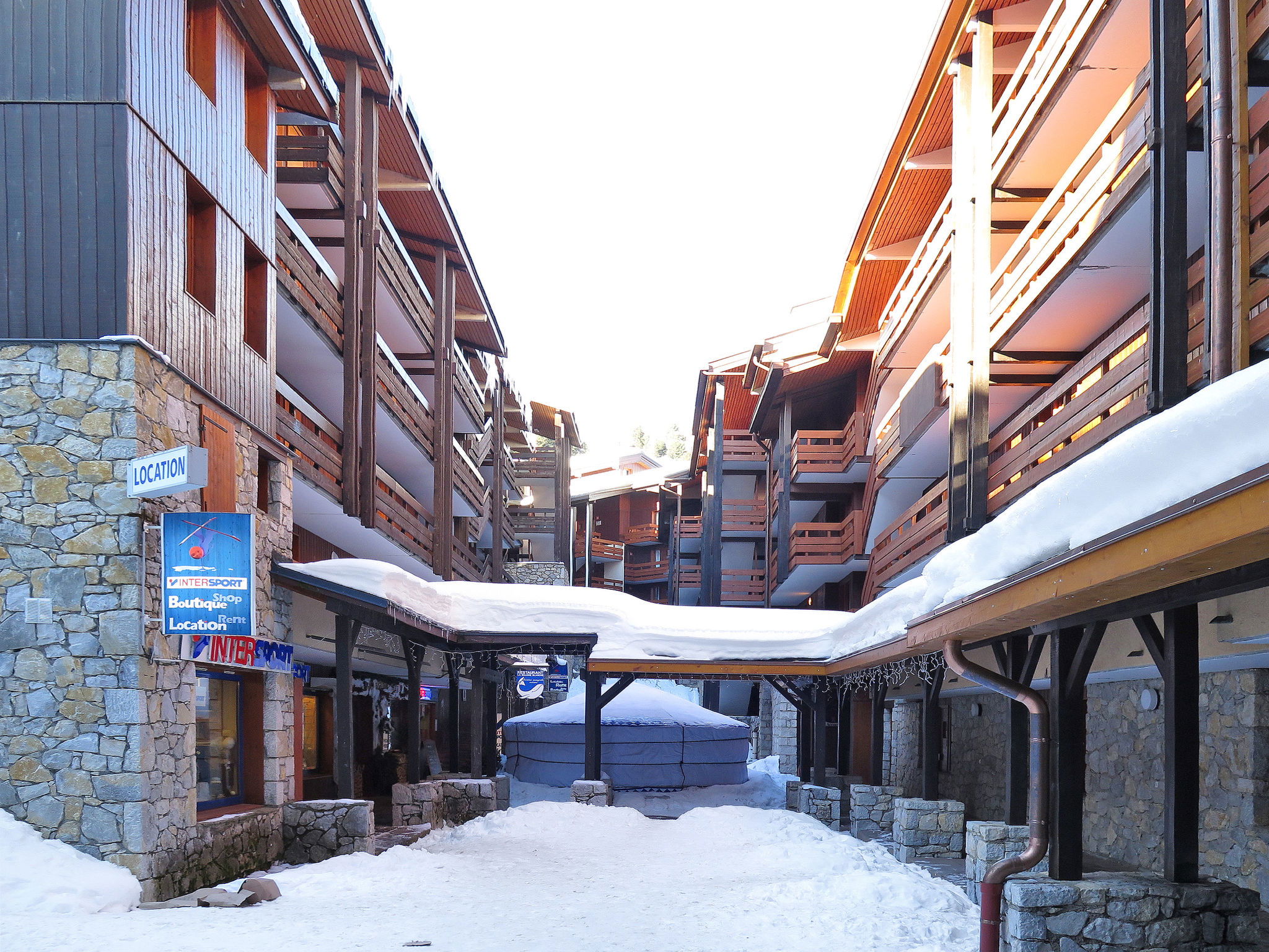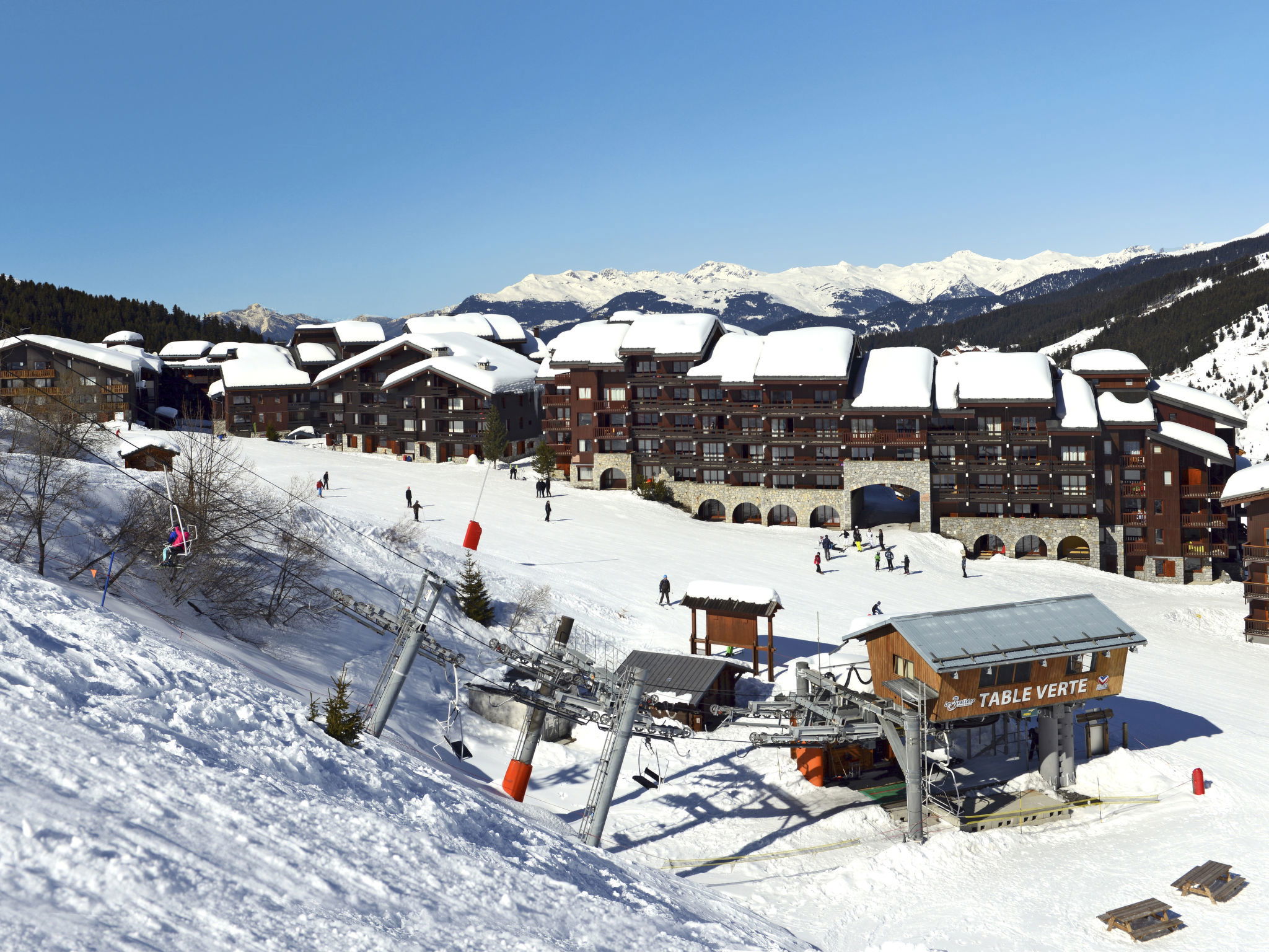Beautiful, rustic residence "Odalys - Le Hameau du Mottaret", 1'800 m a.s.l.. In the district of Méribel-Mottaret, 3.5 km from the centre of Méribel, 25 km from the centre of Moutiers, in an elevated position on a slope, directly by the skiing area. In the complex: lounge, WiFi (extra). Playroom, storage room for skis, washing machine (for shared use, extra). Communal covered parking (extra). Parking space or garage only for small to medium-sized cars. Dimension: height 200 cm. Shop 500 m, restaurant 1.3 km. Walking paths from the house, slopes 50 m, ski rental 100 m. Well-known ski regions can easily be reached: Les 3 Vallées. Please note: the photograph shows a typical example. The holiday properties may differ in living space, floorplan, equipment and furnishing.