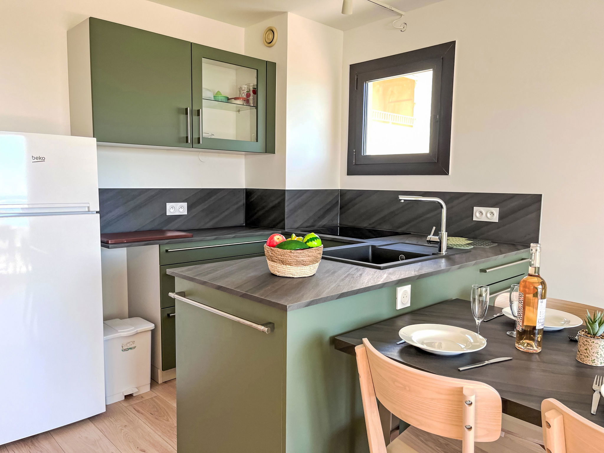 3-room apartment 48 m2 on 3rd floor. Spacious, partly renovated in 2025: living/dining room with panoramic window with TV (flat screen), radio and electric shutters. Exit to the terrace, to the loggia. 1 children's room with 1 x 2 bunk beds (90 cm, length 190 cm). 1 room with 1 french bed (140 cm, length 190 cm). Small kitchen (3 hot plates, oven, dishwasher, microwave) with hatch. Bathroom, sep. WC. Heating, electric heating. Terrace 6 m2, south facing position. Balcony furniture. Very beautiful view of the sea and the swimming pool. Facilities: washing machine, baby cot. Internet (WiFi, extra). Parking space n 176 (roofed). Please note: smoke alarm. Offer by a private individual according to Art. 155, IV of CGI.