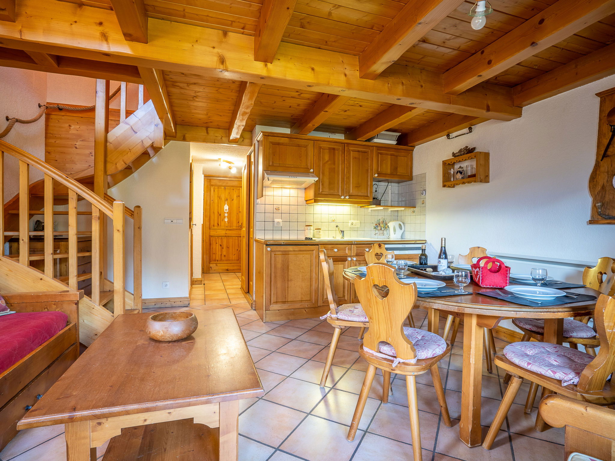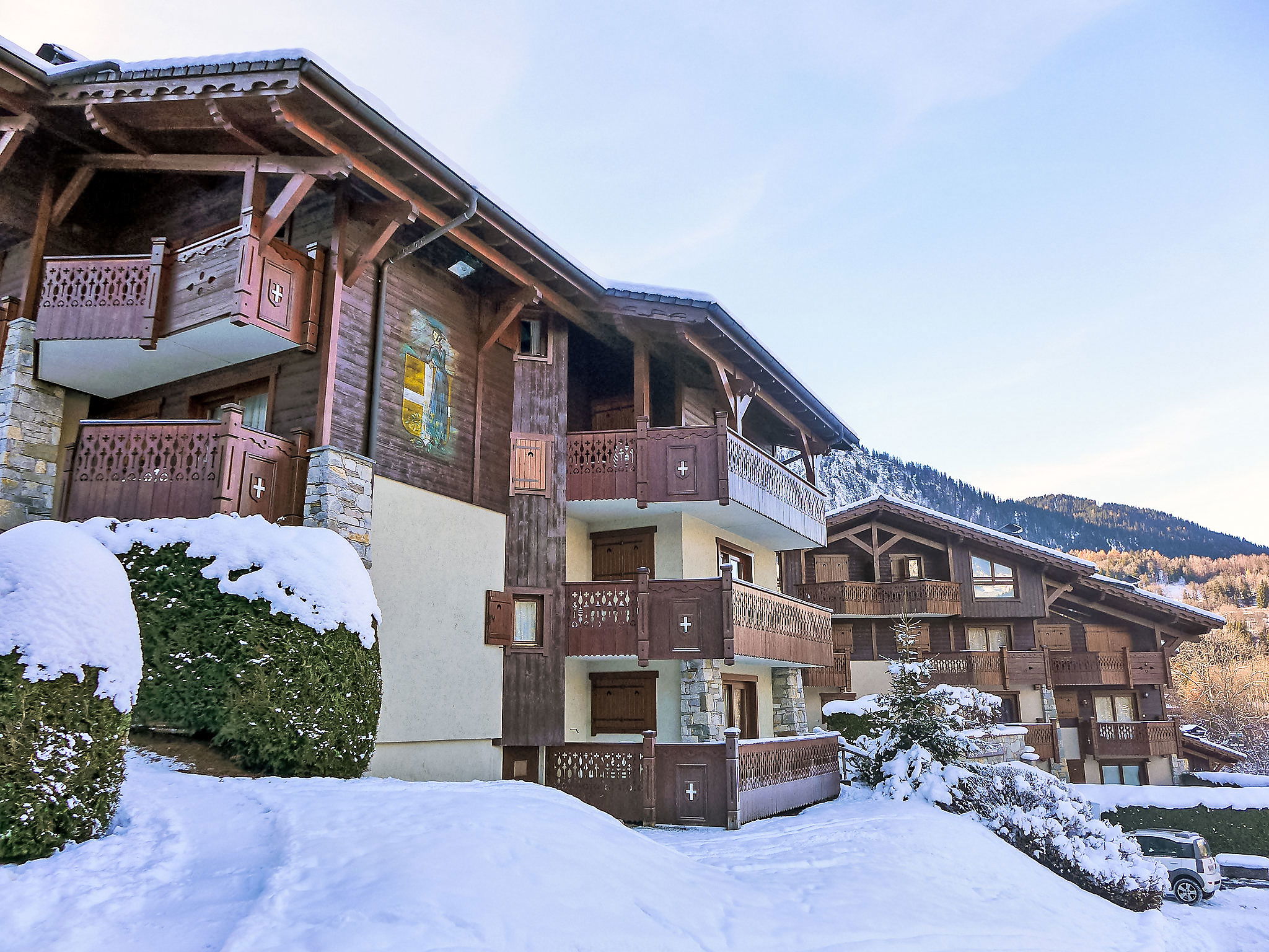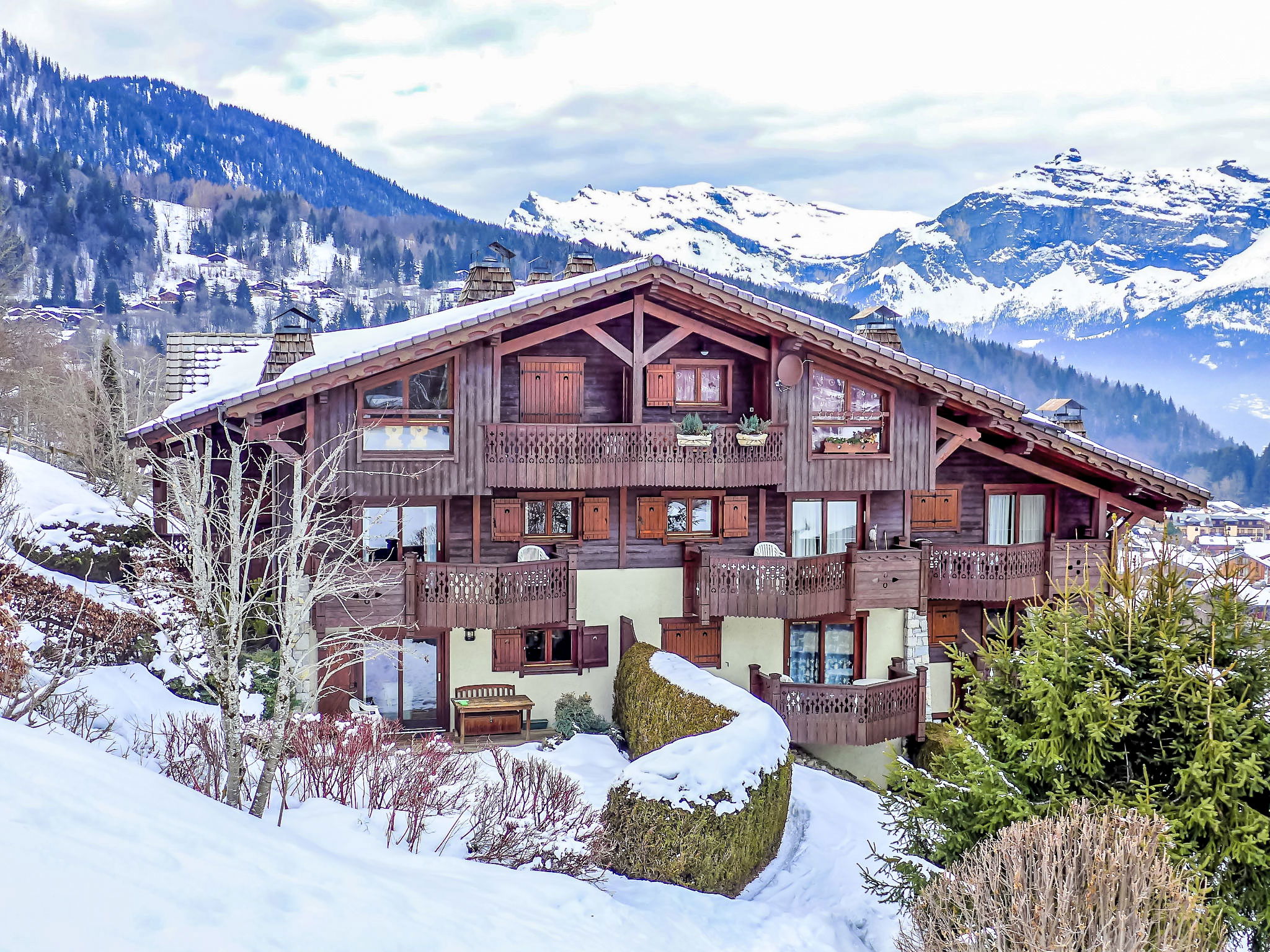 Residence "Les Hauts des Chavants -". 2 km from the centre, 10 m from the skiing area. For shared use: indoor pool heated (6 x 12 m). In the complex: solarium, storage room for skis. In Winter: please take snow chains. Parking (limited number of spaces). Shop, supermarket 2 km, restaurant 500 m, bus stop 200 m. Sports centre 12 km, skisport facilities 200 m, ski school 120 m, cross country ski track 200 m. Well-known ski regions can easily be reached: Le Prarion. The residence Les Hauts des Chavants comprises of 9 chalets.