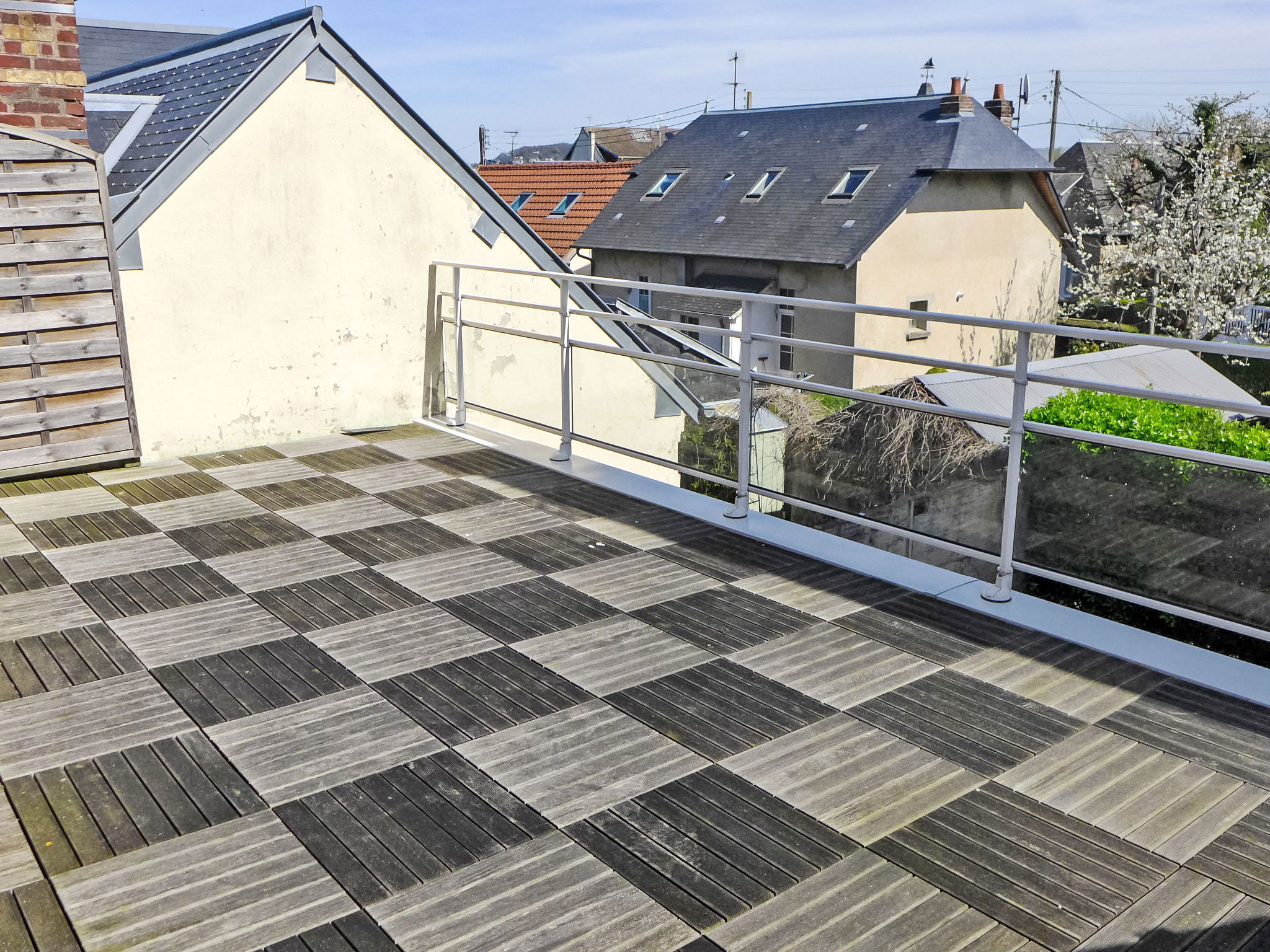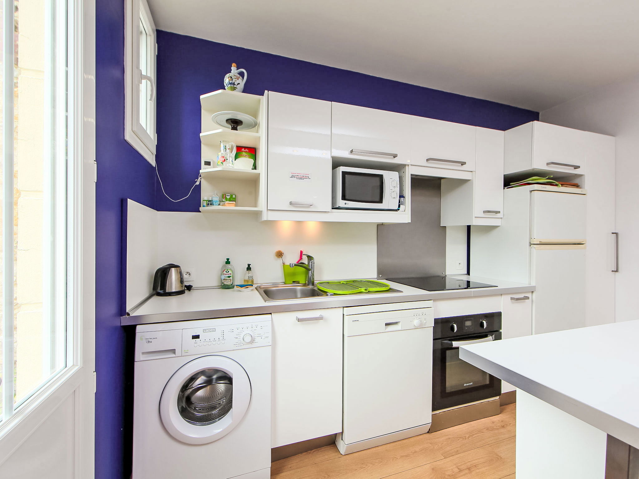4-room villa 110 m2 on 3 levels, south-east facing position. Living/dining room with TV (flat screen). Exit to the garden. 1 room with 1 french bed (140 cm, length 200 cm). Open kitchen (oven, dishwasher, 3 ceramic glass hob hotplates, toaster, kettle, microwave, freezer, electric coffee machine) with hatch. Shower, sep. WC. Gas heating. Upper floor: 1 room with 2 beds (90 cm, length 190 cm), hand-basin and shower. Exit to the terrace. 2nd upper floor: 1 room with 1 french bed (2 x 80 cm, length 190 cm), hand-basin and separate WC. Parquet floors. Terrace 30 m2, garden 200 m2. Terrace furniture. Facilities: washing machine, iron. Internet (WiFi, extra). Parking (fenced). Please note: non-smoking house. Smoke alarm. Pets not tolerated. 14640990995AB