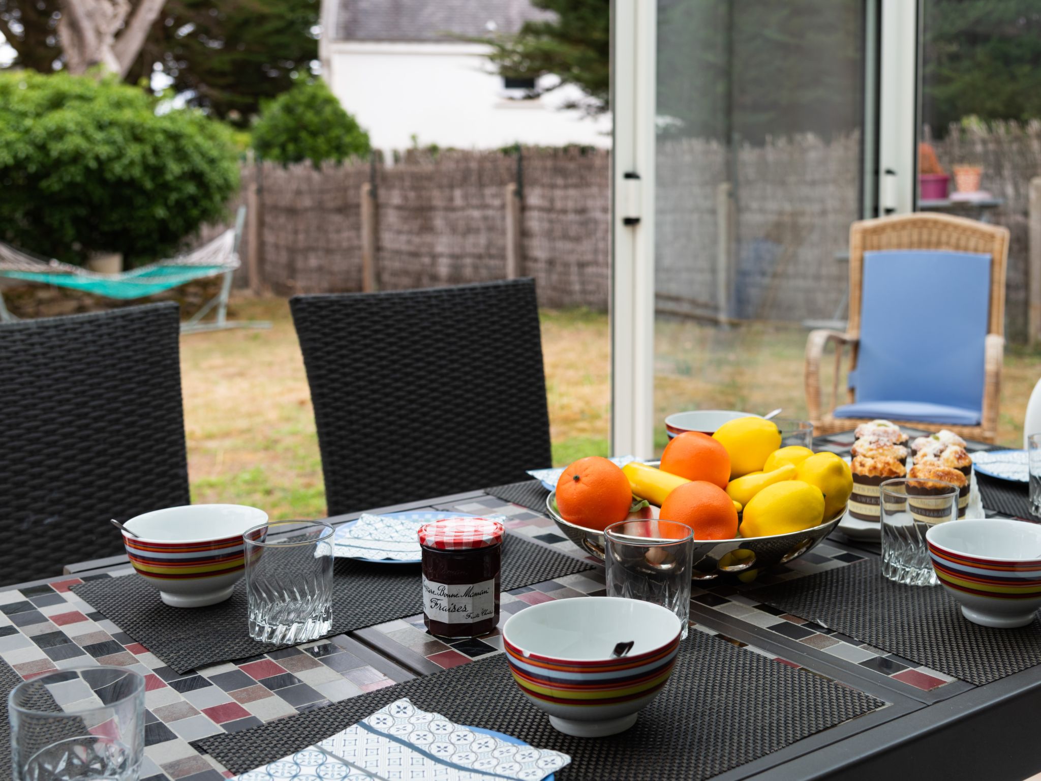 4-room house 120 m2 on 2 levels. Comfortable furnishings: living/dining room with TV (flat screen). 1 room with 1 french bed (1 x 160 cm, length 190 cm), TV (flat screen). Open kitchen (4 hot plates, oven, dishwasher, freezer, electric coffee machine, Capsules for coffee machine (Tassimo) extra). Exit to the veranda. Shower, sep. WC. Upper floor: 1 room with 2 beds (80 cm, length 190 cm), TV (flat screen). 1 room with (length 1 cm), 1 french bed (1 x 160 cm, length 190 cm). Shower, sep. WC. Electric heating. Terrace, garden. Terrace furniture. Facilities: washing machine. Internet (WiFi, free). Parking. Please note: smoke alarm. 56234 000208 5B