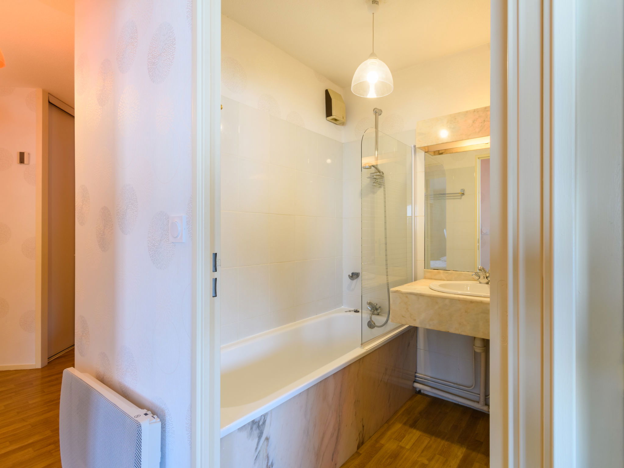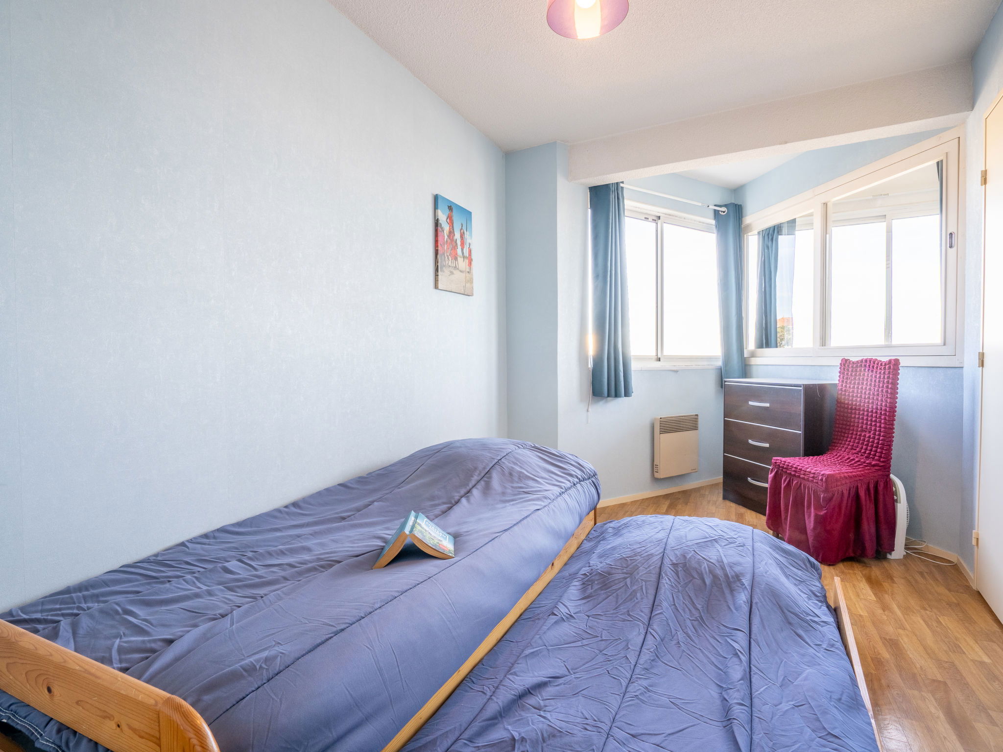 3-room apartment 75 m2 on 3rd floor. Spacious and bright, comfortable and beautiful furnishings: living/dining room with 1 double sofabed (1 x 140 cm), TV (flat screen). 1 room with 1 french bed (1 x 140 cm, length 190 cm). 1 room with 1 pull-out bed (2 pers. 2 x 90 cm), shower/WC. Open kitchen (dishwasher, 4 ceramic glass hob hotplates, toaster, kettle, microwave, freezer, electric coffee machine, Capsules for coffee machine (Senseo) extra). Bathroom, sep. WC. Electric heating. Marvellous panoramic view of the port. Facilities: washing machine, dryer, iron, hair dryer. Internet (WiFi, free). Parking space n 1058/1059 (2 cars). Please note: non-smokers only. Maximum 1 pet/ dog allowed. Smoke alarm. Offer by a private individual according to Art. 155, IV of CGI. 3300900036909
