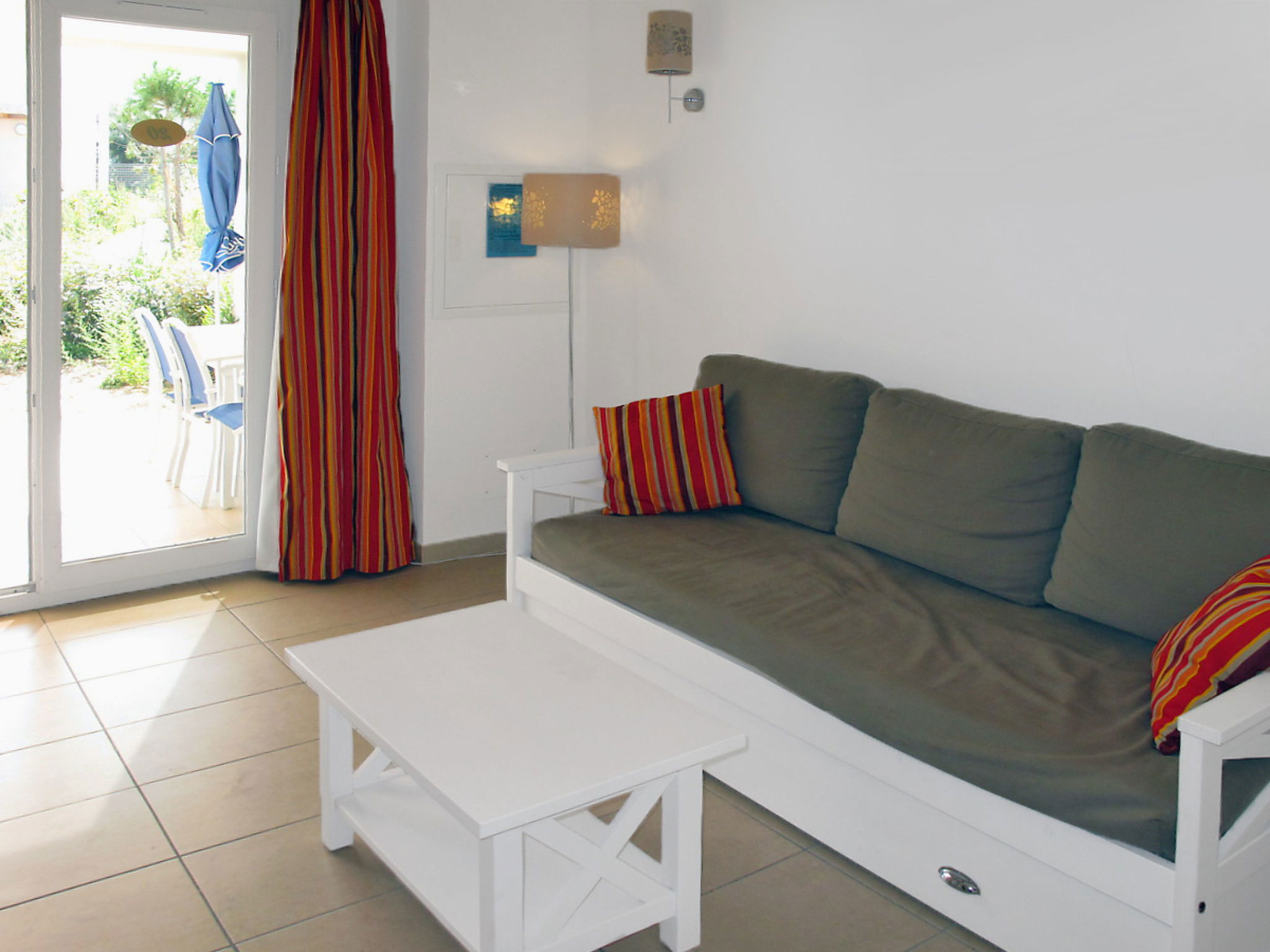 "Odalys Référence Les Villas Bel Godère", 2-room terraced house 33 m2 on 2 levels. Bright, modern furnishings: living/sleeping room with 1 double sofabed, dining table and TV can be hired. Exit to the terrace. 1 room with 1 french bed. Small, open kitchen (dishwasher, 2 ceramic glass hob hotplates, microwave, electric coffee machine). Sep. WC, bath or shower. Electric heating, air-conditioning. Terrace. Terrace furniture. Facilities: children's high chair, baby cot (extra). Please note: non-smoking house. Smoke alarm, fire extinguisher. This type of house can also be on 2 floors: Instead of the bedroom, there is a gallery open to the living room with a french bed.