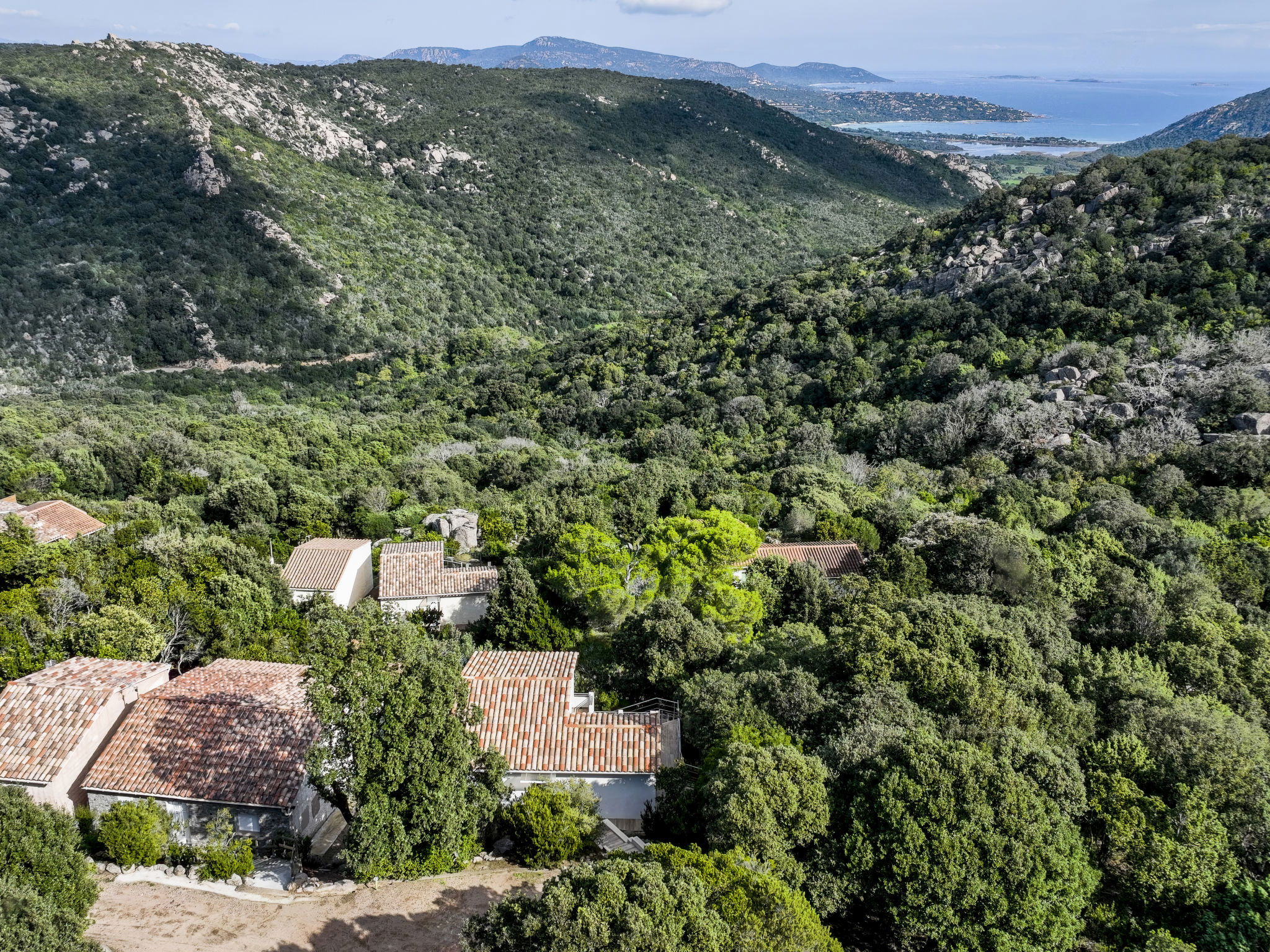 Residence "Pietralunga". In the hamlet Pietralunga with 20 houses, on a slope, 6 km from the sea, 6 km from the beach. In the complex: motor access (mountain road). Parking. Grocery 6 km, supermarket 9 km, shopping centre 10 km, restaurant 6 km, bakery 4 km, bus stop 1 km, sandy beach "Santa Giulia" 6 km. Marina 10 km, golf course (9 hole) 5 km, riding stable 11 km. Nearby attractions: Bonifacio 22 km, Figari 18 km, Porto Vechio 12 km, Iles Lavezzi. Well-known lakes can easily be reached: Lac de l'Ospedale. Hiking paths: Aiguille de Bavella. Please note: car recommended.