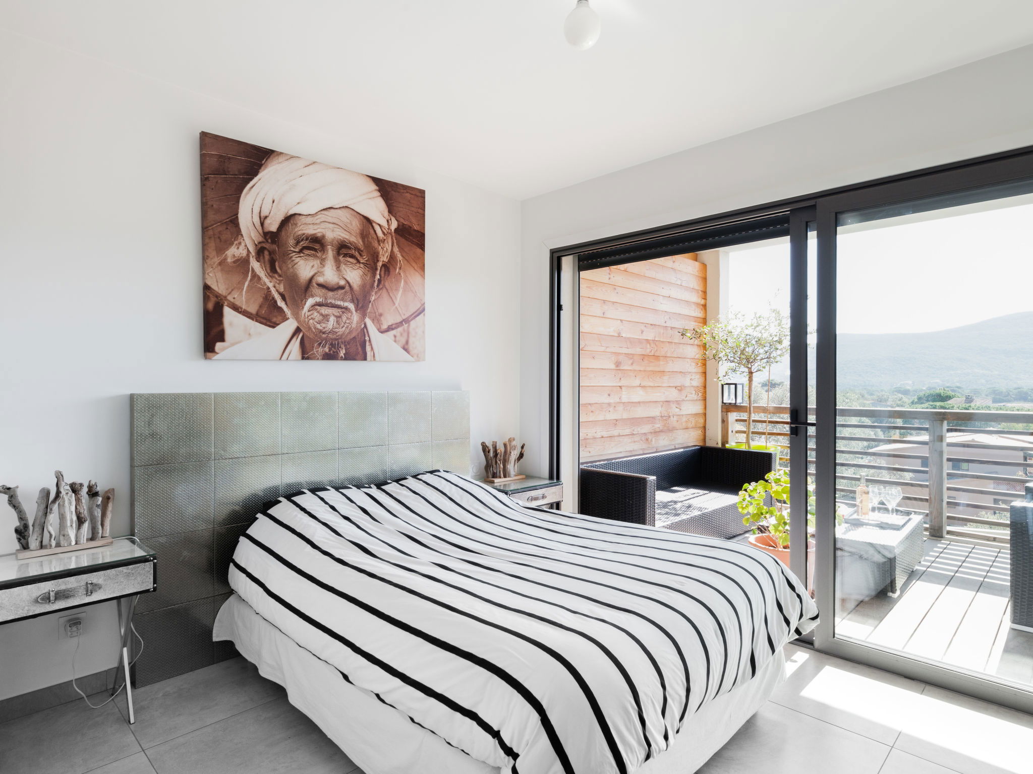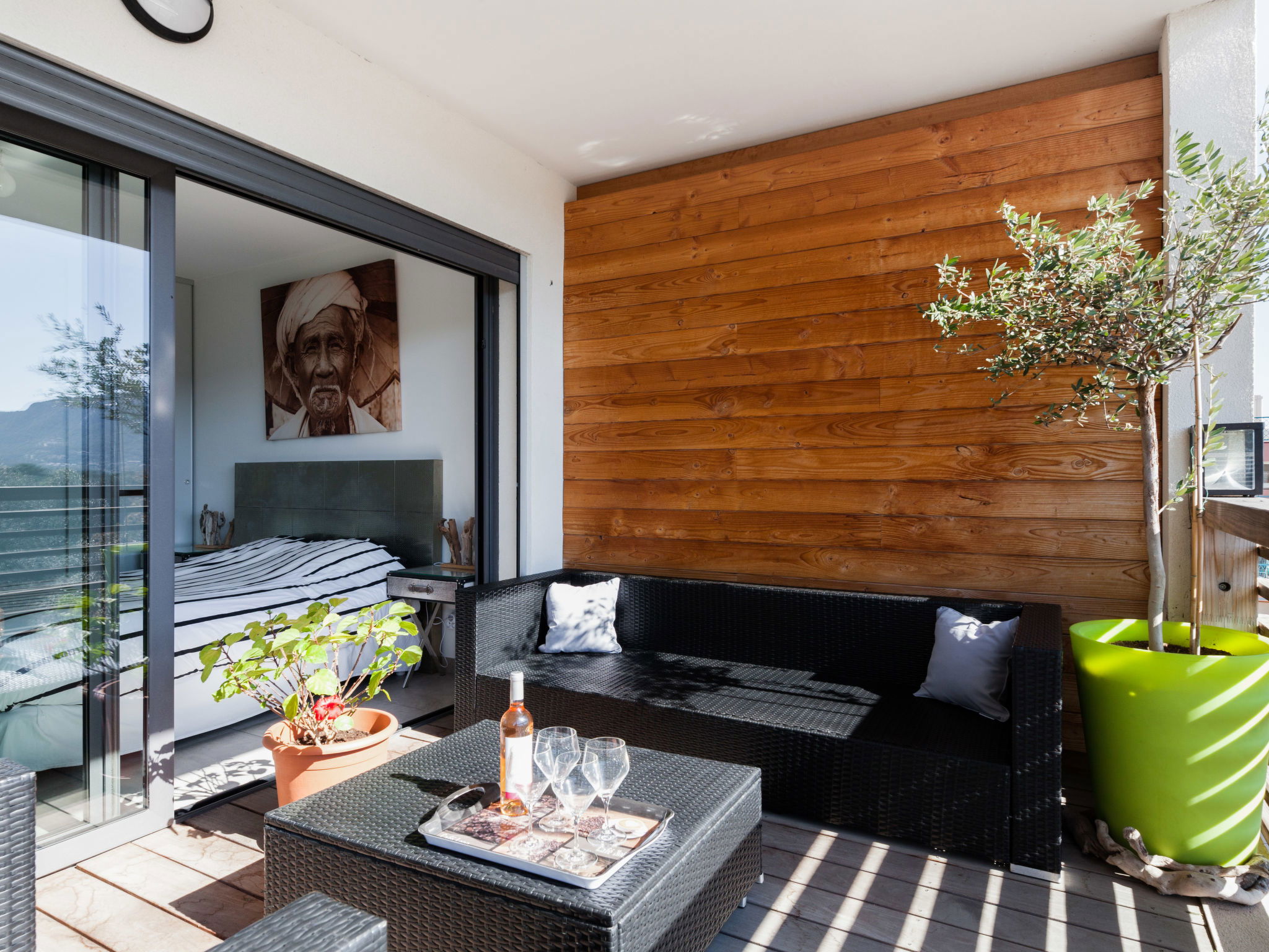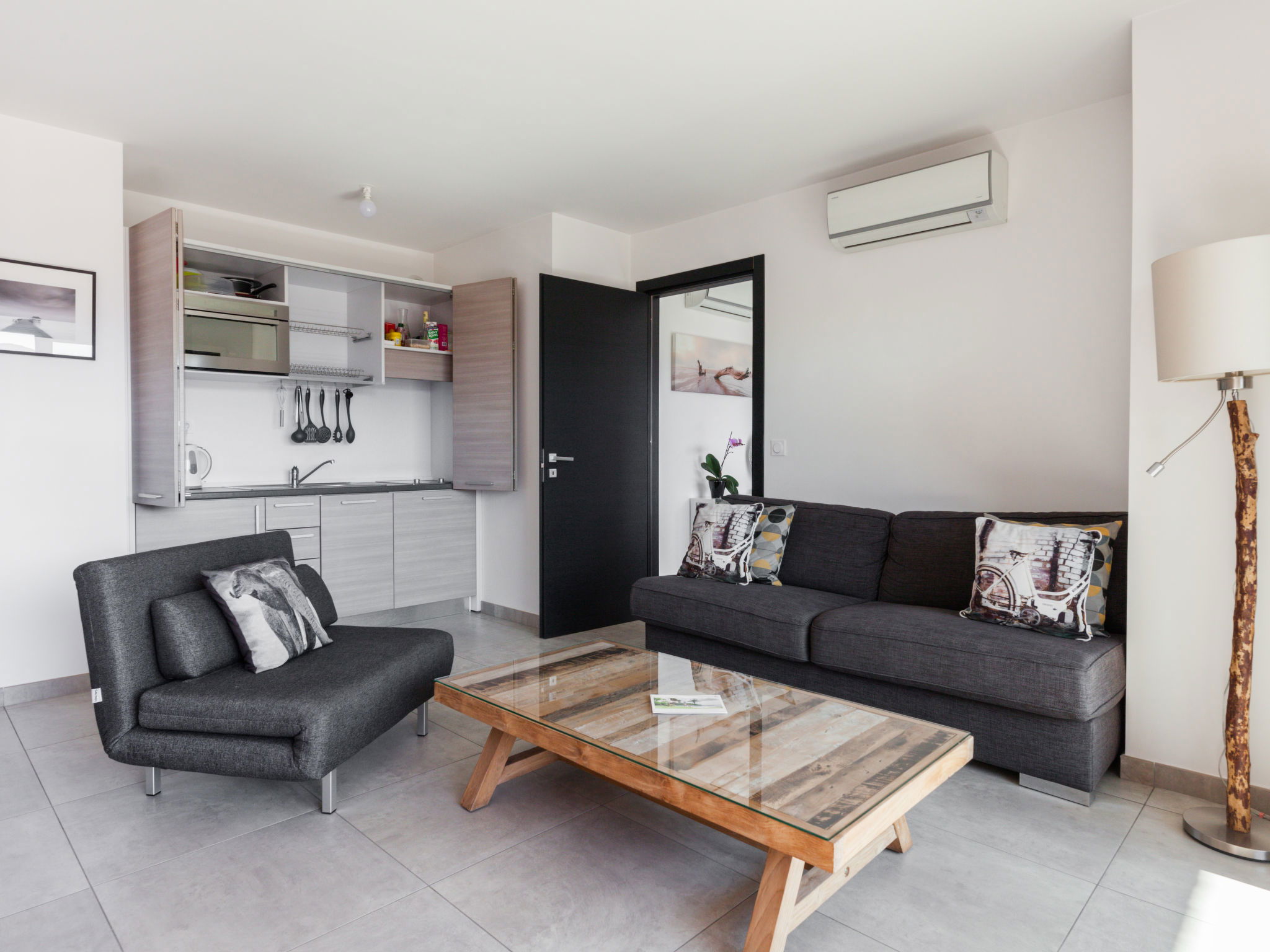 2-room apartment 41 m2 on 2nd floor. Comfortable and cosy furnishings: entrance hall. Living/dining room with TV (flat screen). Exit to the terrace. 1 room with 1 french bed (140 cm, length 200 cm). Exit to the terrace. Kitchenette (2 hot plates, dishwasher, electric coffee machine, combination microwave). Shower/WC. Electric heating, air-conditioning. Terrace 20 m2, east facing position. Terrace furniture. Facilities: washing machine. Internet (WiFi, free). Please note: non-smokers only. Smoke alarm. Offer by a private individual according to Art. 155, IV of CGI. 2A24700140499