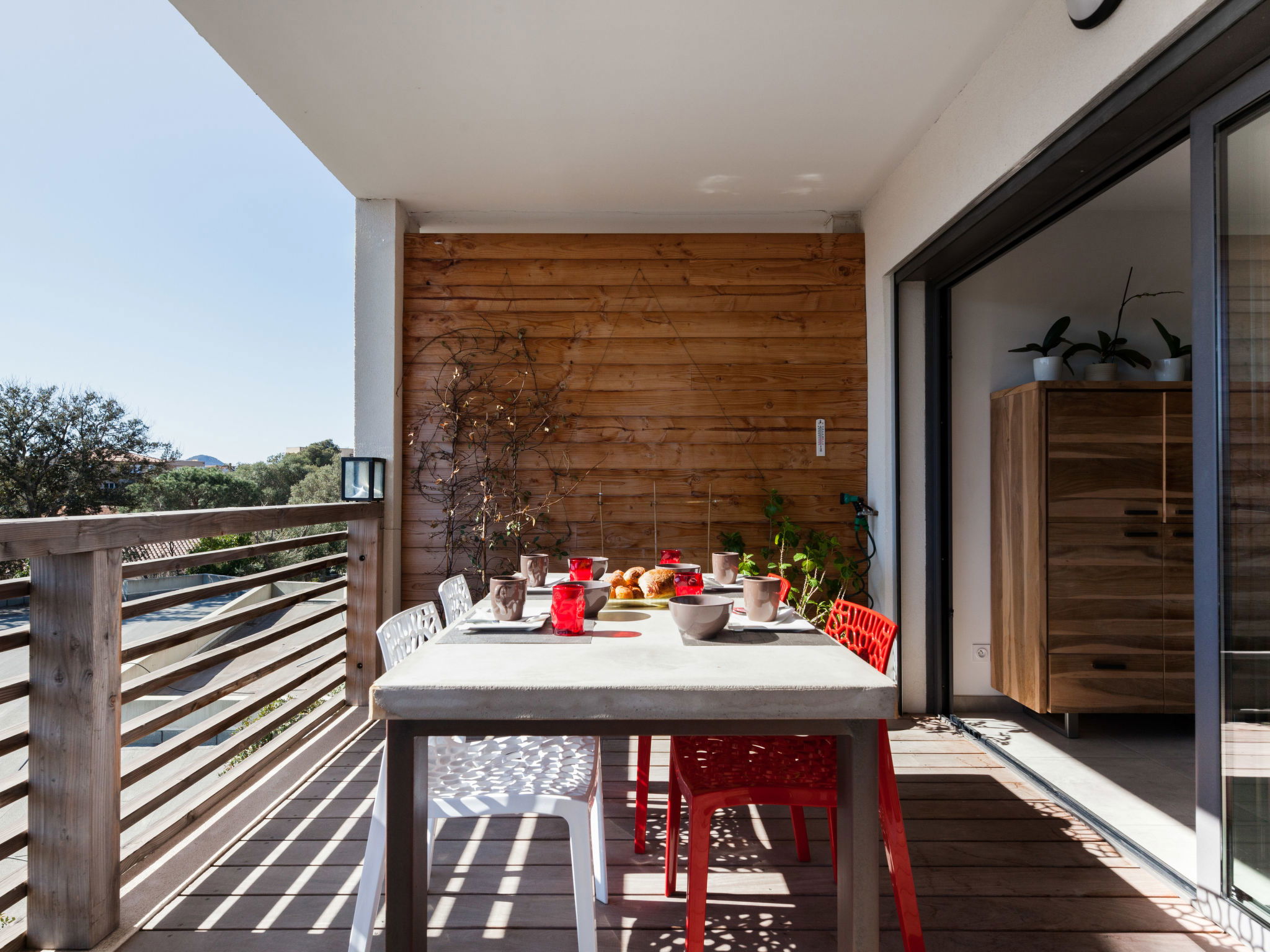 Modern residence "Résidence Cita di Sali". In the district of Vignola, on the outskirts, in a central position, 500 m from the sea, 8 km from the beach. For shared use: swimming pool (16 x 5 m, depth 140 cm, seasonal availability: 15.May. - 30.Sep.). Pool maintenance by the owner/gardener, parking (limited number of spaces), public parking 100 m. Shop, grocery 100 m, supermarket 2 km, restaurant 100 m, bus stop 80 m, sandy beach "Santa Giulia" 8 km. Sports harbour 200 m, golf course (18 hole) 6 km, riding stable 3 km. Nearby attractions: Figari 22 km, Bonifacio 25 km, Solenzara 40 km, Iles Lavezzi. Please note: car recommended. Residence with electric gates.