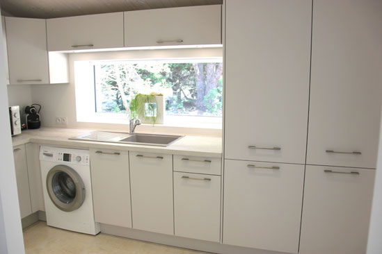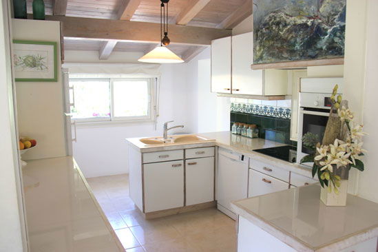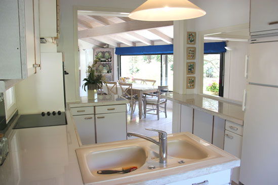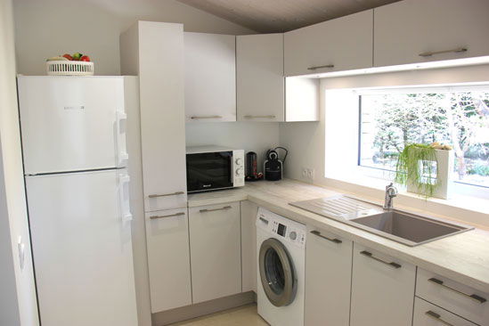 Equipement de la partie principale : Machine à laver le Linge - Machine à laver la vaisselle - Four éléctrique - Réfrigérateur avec partie congélateur - Vitro Céramique - Hotte - Four micro ondes - Grille pain - Cafetière - Robot - Télévision couleur - Chaine Hifi - Aspirateur - Fer à repasser + Table - Cocotte minute - Bouilloire Electrique