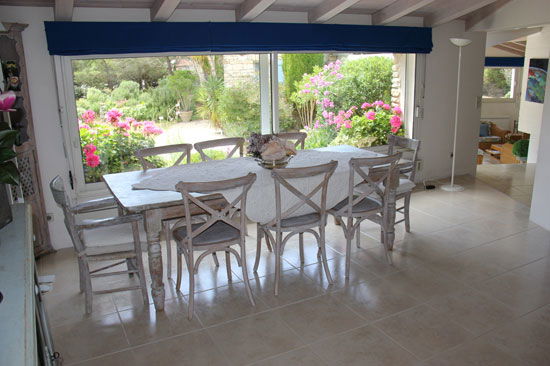 Vaisselle pour 15 personnes Couettes pour 9 Lits Chauffage et chauffe eau électrique Téléphone : OUI Relevé Détaillé INTERNETJardin et Terrasse avec barbecue : Tables + Chaises + 4 Chaises longues + Barbecue + ParasolInterdiction d’entrer les voitures dans le jardin, le parking extérieur est privé. Le prix comprend 2 Heures de ménages par jour 5 jours sur 7 (Uniquement pendant l'été). Non inclus ménage de sortie (minimum de 6 heures)PAS D’ANIMAUX