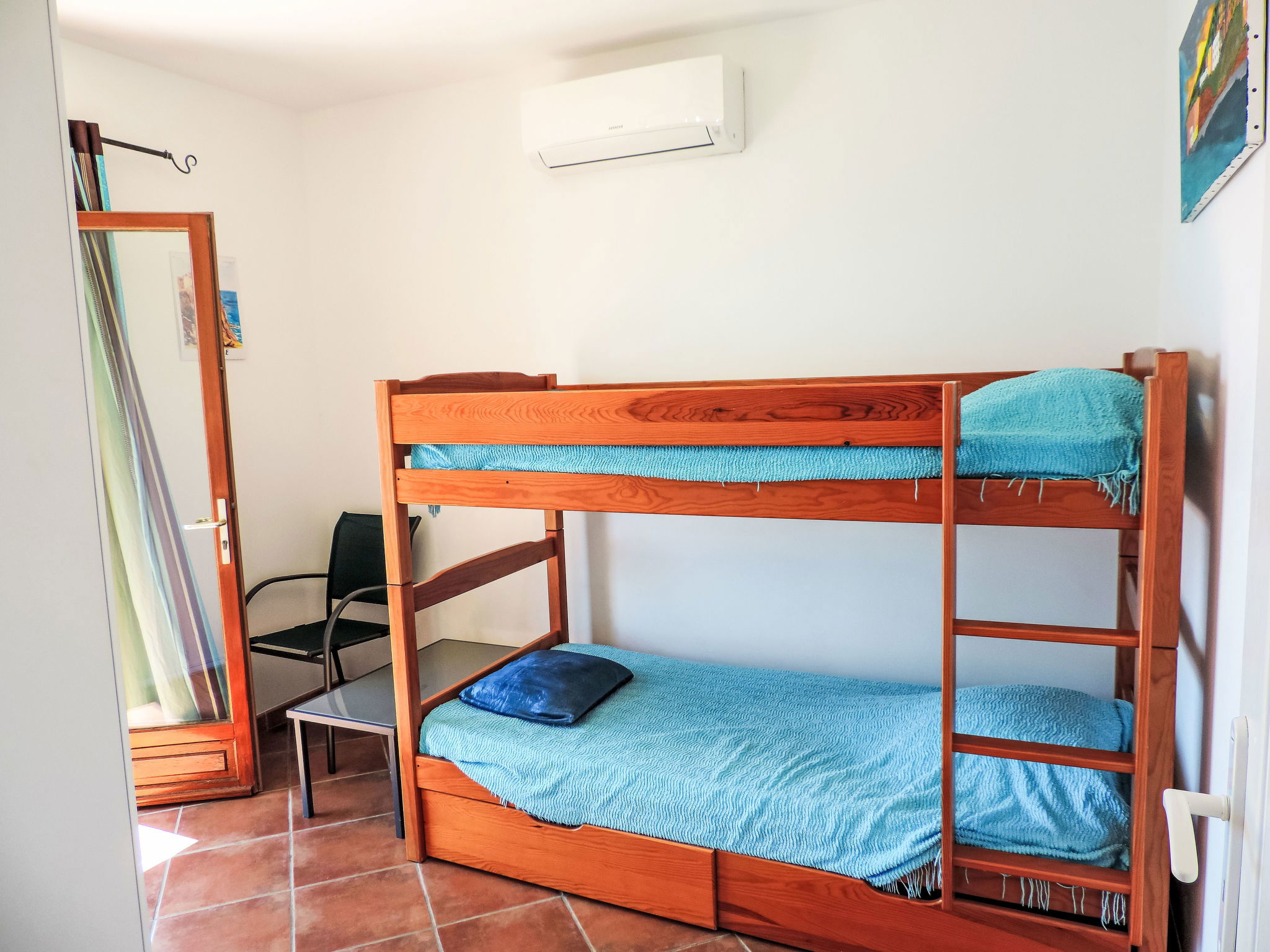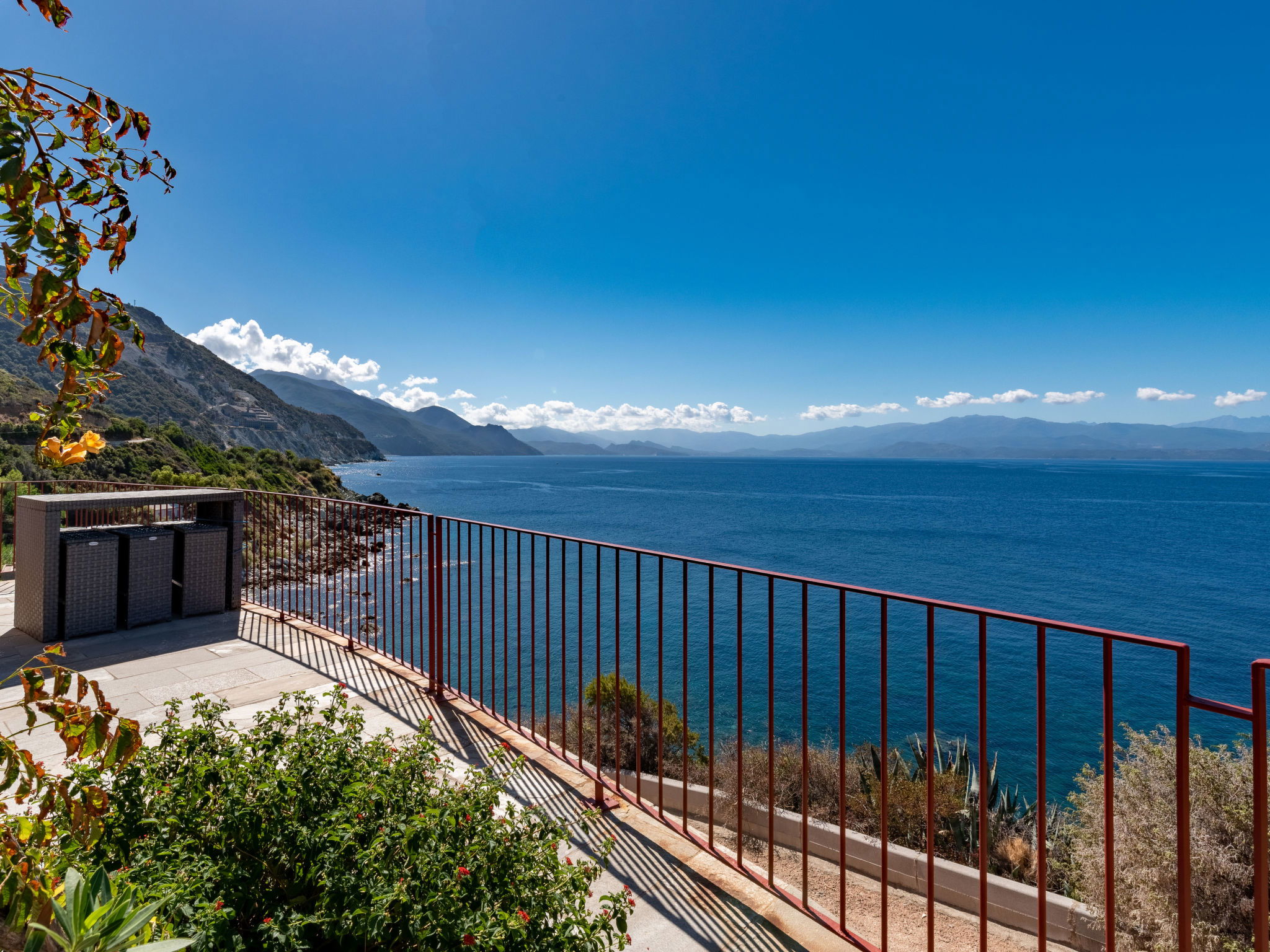 "Maison Balbi", 5-room house 140 m2 on 2 levels. Spacious, modern and tasteful furnishings: 1 room with 1 french bed (160 cm, length 200 cm). 1 room with 2 beds (90 cm, length 190 cm). Shower, sep. WC. Upper floor: large living/dining room with open-hearth fireplace, dining table, satellite TV and hi-fi system. Exit to the terrace. Small walk-through room. Exit to the terrace. 1 large room with 1 french bed (180 cm, length 200 cm), satellite TV. Exit to the balcony. Open kitchen (oven, dishwasher, 4 induction hot plates, toaster, kettle, microwave, freezer, electric coffee machine, Capsules for coffee machine (Nespresso) extra, fondue Set (cheese)) with small bar. Shower/WC. Electric heating, air-conditioning. Natural stone floors. Small balcony, large terrace, small patio, porch. Terrace furniture, balcony furniture, barbecue (portable), deck chairs, box-room. Marvellous panoramic view of the sea and Golfe de Saint-Florent. Facilities: washing machine, iron, baby cot. Internet (WiFi, free). Please note: non-smokers only. Maximum 1 pet/ dog allowed. Smoke alarm, fire extinguisher. 2B058000025Q2