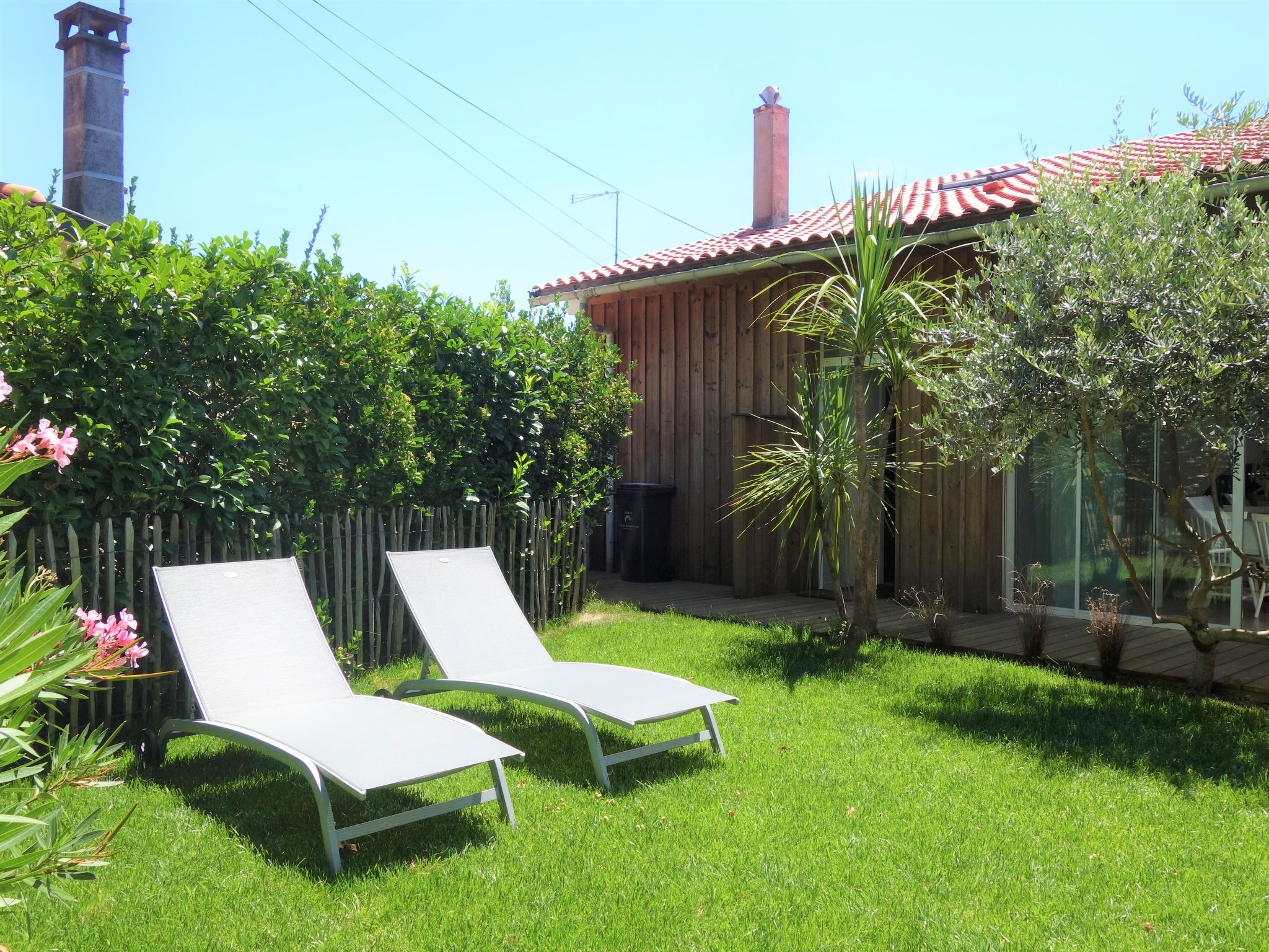 La Teste De Buch 5 km from Arcachon: Very modern, beautiful, comfortable single-family house "Le Chant Des 4 Sirènes". In the centre of La Teste De Buch, excellent location: right in the centre but still quiet, 3.2 km from the sea, 3.2 km from the beach. Private: well-kept garden 85 m2 (fenced). In the house: table football. Parking, public parking on the road. Shop 850 m, grocery, supermarket 350 m, shopping centre 850 m, restaurant 400 m, bar 150 m, bakery 300 m, café 120 m, bicycle rental 350 m, 3 minute walk to the centre, bus stop "La Gare de La Teste" 50 m, railway station "La Teste De Buch" 50 m, sandy beach "Plage de l'Aiguillon" 3.2 km, park "De La Chêneraie" 2.4 km, diving center 3.3 km. Sports harbour 2 km, golf course (18 hole) 4 km, surf school 6.4 km. Nearby attractions: Aqualand 4.9 km, Kid Park 4.7 km, Dune du Pyla 9.6 km, Navette maritime pour le Cap Ferret 4.4 km, Marché Municipal 1 km, Réserve Ornithologique du Teich 10.9 km. Well-known lakes can easily be reached: Lac de la Magdeleine 6 km, Lac de Cazaux 20.4 km, Lac de Sanguinet 22.1 km. The keys‘ handover takes place by the agency in Arcachon, 5 km.