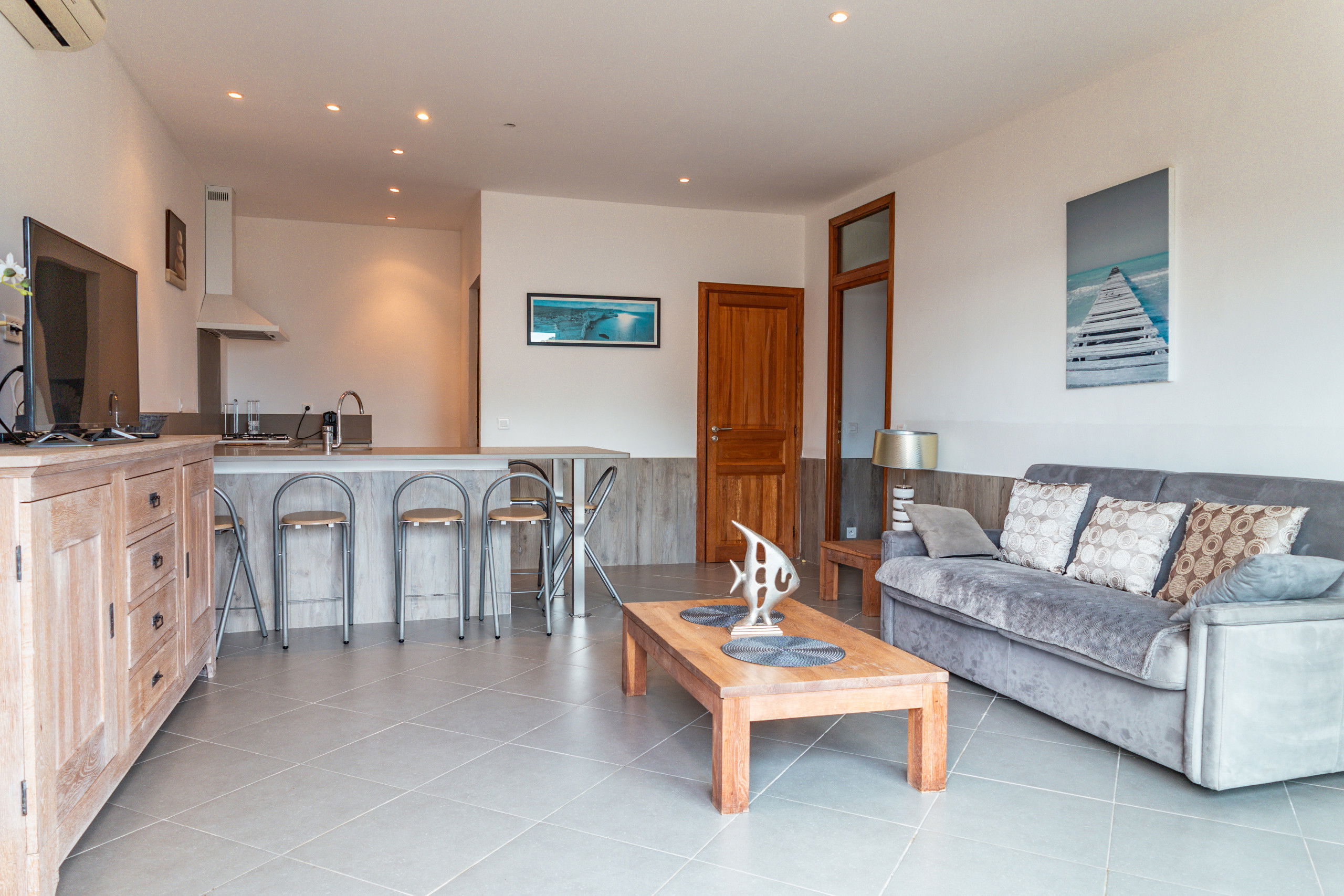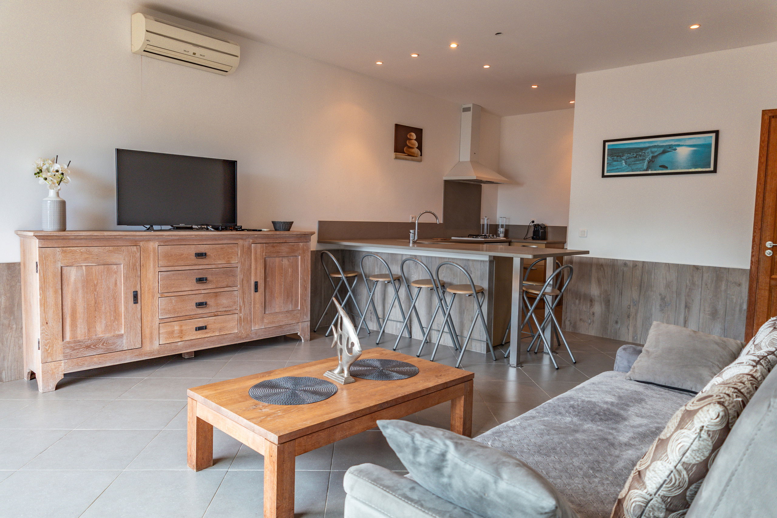 A convertible sofa is also available in the living room.