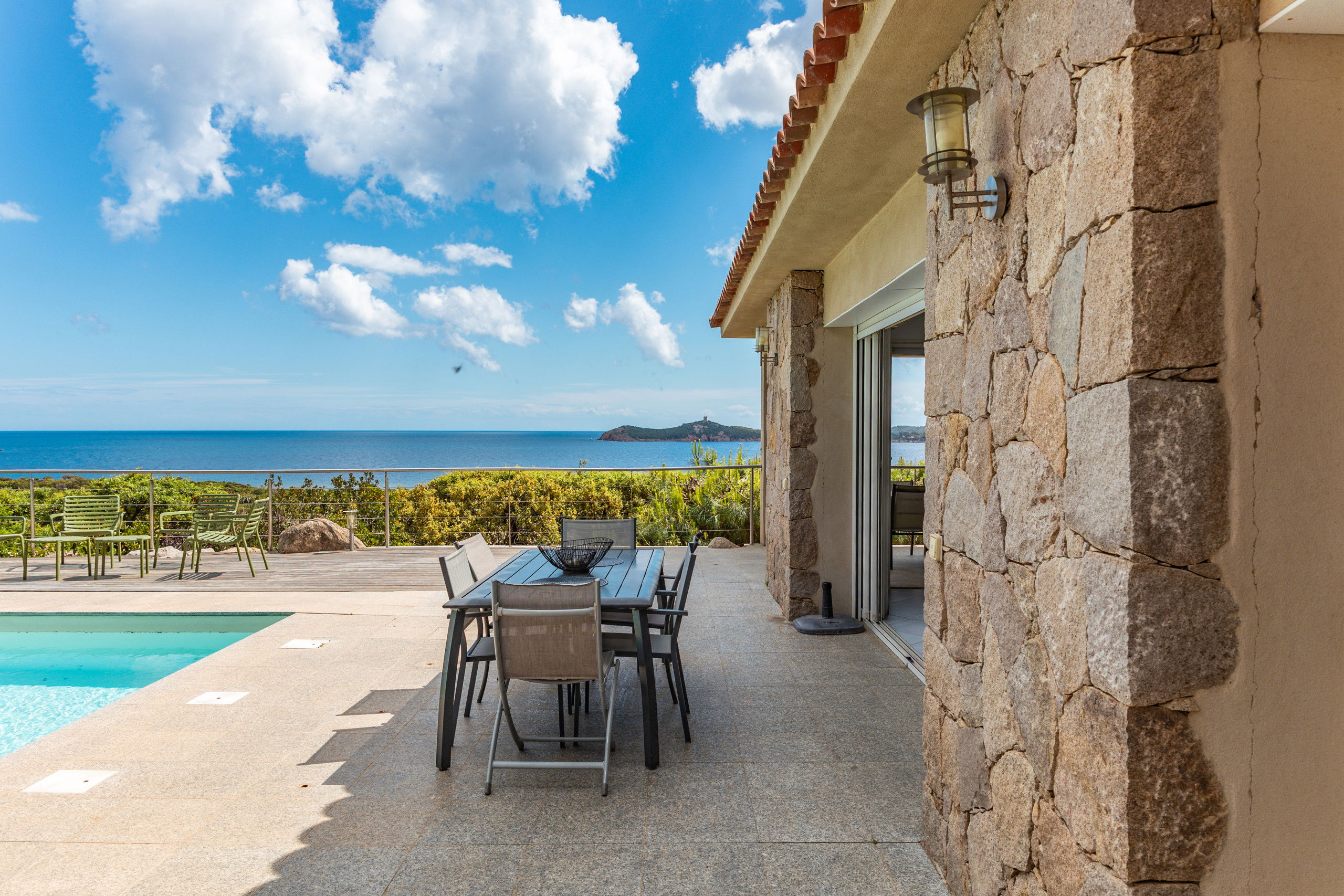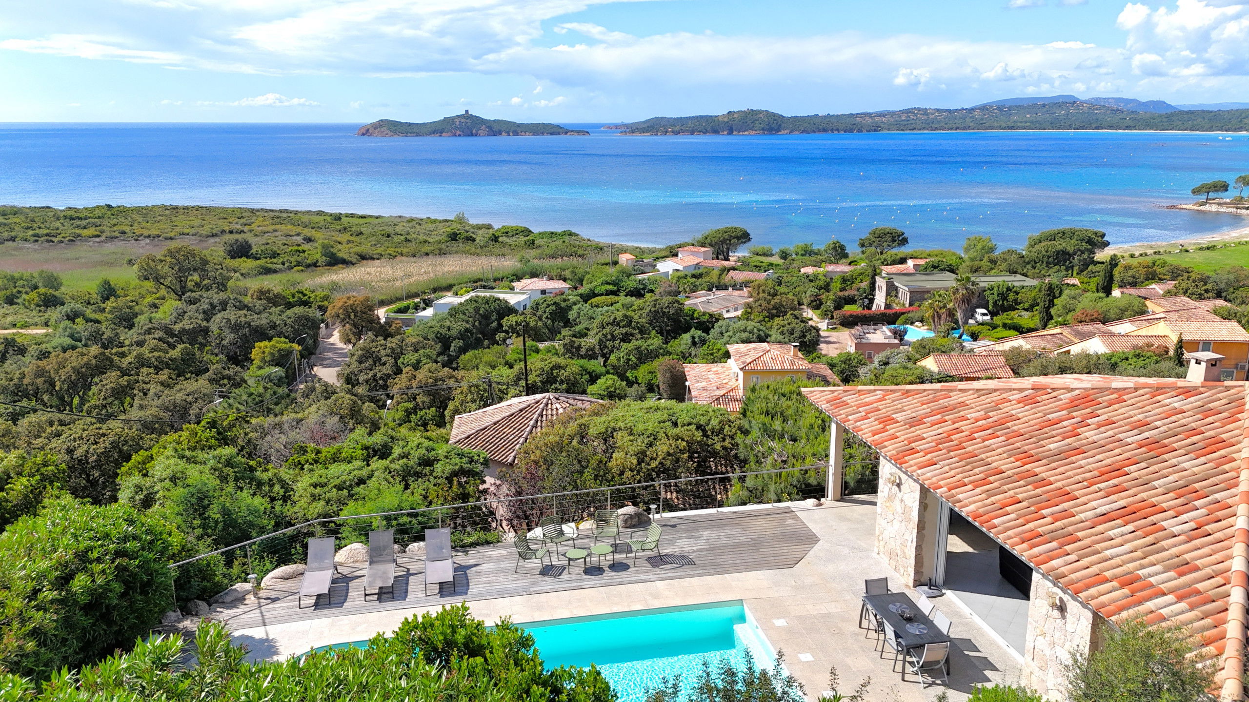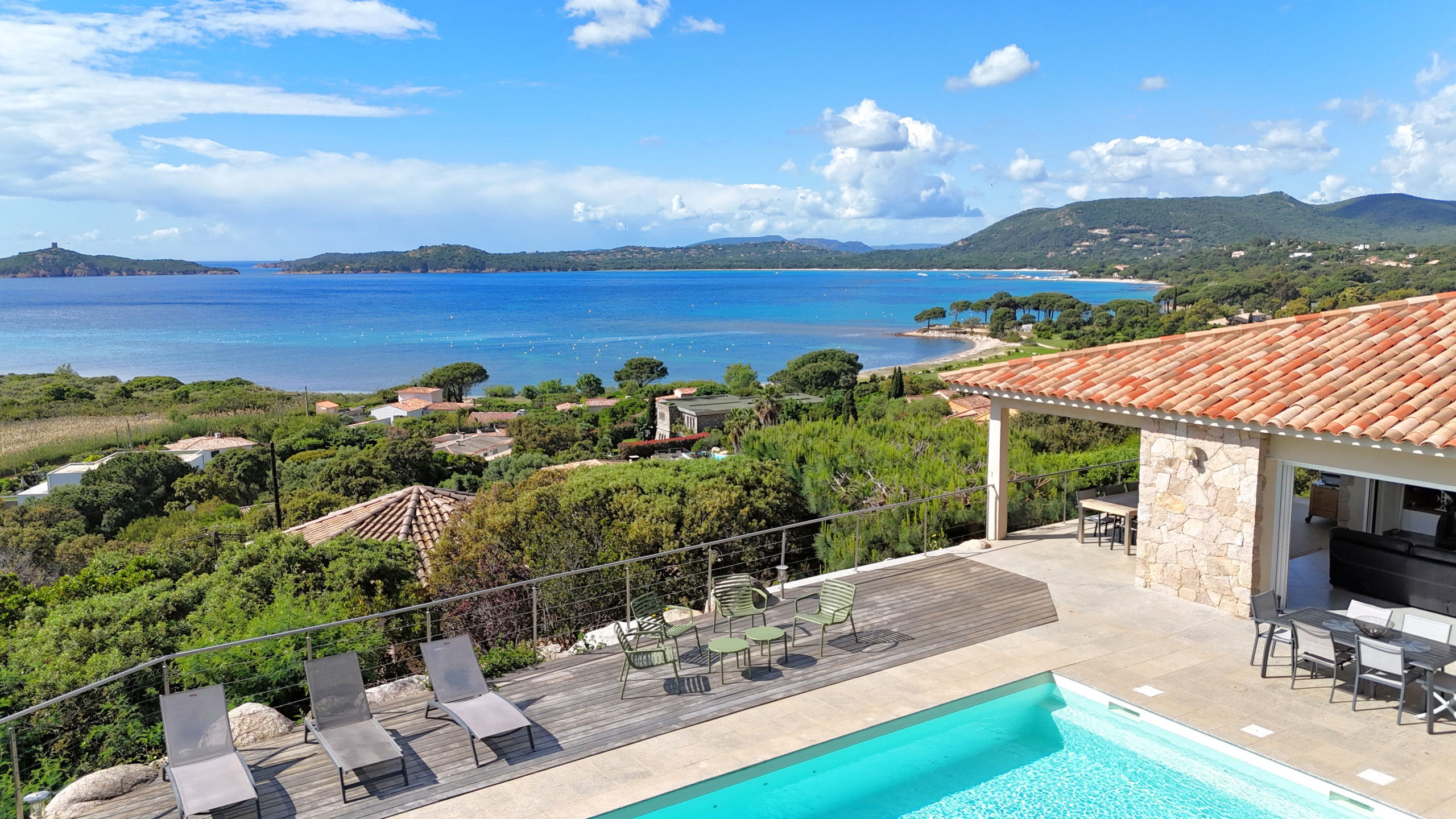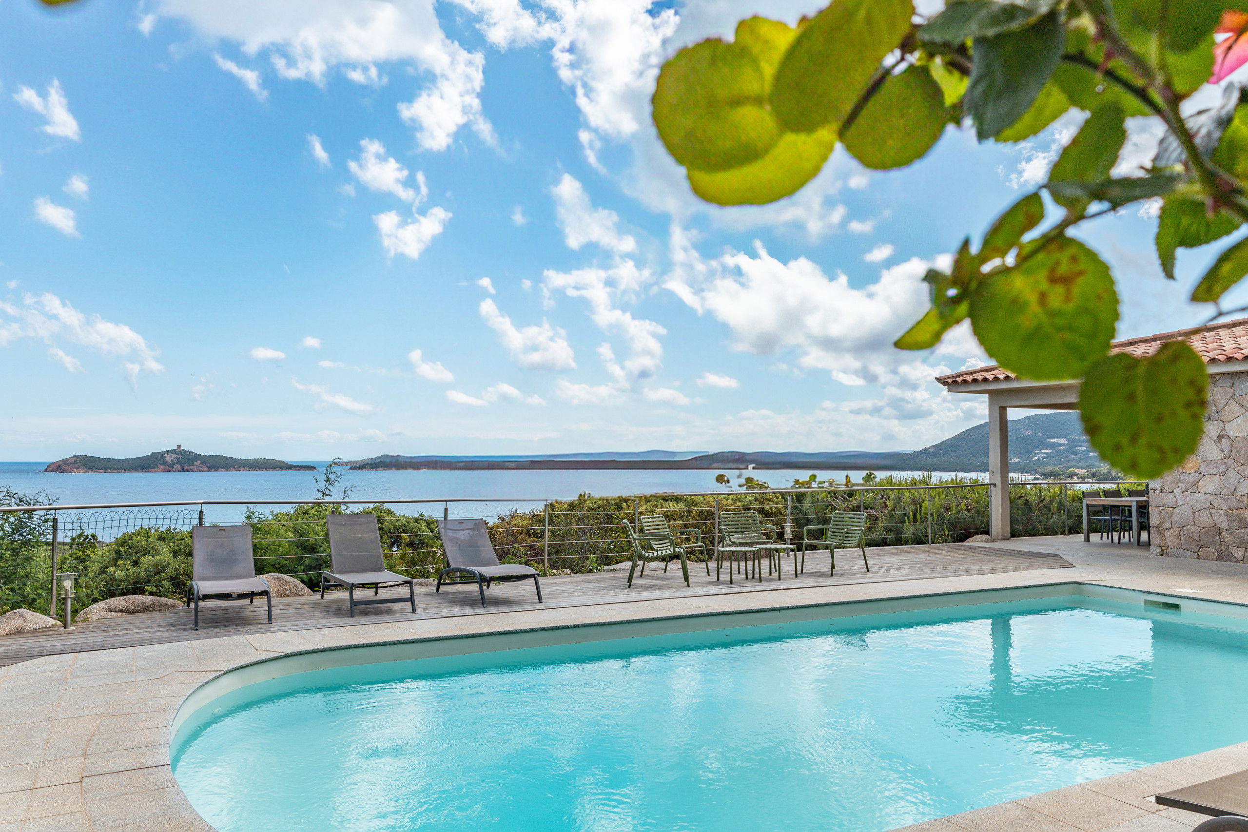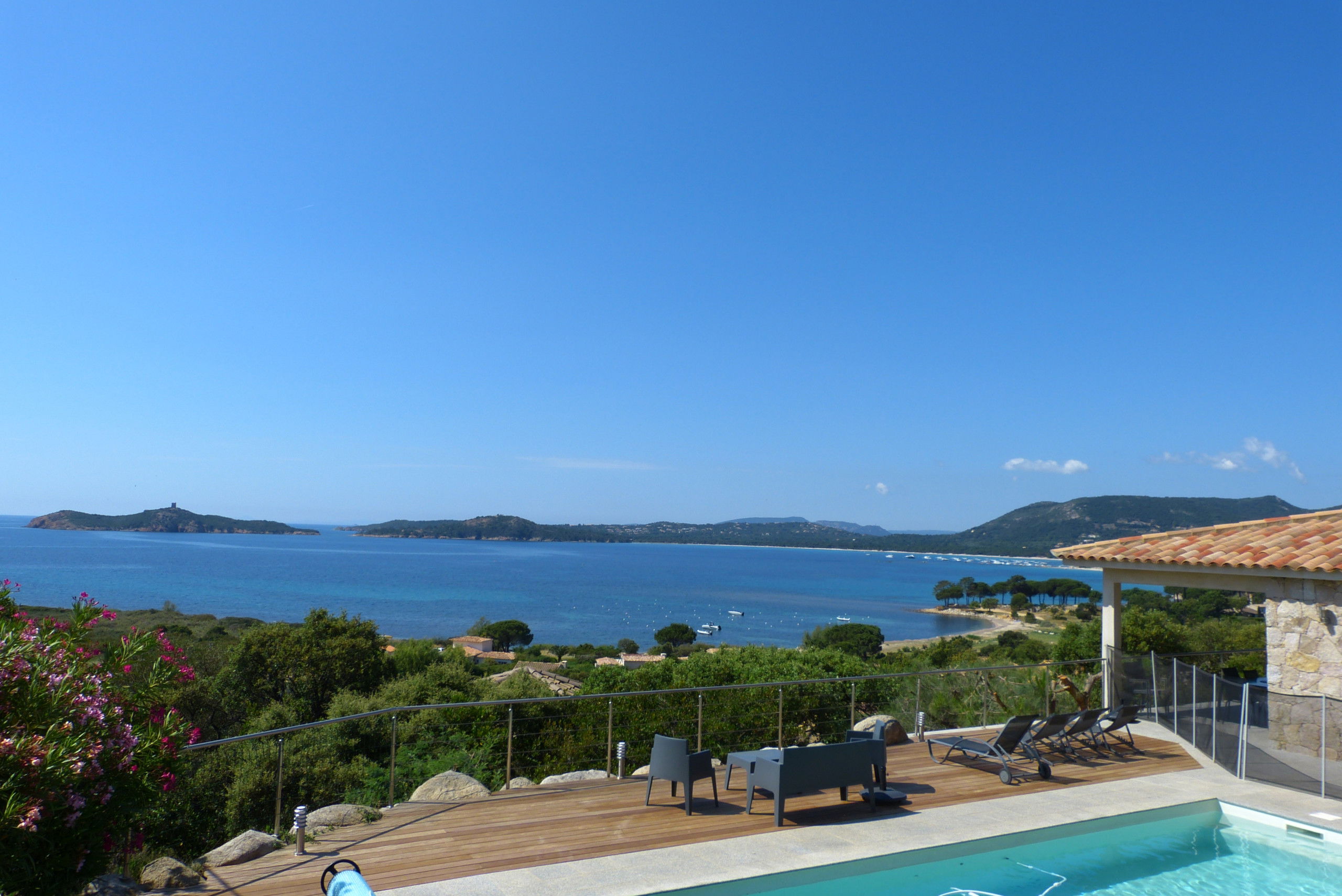 Overlooking the bay of Pinarello and its symbolic Genoese tower and only 250 metres from the beach of Vardiola, this beautiful villa with heated swimming pool is a unique place to spend a holiday with family or friends.