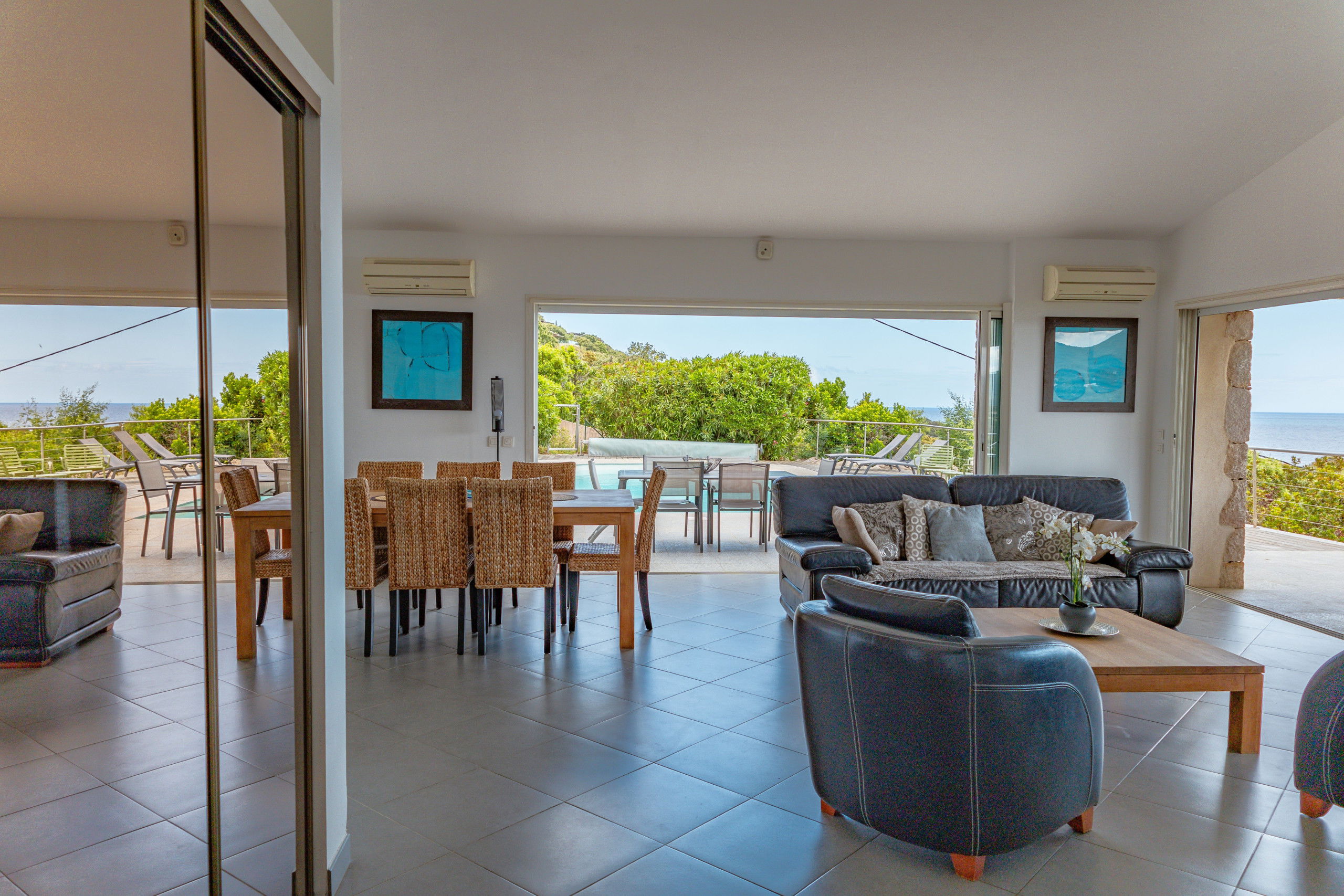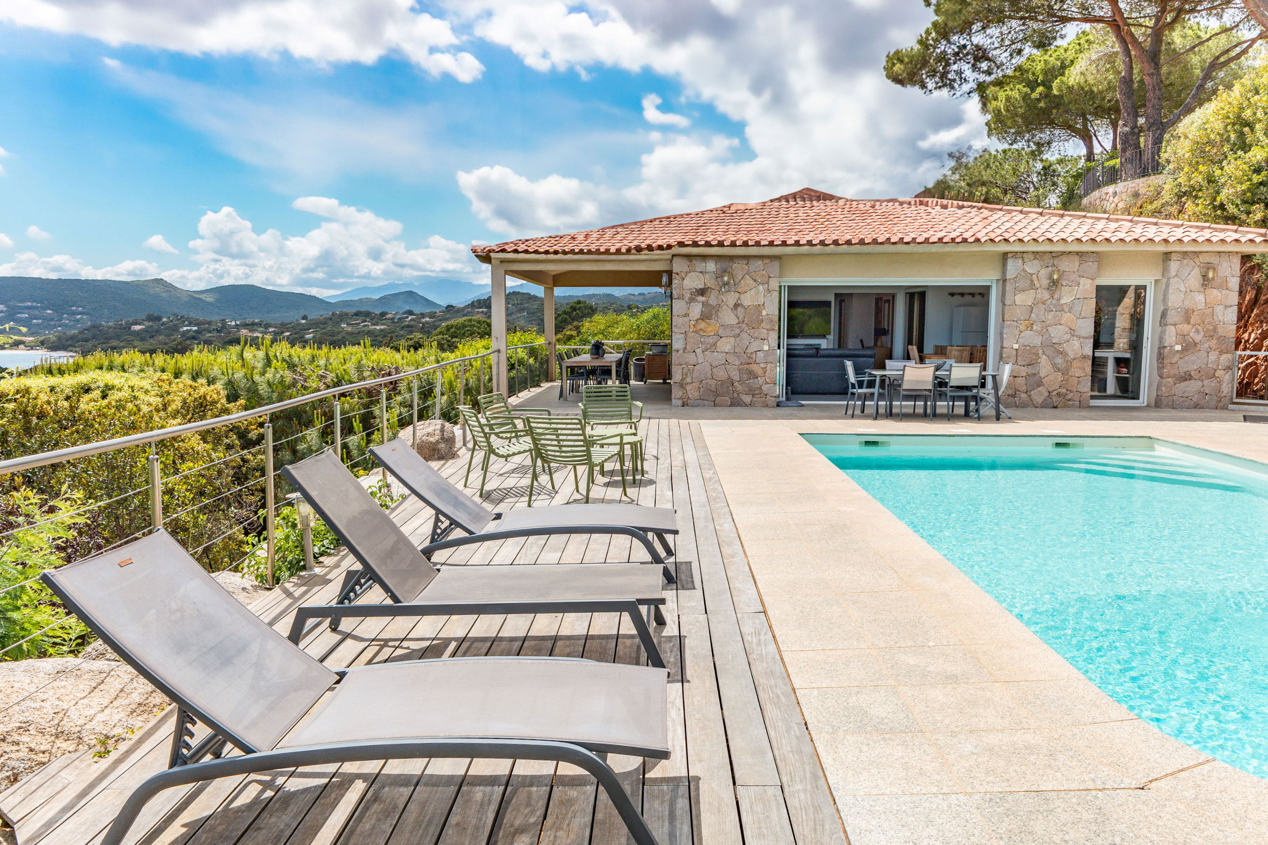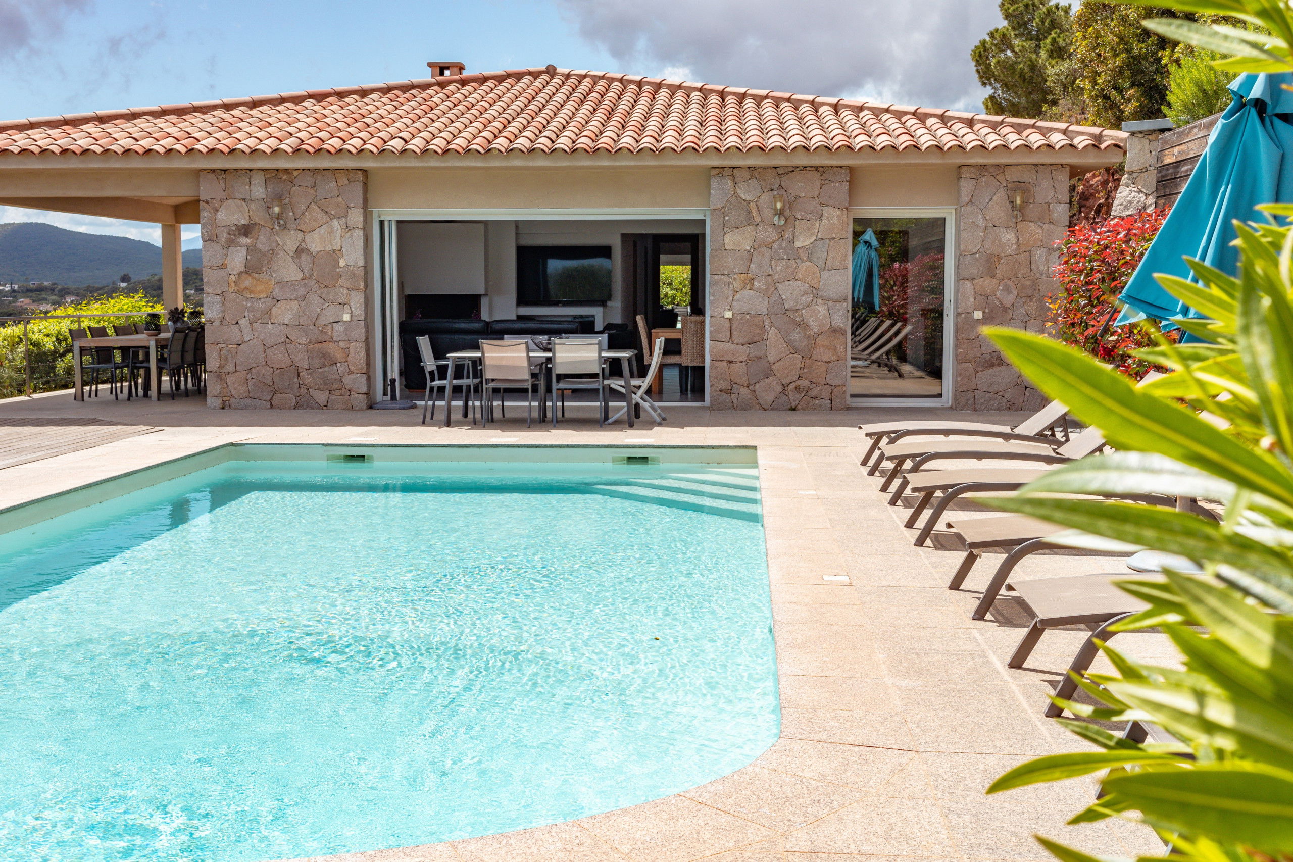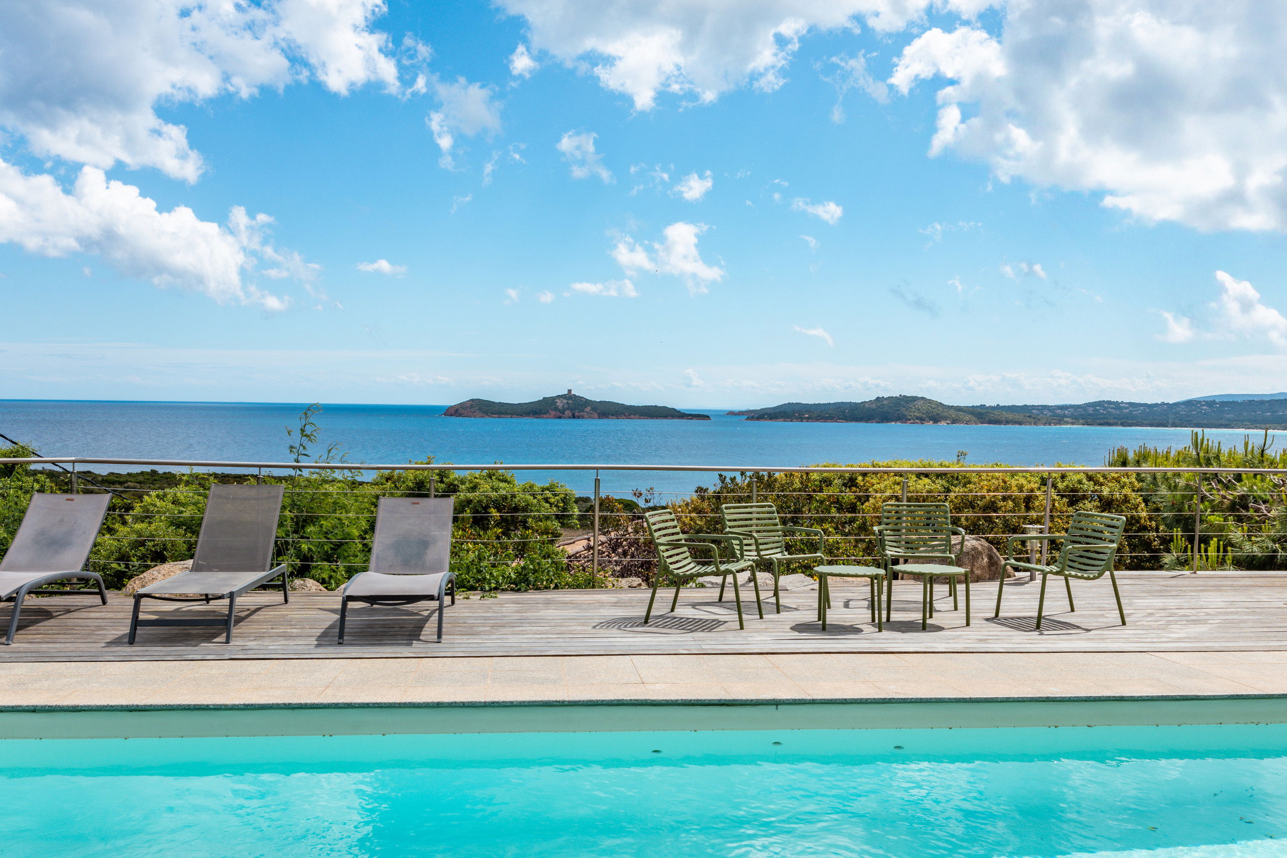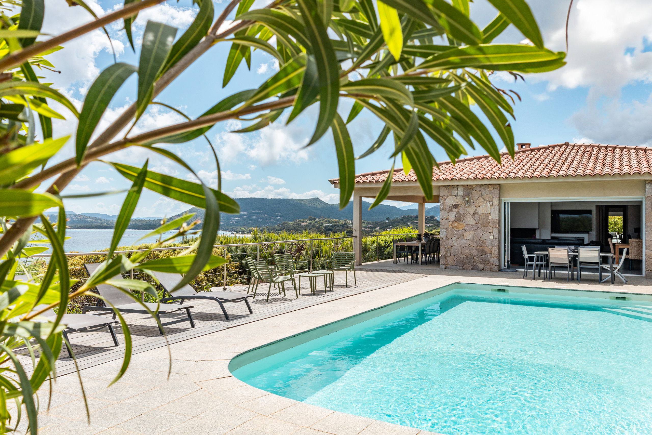 Overlooking the bay of Pinarello and its symbolic Genoese tower and only 250 metres from the beach of Vardiola, this beautiful villa with heated swimming pool is a unique place to spend a holiday with family or friends.