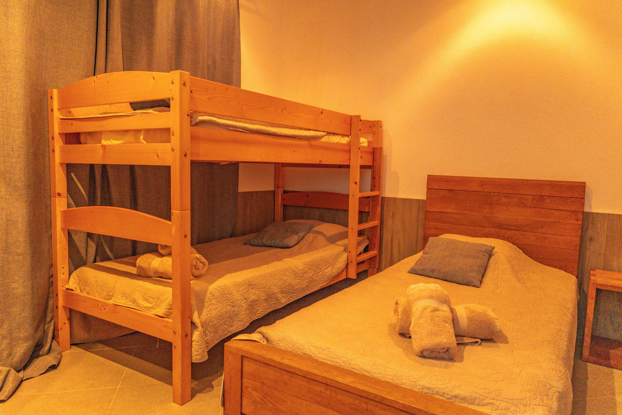 Bedroom 3 : 3 * Single beds 90 * 200 including 1 bunk bed with shower room