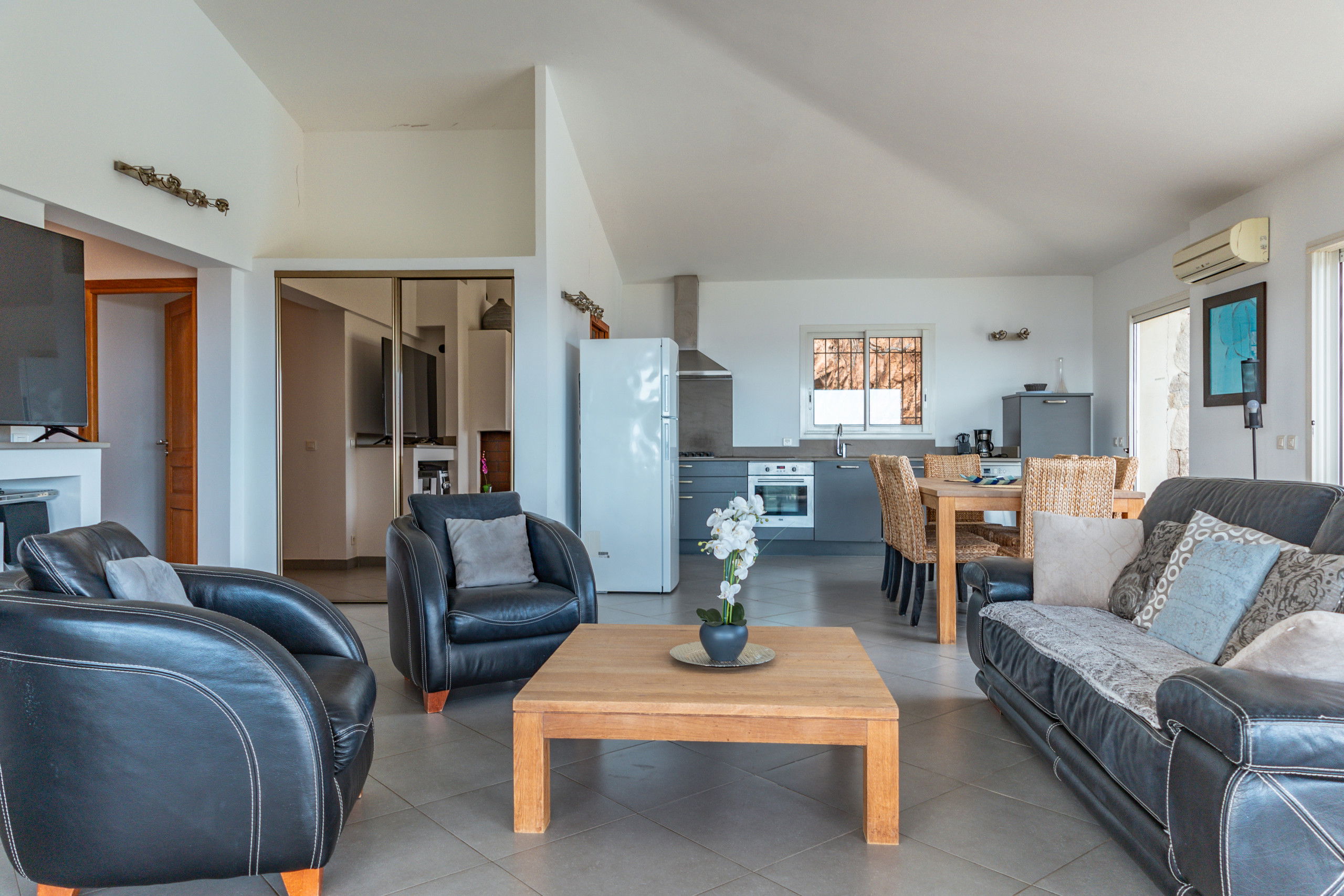 The villa consists of a single storey villa (7 people) + an independent ground floor flat (7 people).