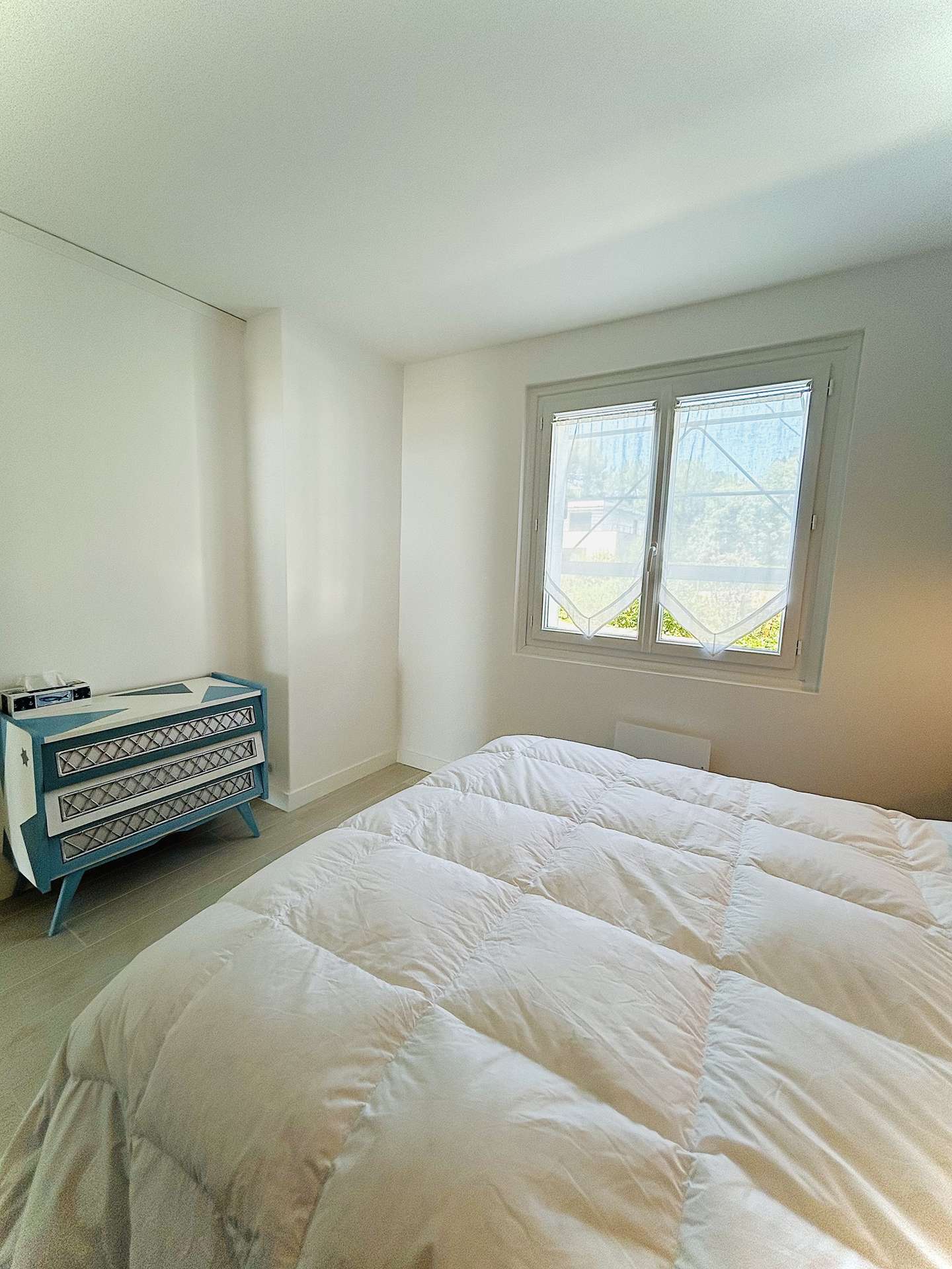 La Baule (44) - Swimming pool area Facing the sea - Residence "LA RESIDENCE" Appartement - Raised ground floor - approximately 40 m² - up to 4 people Located facing the sea in La Baule Les Pins, this 2-room apartment crossing raised ground floor with small green area and simple and efficient decoration includes an entrance hall with cupboard, a living room facing the sea with a 140cm double sofa bed opening onto a terrace facing the sea, a kitchen open to the living room, a bathroom bathroom with WC, a quiet bedroom at the back with a 140cm double bed. The accommodation has a sea-facing terrace with furniture. The advantages of this rental by the sea: Its location will allow you to do everything on foot and can enjoy the beach opposite the residence. Its bedroom overlooks the back allowing you to rest in peace.