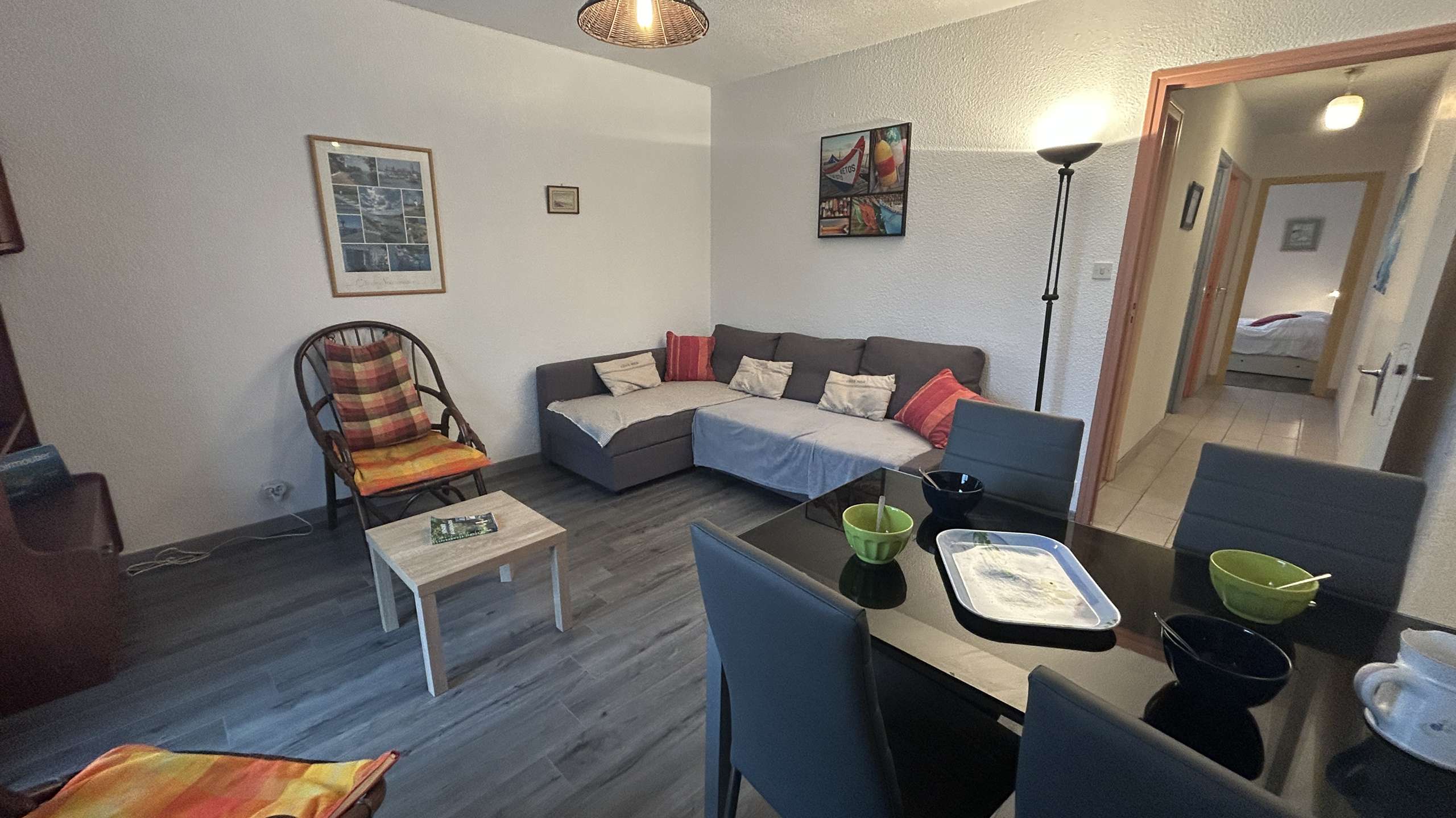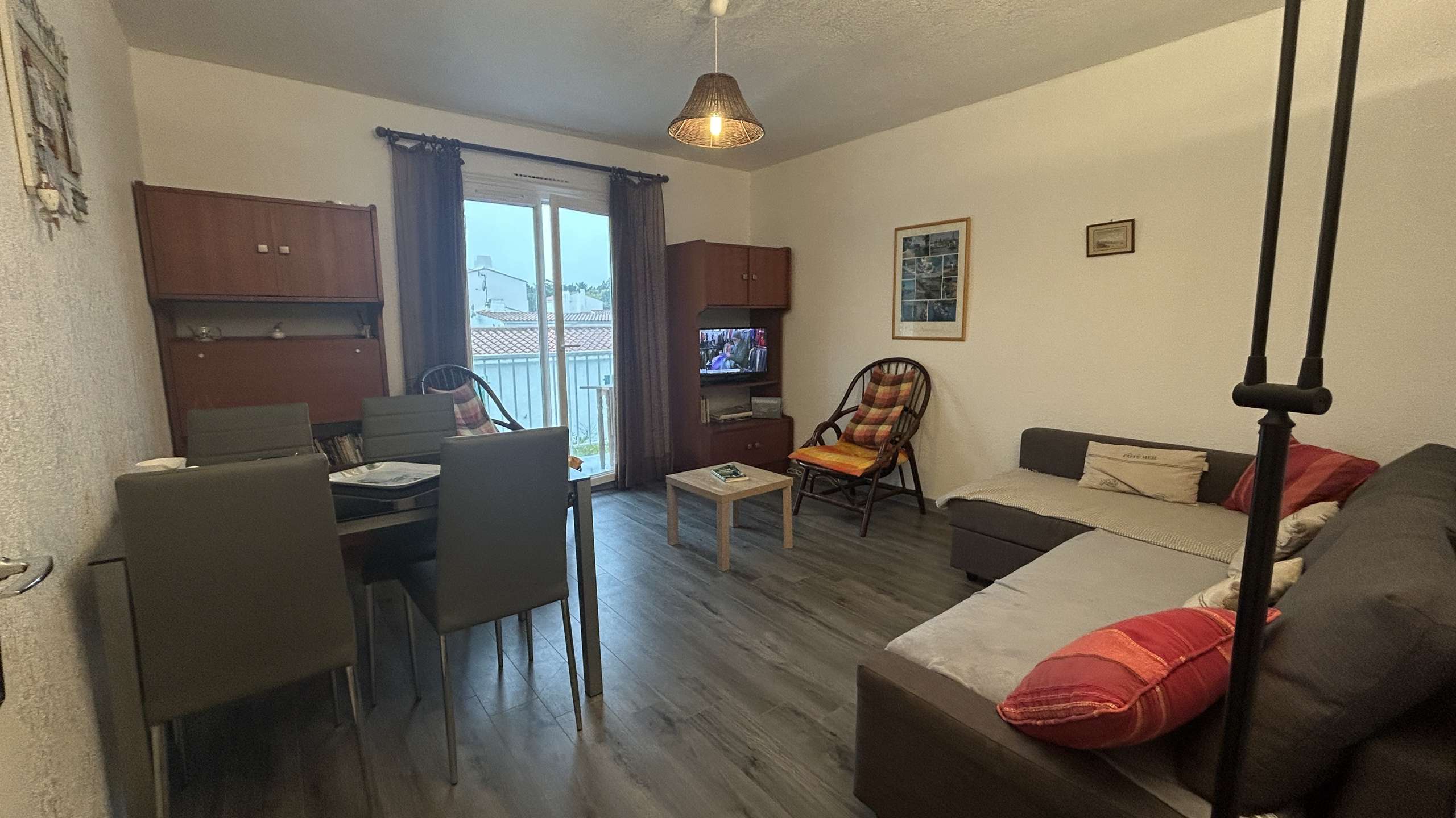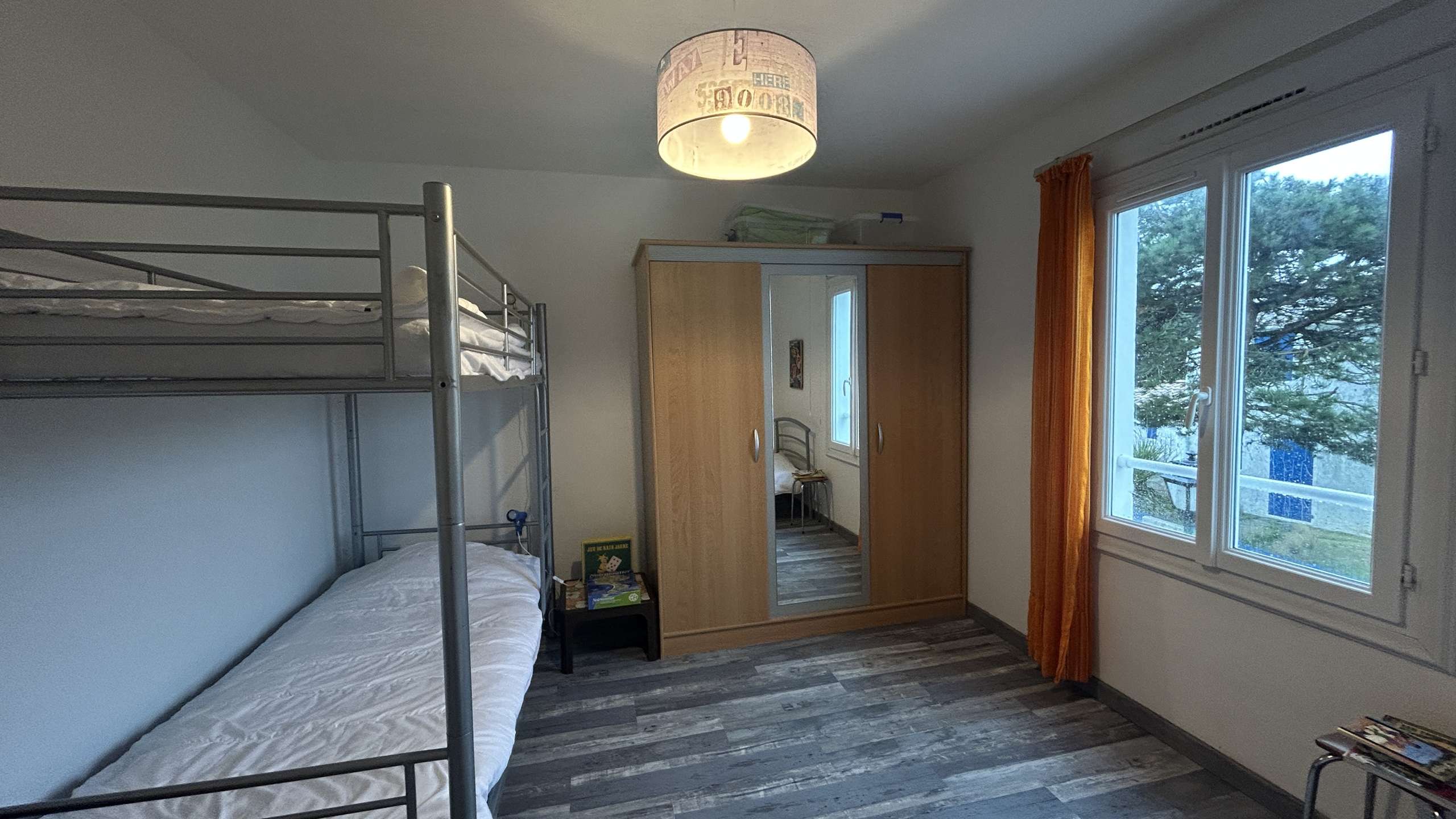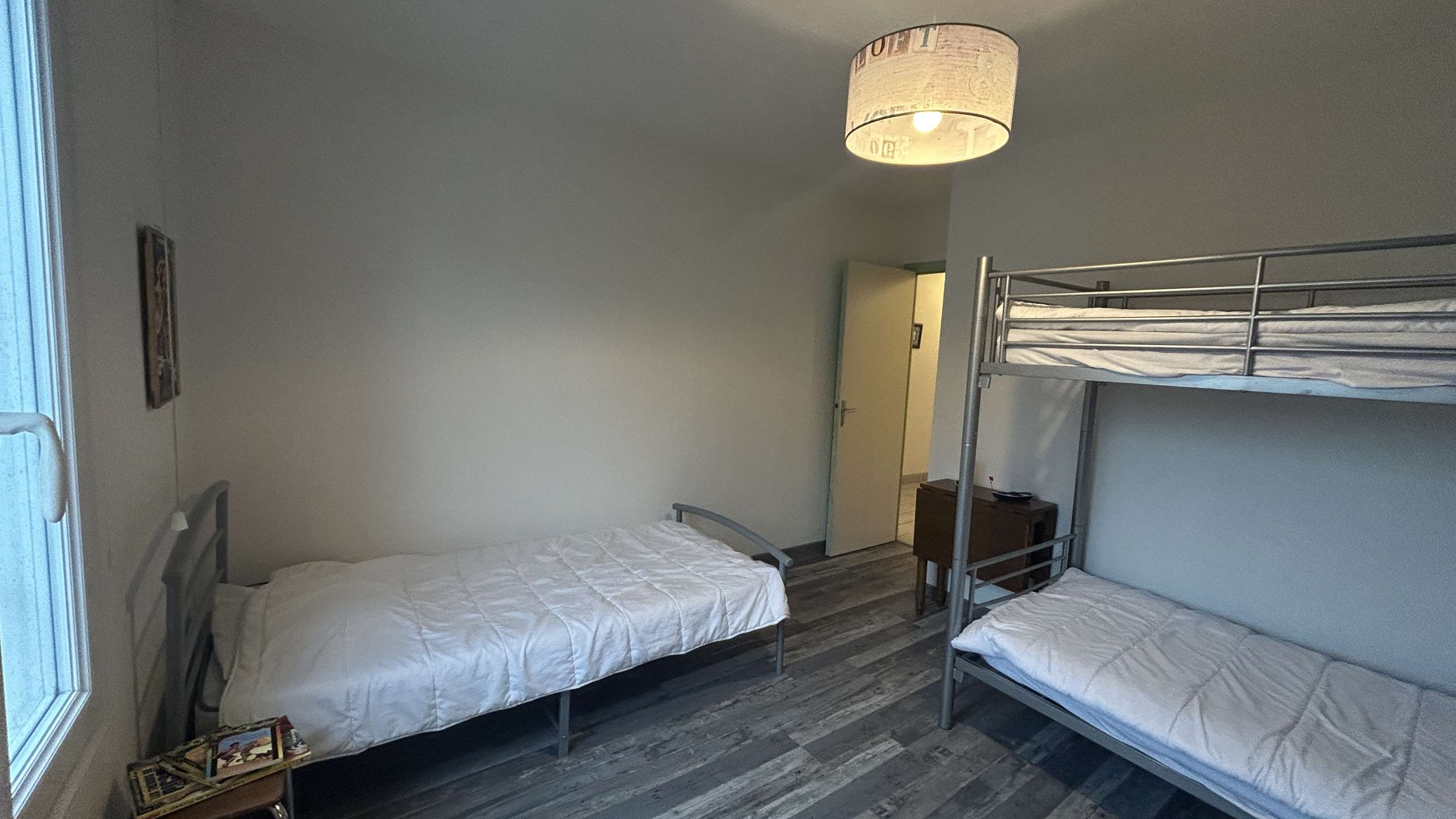 Located 300 m from a beautiful beach, this apartment on the 1st floor of a residence includes an entrance with cupboard, a living room with television and sofa, a fitted independent kitchen, two bedrooms, one with a double bed and one with two bunk beds and a single bed, a bathroom and a separate toilet.