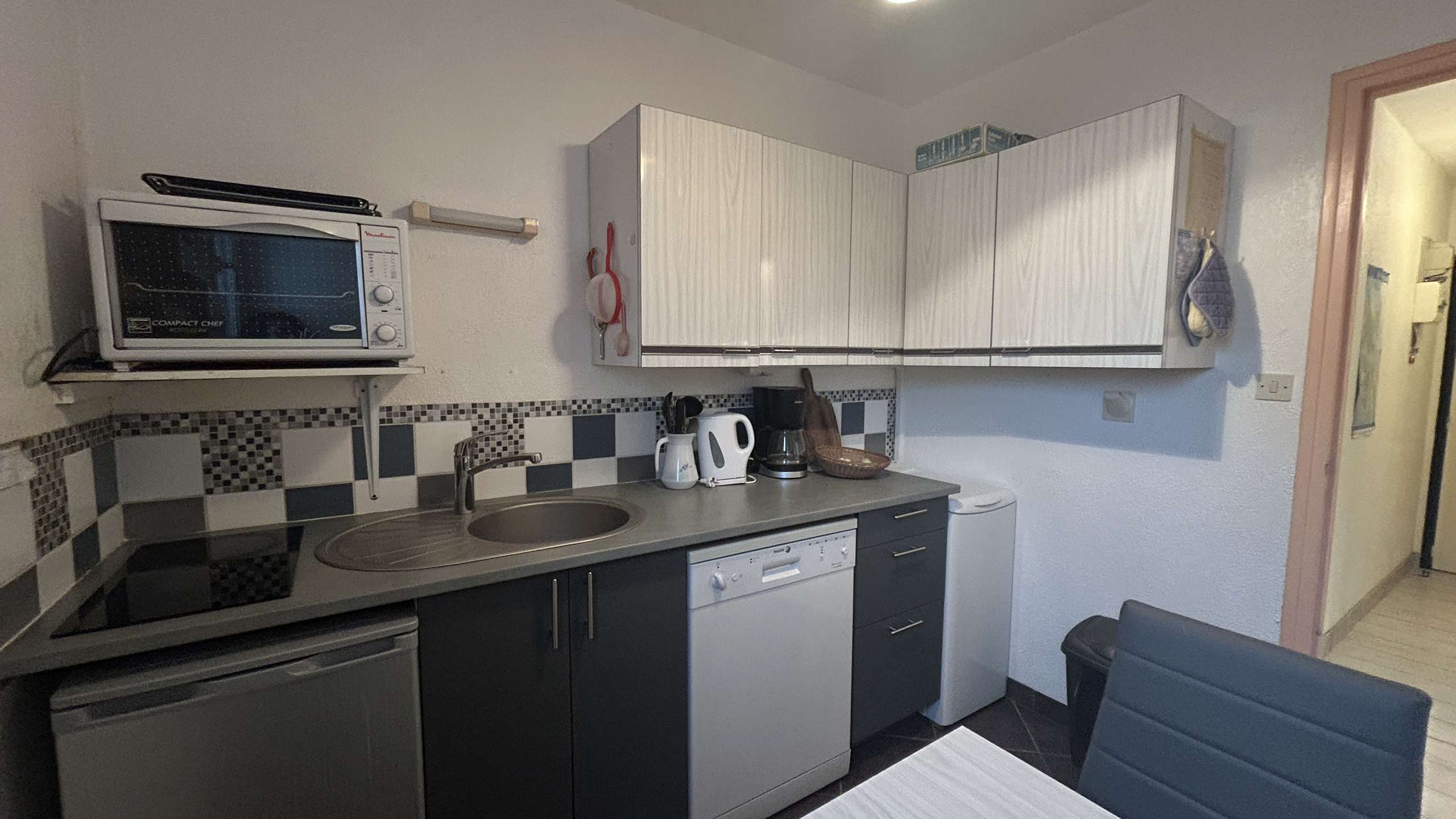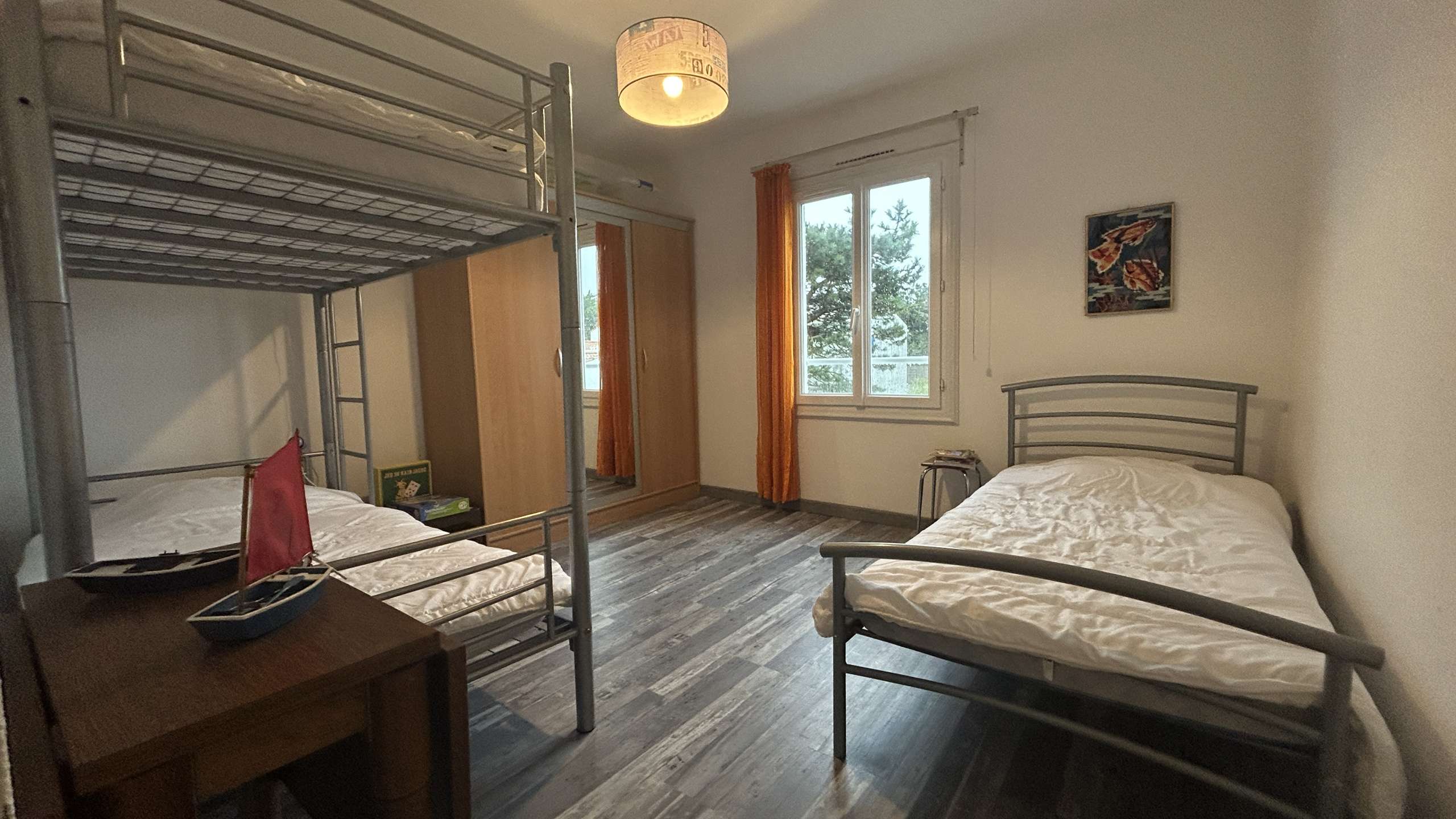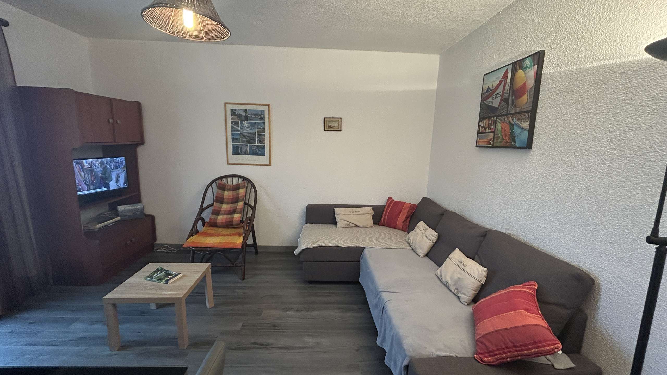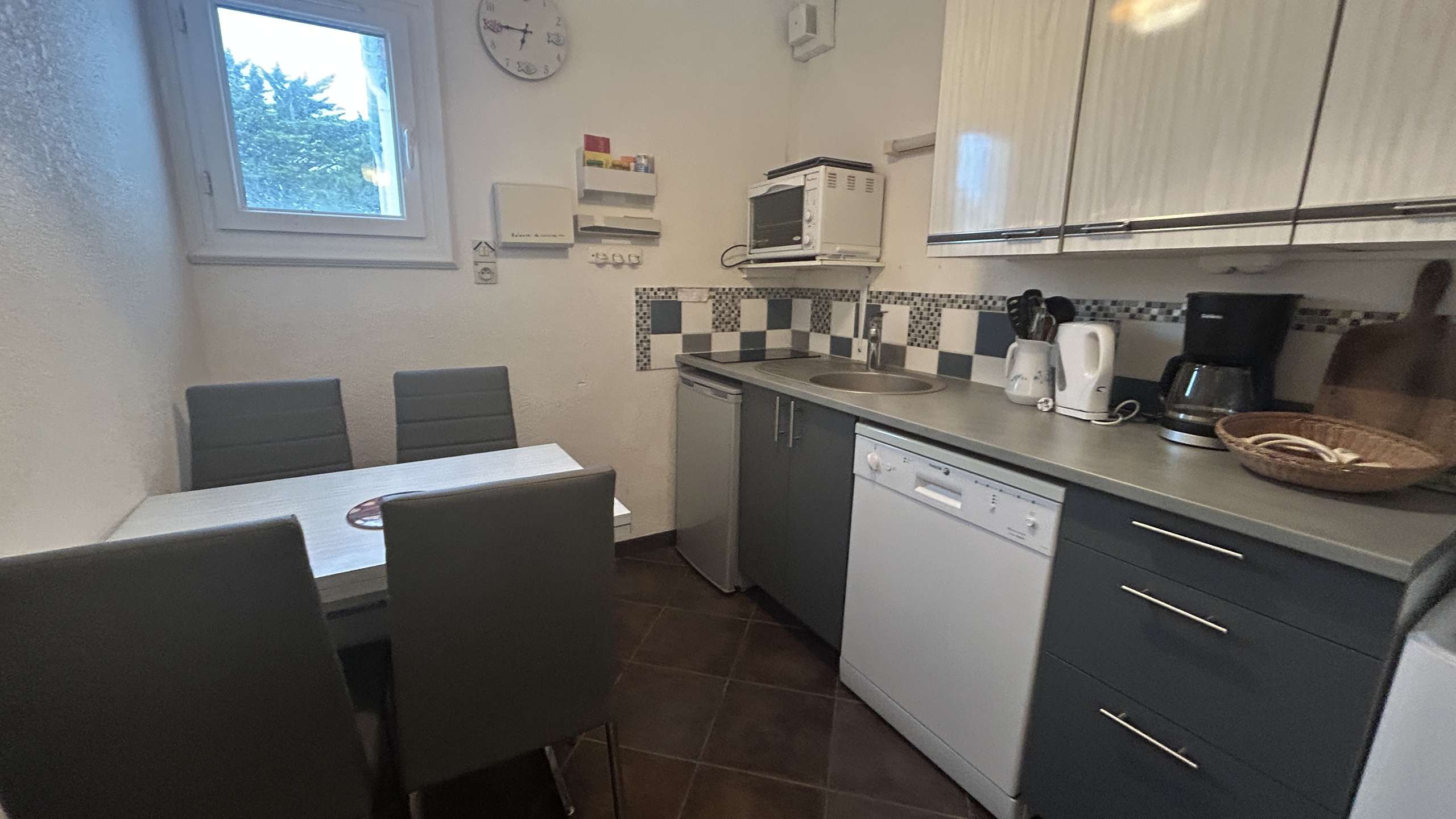 Located 300 m from a beautiful beach, this apartment on the 1st floor of a residence includes an entrance with cupboard, a living room with television and sofa, a fitted independent kitchen, two bedrooms, one with a double bed and one with two bunk beds and a single bed, a bathroom and a separate toilet.