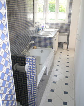 Independent office to the right in the enclosed garden (private) – Bedroom 2 of 8.6 m2 overlooking the garden with 1 140 bed (duvet), closet shelves, shower room of 2.6 m2 with shower, sink, toilet - Bedroom 3 of 9 m2 (accessible by the room 2) with 1 bed of 140, cupboard, shower room of 2.6 m2 with shower sink wc