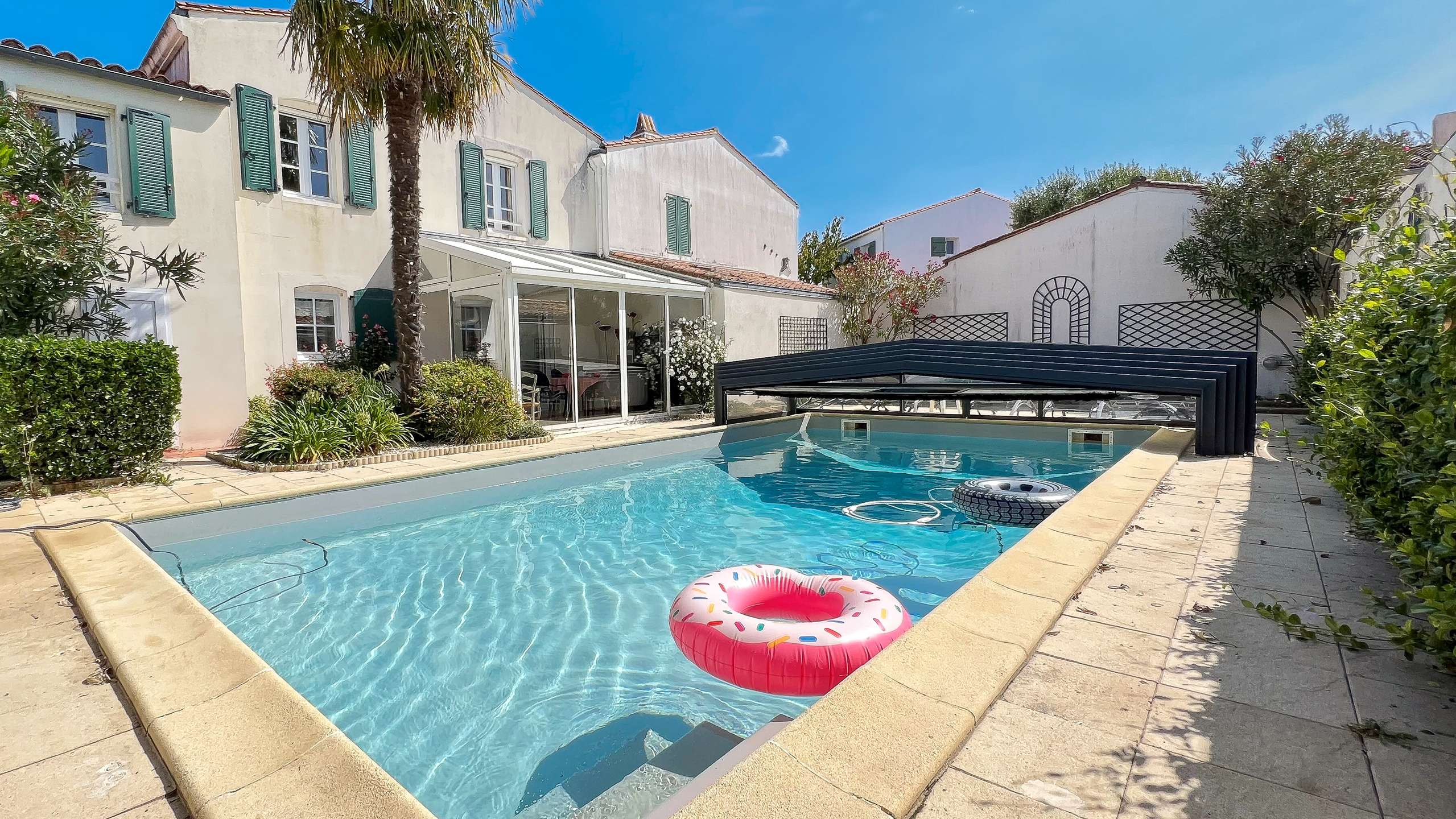 Two-storey villa with private and heated swimming pool in the heart of La Flotte, in a private, very quiet enclosure, comprising a 32m² living room opening onto a veranda, with its living room and its equipped kitchen, 3 bedrooms upstairs and a garden. Parking is in the "Ste Catherine" car park located near the villa (about 60€ per week). The rental is equipped with WIFI. END OF STAY CLEANING AND HOUSEHOLD LINEN MANDATORY (Bed linen, towel, bath mat and kitchen linen).