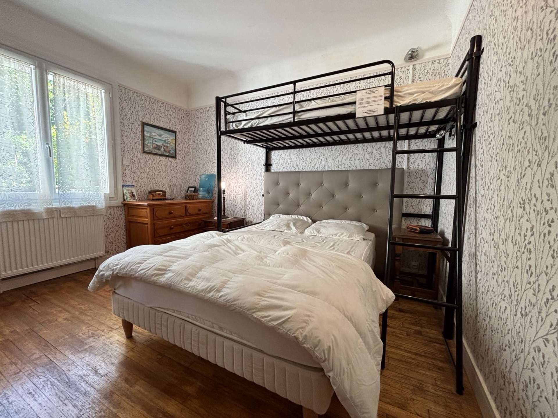 Agréable maison tout confort située à 150 mètres de la plage et de la forêt domaniale comprenant un salon/séjour avec un canapé, d'une cuisine fermée et équipée avec une véranda attenante, d'une chambre avec un lit deux couchages (140) avec salle d'eau et WC, d'une seconde chambre avec un lit deux couchages (140) et un lit superposé un couchage (90), une seconde salle d'eau et un second WC séparé. A l'extérieur, une terrasse avec un store, mobilier de jardin et plancha, un garage en sous-sol et un jardin clos et arboré.
