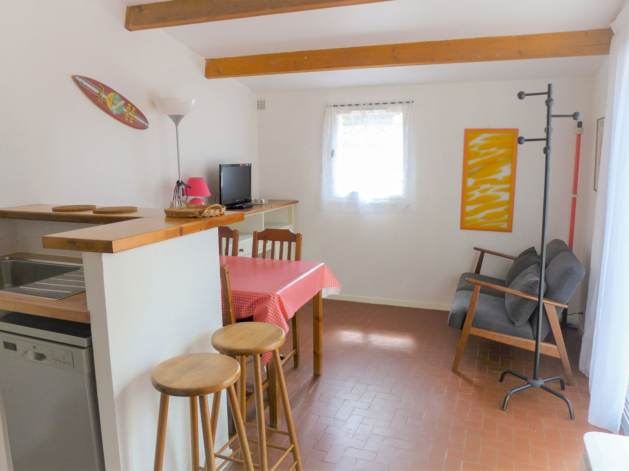2-room terraced house 32 m2. Living/dining room with TV. Alcove with 1 x 2 bunk beds. 1 room with 1 french bed. Kitchenette (2 hot plates, oven, dishwasher). Shower, sep. WC. No heating option. Terrace, south-east facing position, patio. Terrace furniture. Facilities: washing machine. Internet (WiFi, extra). Parking space n 89. Please note: non-smokers only. Smoke alarm. Instead of an enclosed bedroom, some sleeping areas are located in an open-plan area (gallery, alcove, etc.).