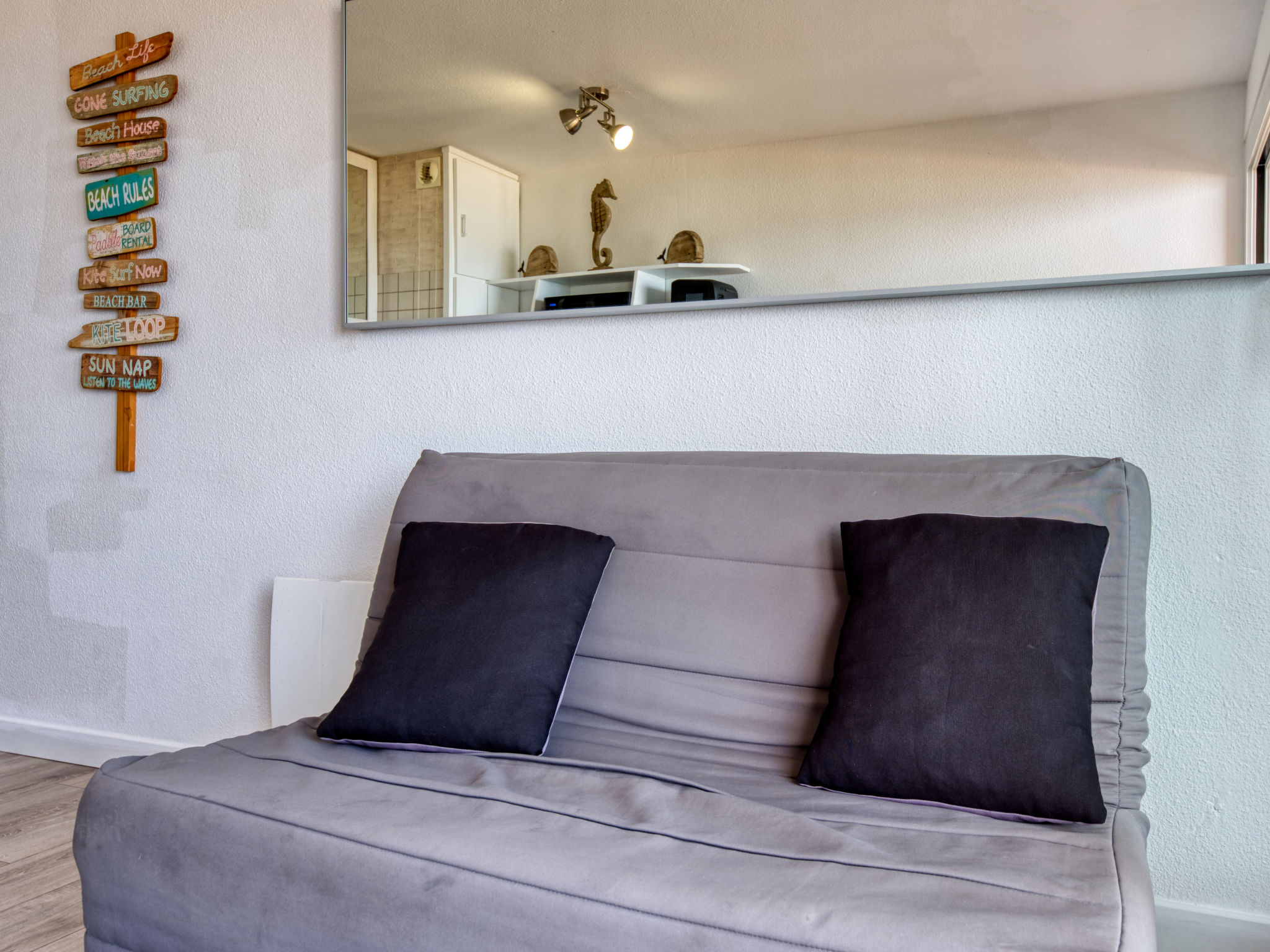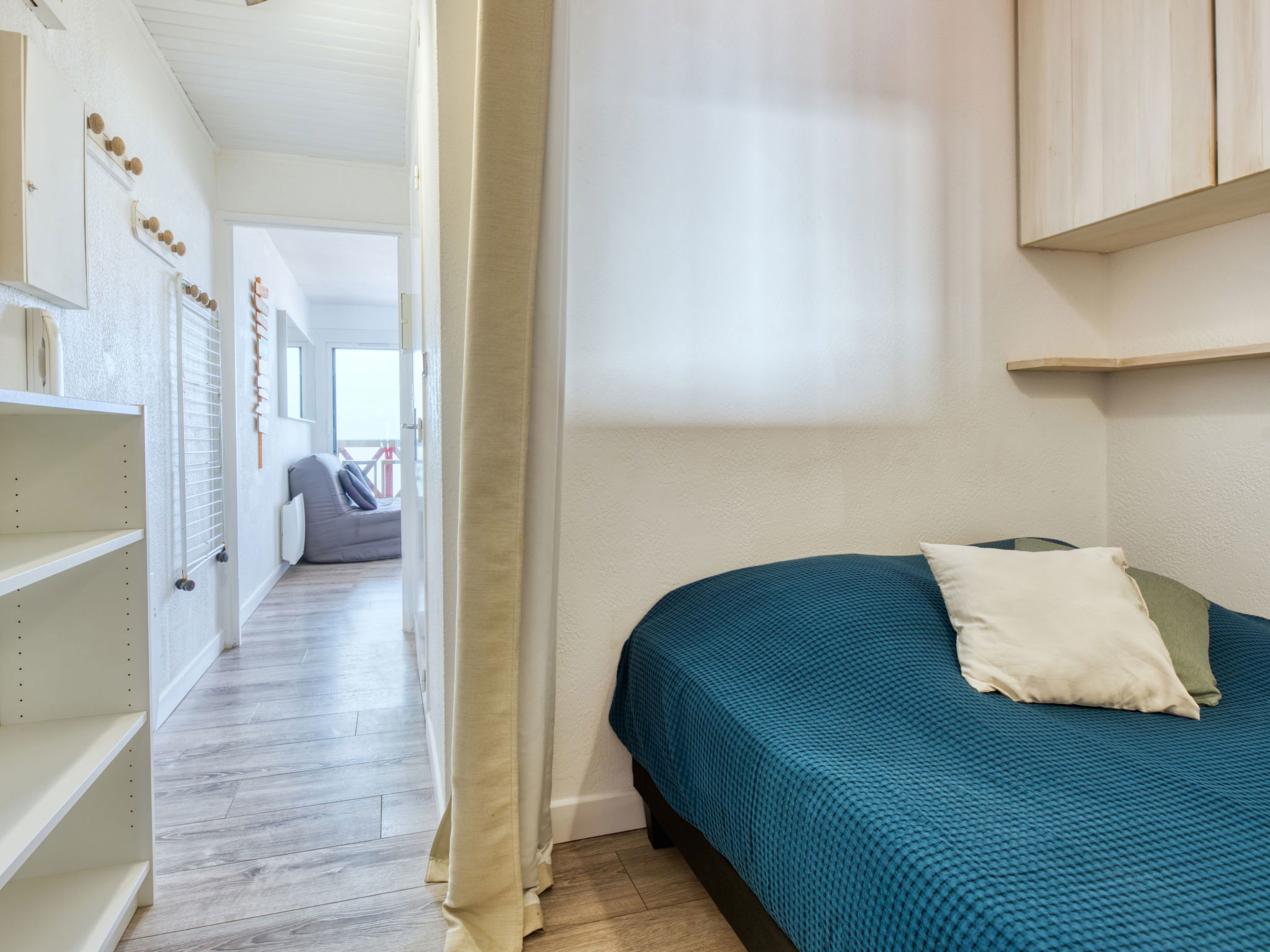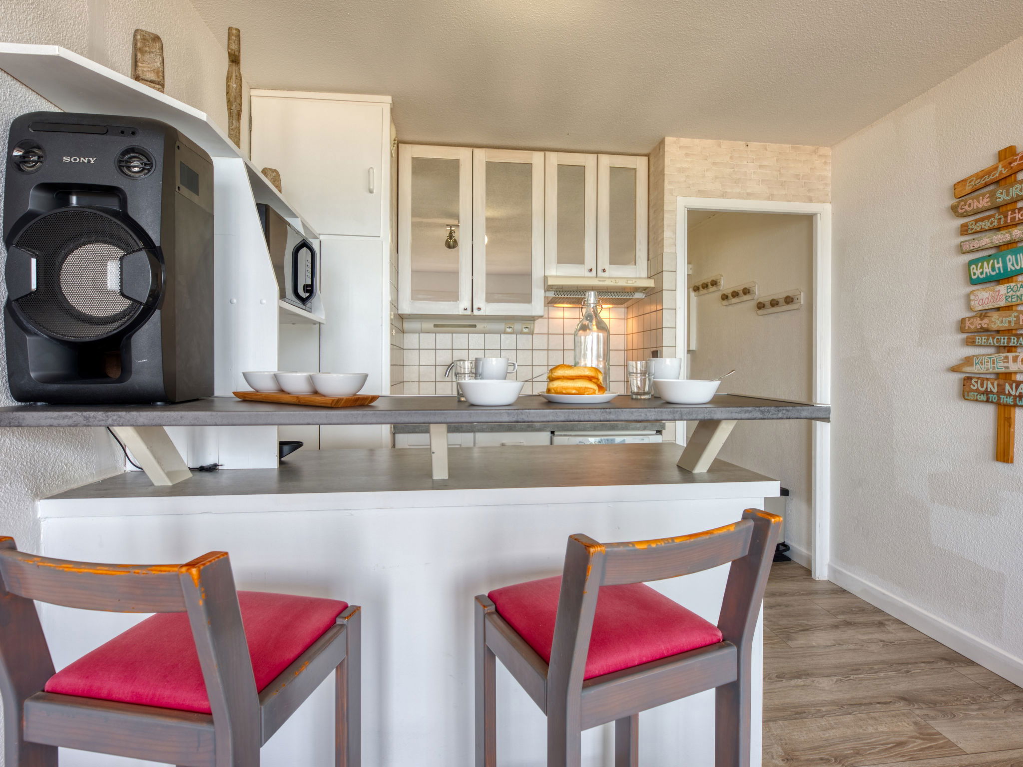 1-room apartment 24 m2 on 2nd floor. Renovated in 2019: living/dining room with 1 double sofabed (140 cm, length 188 cm), TV. Exit to the balcony. Alcove with 1 french bed (160 cm, length 200 cm). Kitchenette (dishwasher, 2 ceramic glass hob hotplates, electric coffee machine, Capsules for coffee machine (Nespresso) extra, combination microwave) with bar. Shower/WC. Electric heating. Balcony 5 m2, west facing position. Balcony furniture. Marvellous view of the sea. Facilities: Internet (WiFi, extra). Parking space n 24. Please note: not suitable for small children. Non-smokers only. Smoke alarm. Instead of an enclosed bedroom, some sleeping areas are located in an open-plan area (gallery, alcove, etc.).