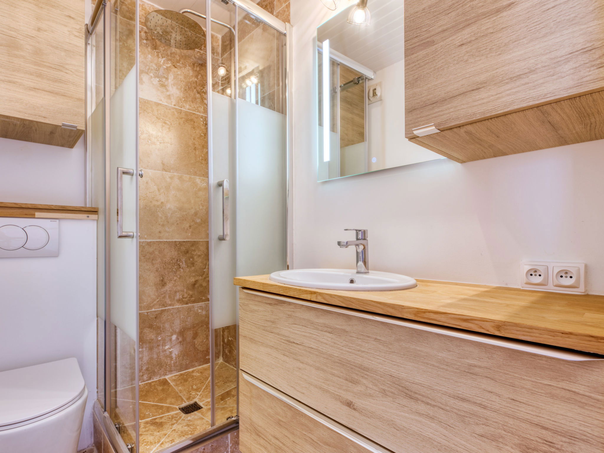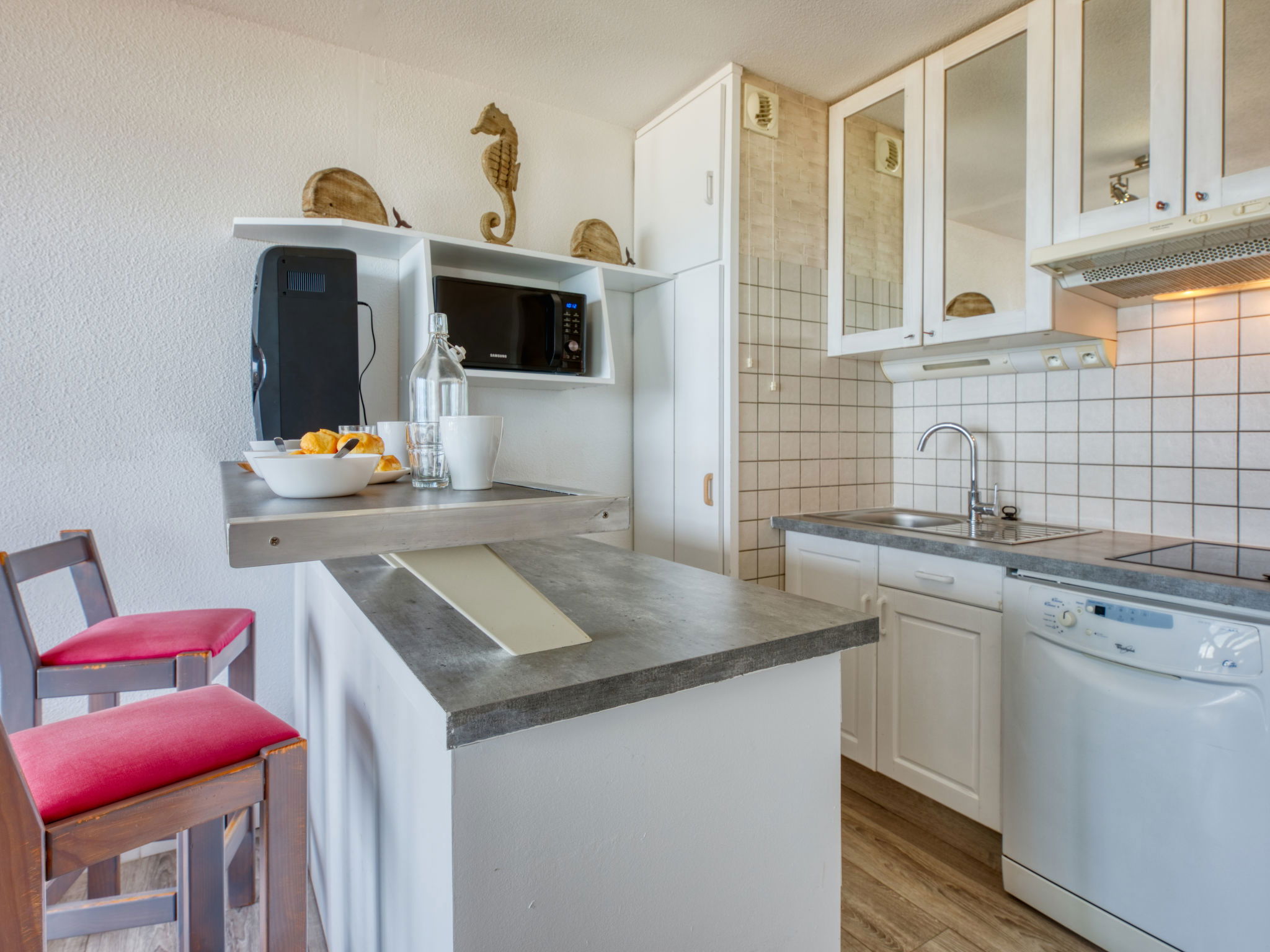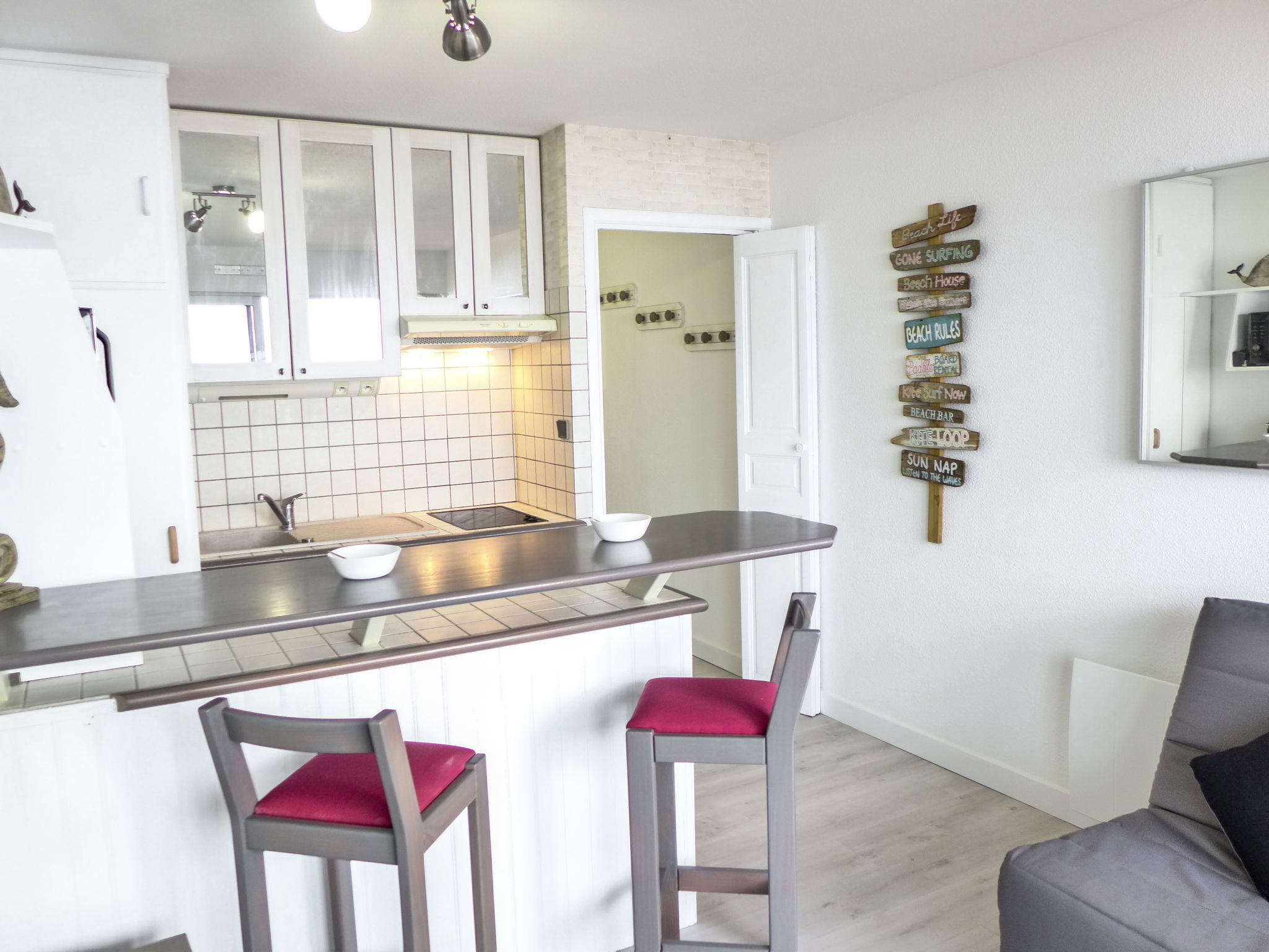 1-room apartment 24 m2 on 2nd floor. Renovated in 2019: living/dining room with 1 double sofabed (140 cm, length 188 cm), TV. Exit to the balcony. Alcove with 1 french bed (160 cm, length 200 cm). Kitchenette (dishwasher, 2 ceramic glass hob hotplates, electric coffee machine, Capsules for coffee machine (Nespresso) extra, combination microwave) with bar. Shower/WC. Electric heating. Balcony 5 m2, west facing position. Balcony furniture. Marvellous view of the sea. Facilities: Internet (WiFi, extra). Parking space n 24. Please note: not suitable for small children. Non-smokers only. Smoke alarm. Instead of an enclosed bedroom, some sleeping areas are located in an open-plan area (gallery, alcove, etc.).