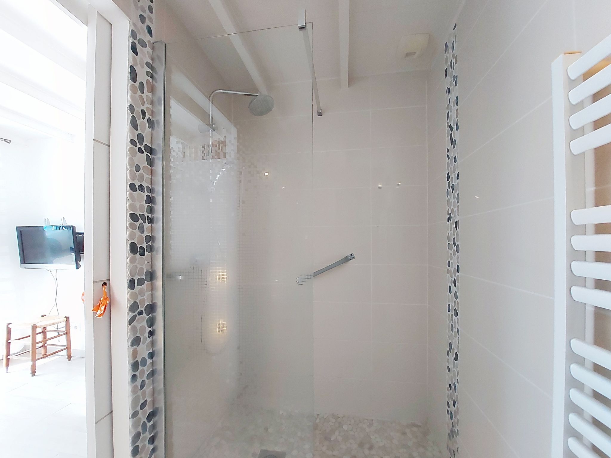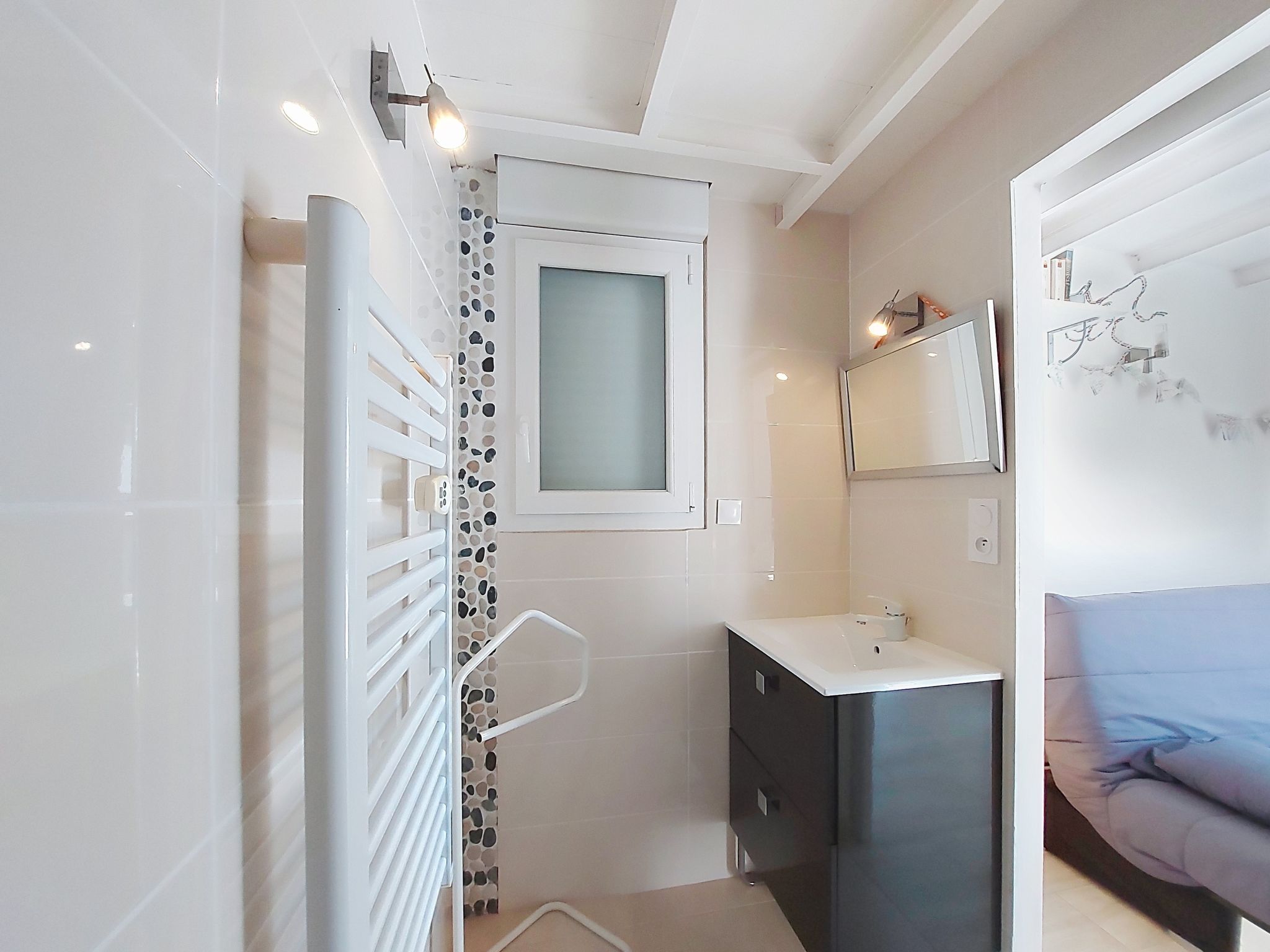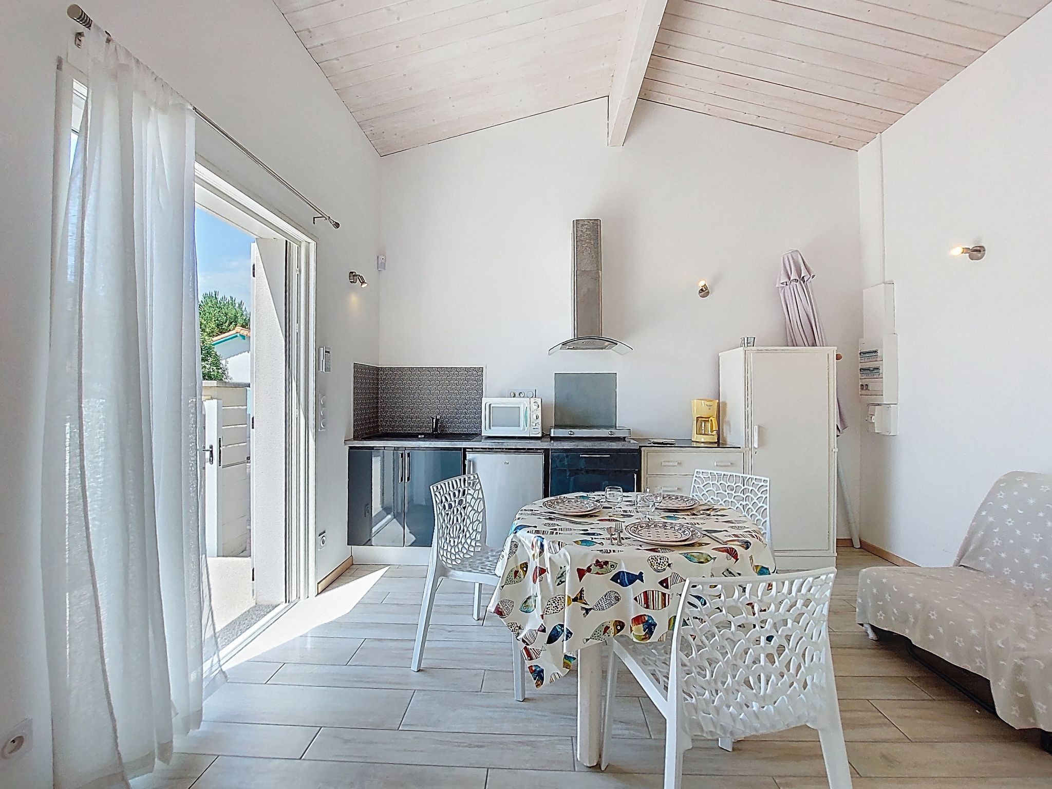 Saint Palais 6 km from Royan: Small terraced house "Les Hauts du Parc". In the resort 600 m from the centre of Saint Palais sur Mer, in the residential district, 600 m from the sea, 600 m from the beach, west facing position. Public parking on the road. Grocery 600 m, supermarket 700 m, restaurant 600 m, bakery 850 m, café 600 m, bus stop "Rha" 500 m, railway station "Royan" 7 km, sandy beach "Bureau - Saint Palais sur Mer" 600 m, park "Luna Park (Juillet - Août)" 13 km, indoor swimming pool 7 km, thermal baths "Thalassothérapie Thalazur Royan" 5 km, lake Saint Palais sur Mer 600 m. Golf course (18 hole) 2.2 km, surf school 750 m, sailing school 1.2 km, indoor tennis centre 1 km, riding stable 3 km. Nearby attractions: Golf de Royan 2500 km, Centre équestre Maine Gaudin 3 km, Embarcadère Royan - Le Verdon 6 km, Palais des Congrès - Royan 6 km, Zoo de La Palmyre 9 km, Hippodrome - La Palmyre 10 km. Please note: the keys‘ handover takes place by the agency in Vaux sur Mer, 4 km. The owner lives on the same property.