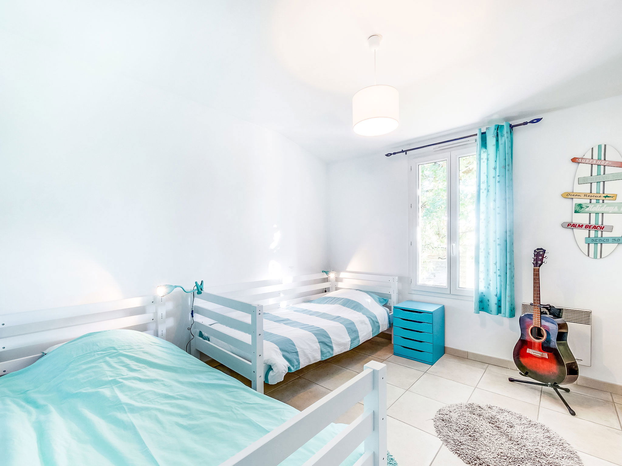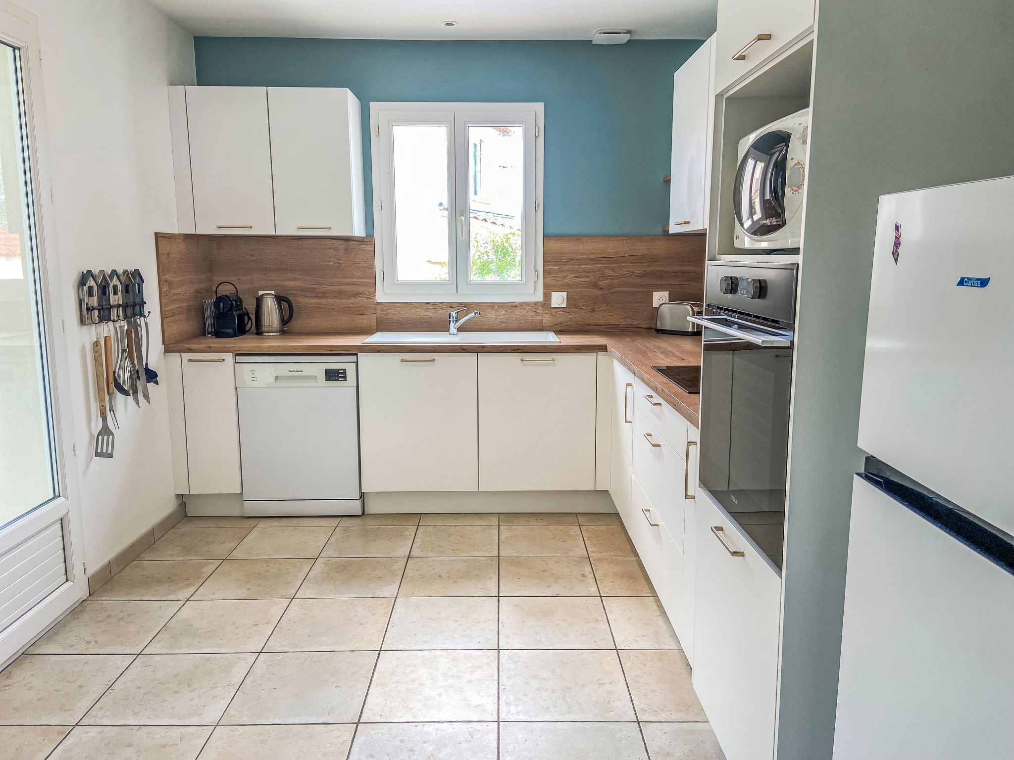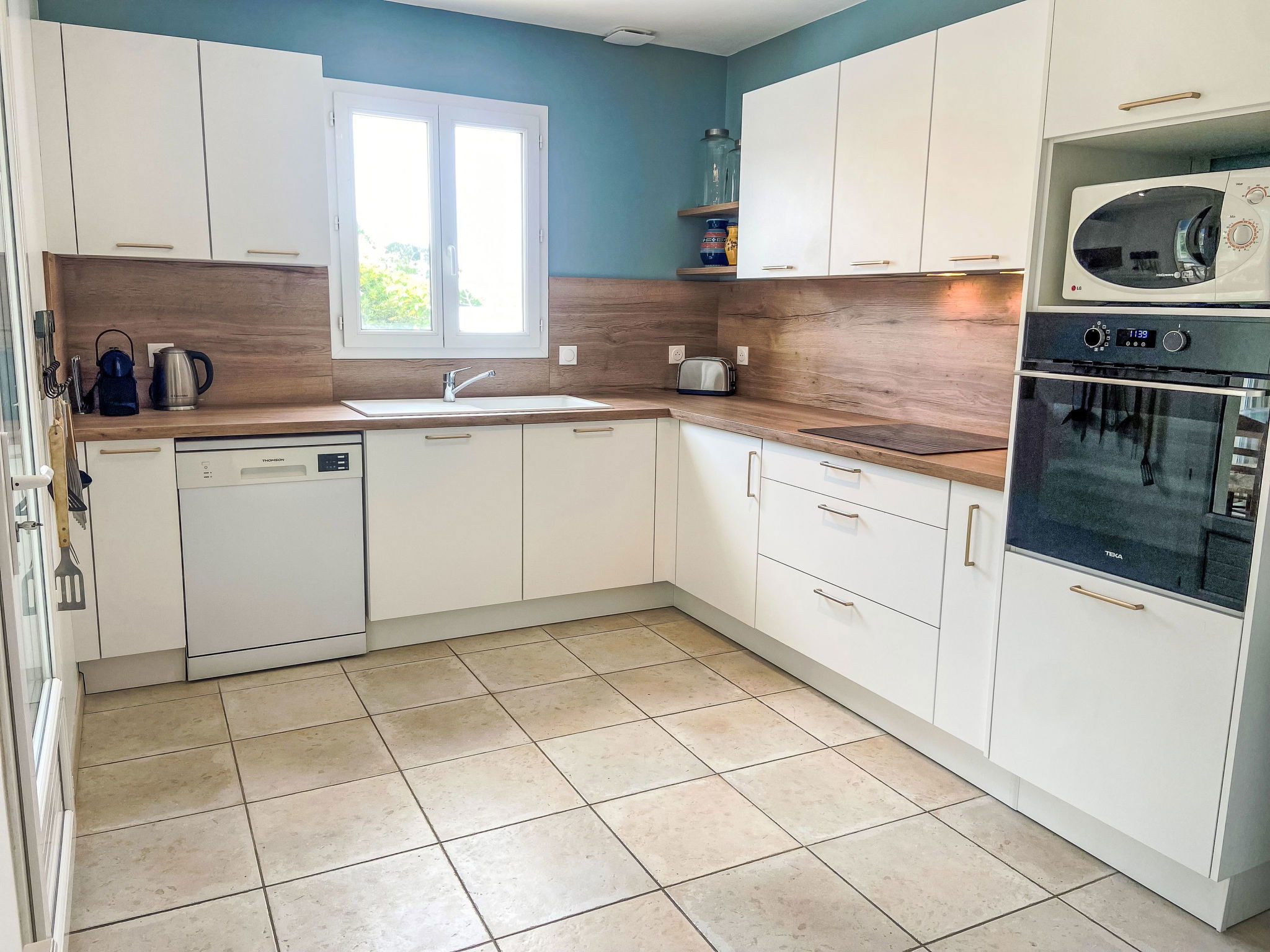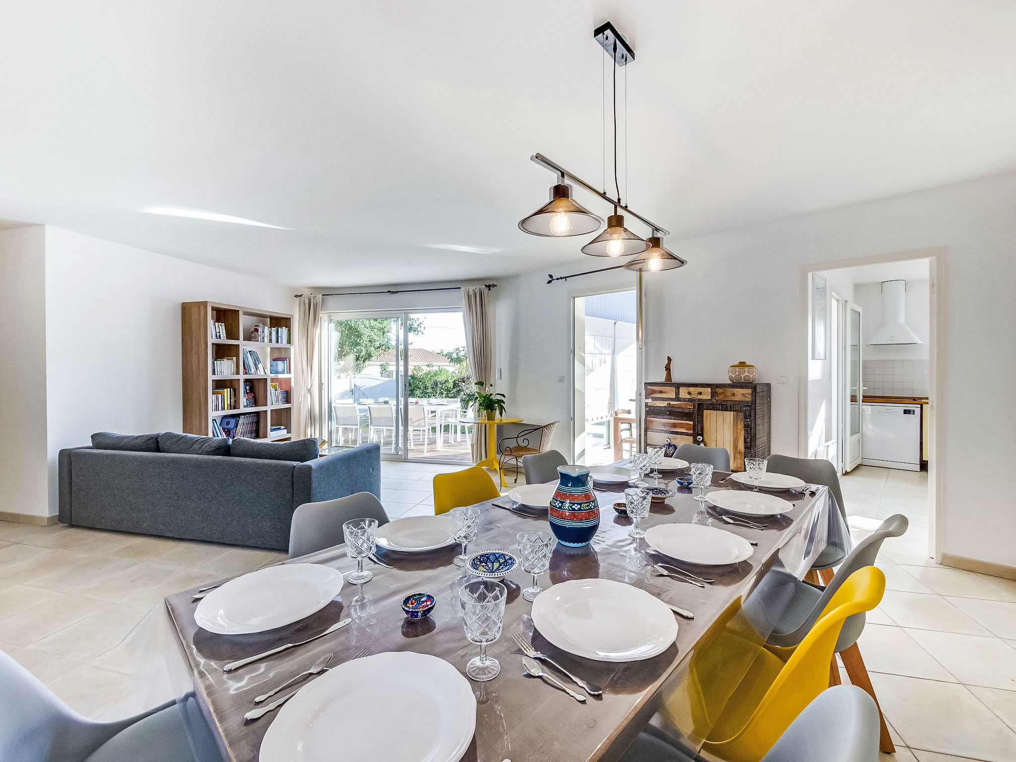 6-room villa 146 m2. Beautiful furnishings: large living/dining room with TV (flat screen). Exit to the garden, to the terrace, to the veranda. 1 room with 1 french bed (1 x 160 cm, length 190 cm), shower/WC. 1 small room with 1 bed (90 cm, length 190 cm), 1 double sofabed (1 x 140 cm, length 190 cm), DVD. 1 room with 1 french bed (1 x 140 cm, length 190 cm). 1 room with 2 beds (90 cm). 1 room with 1 french bed (1 x 160 cm, length 190 cm), shower/WC. Kitchen (oven, dishwasher, 4 ceramic glass hob hotplates, kettle, microwave, freezer, electric coffee machine, Capsules for coffee machine (Nespresso) extra). Bathroom, sep. WC. Electric heating. Large terrace, garden 592 m2. Terrace furniture, barbecue. Facilities: washing machine, dryer, children's high chair, baby cot. Internet (WiFi, free). Parking at the house. Please note: smoke alarm. Veranda with air conditioning. Big screen smart TV. Very high speed fiber internet. Baby equipment: 1 travel cot, 1 high chair, 1 deckchair, 1 baby playpen, 1 changing table, 2 booster seats.