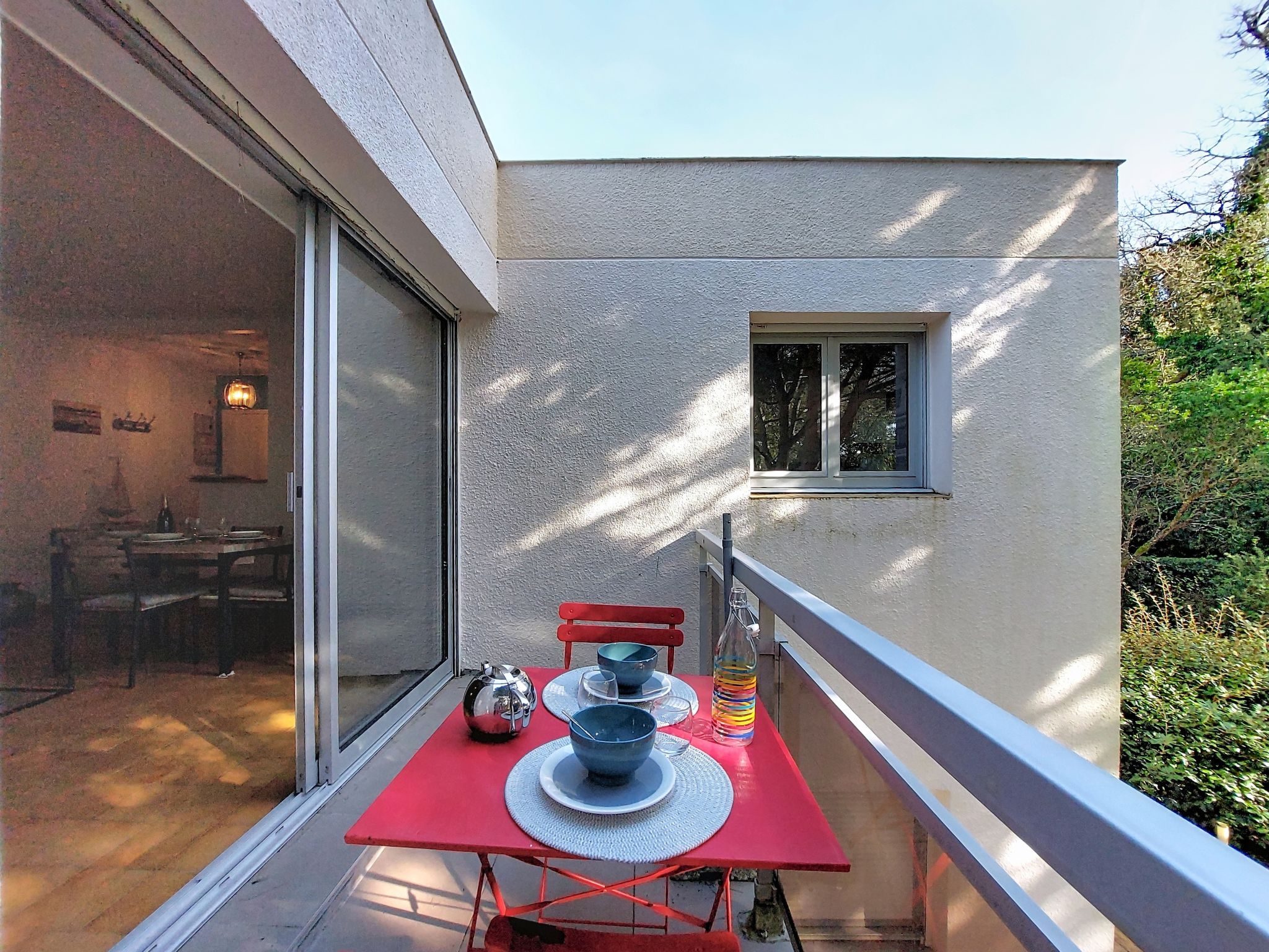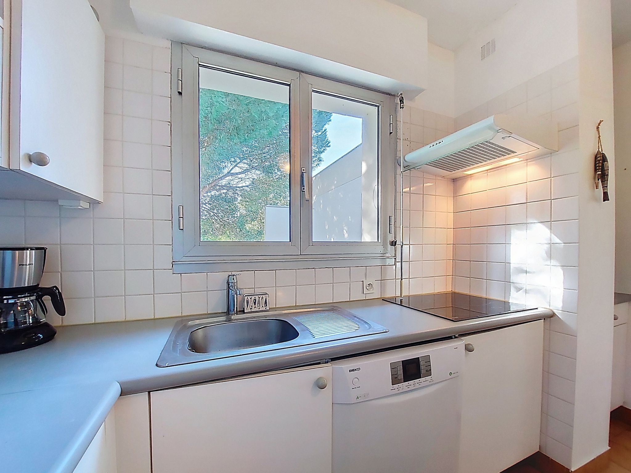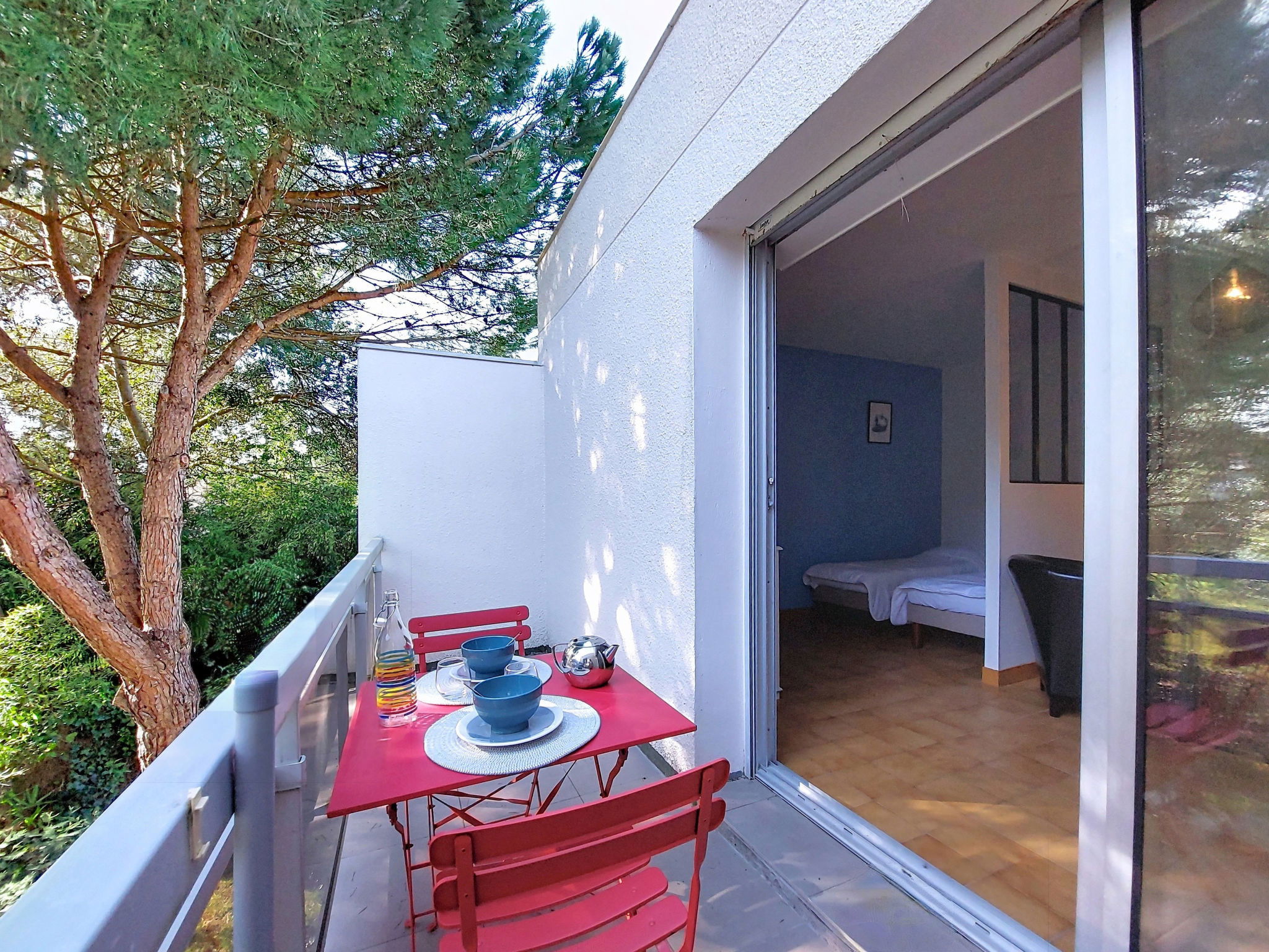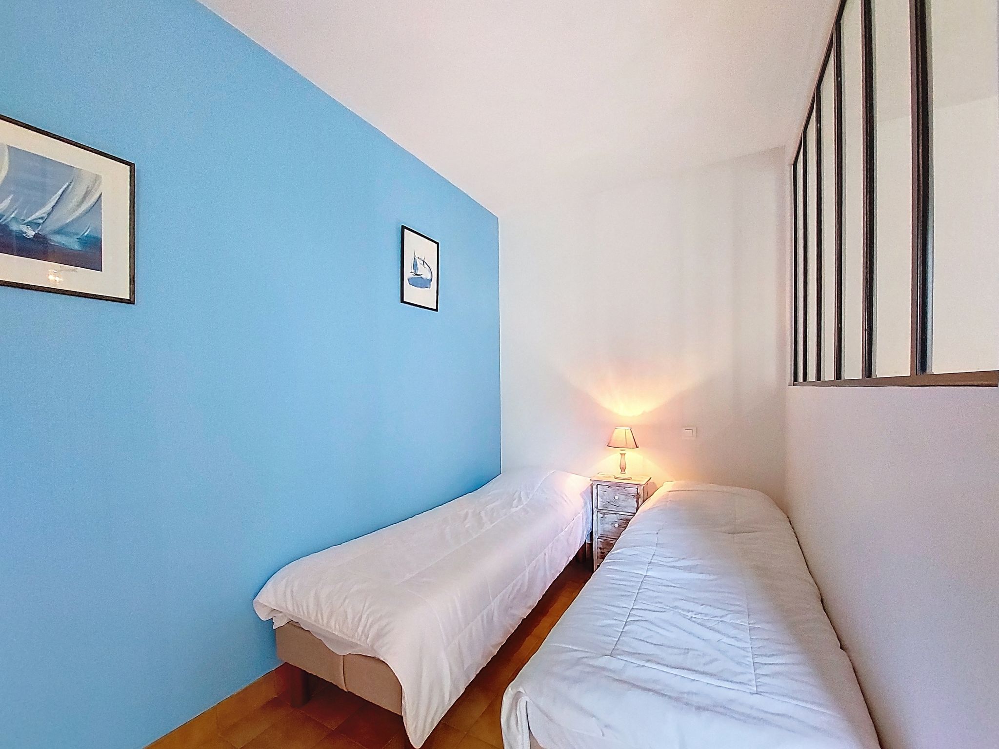 2-room apartment 51 m2 on 1st floor, south facing position. Beautiful furnishings: living/dining room with TV. Exit to the terrace. Alcove with 2 beds (70 cm, length 190 cm). 1 room with 1 french bed (1 x 140 cm, length 190 cm). Kitchen (mini-oven, dishwasher, 3 induction hot plates, microwave, freezer). Shower, sep. WC. Electric heating. Terrace 7 m2, south facing position. Terrace furniture. Facilities: washing machine. Internet (WiFi, free). Parking space n 20. Please note: smoke alarm. Instead of an enclosed bedroom, some sleeping areas are located in an open-plan area (gallery, alcove, etc.).