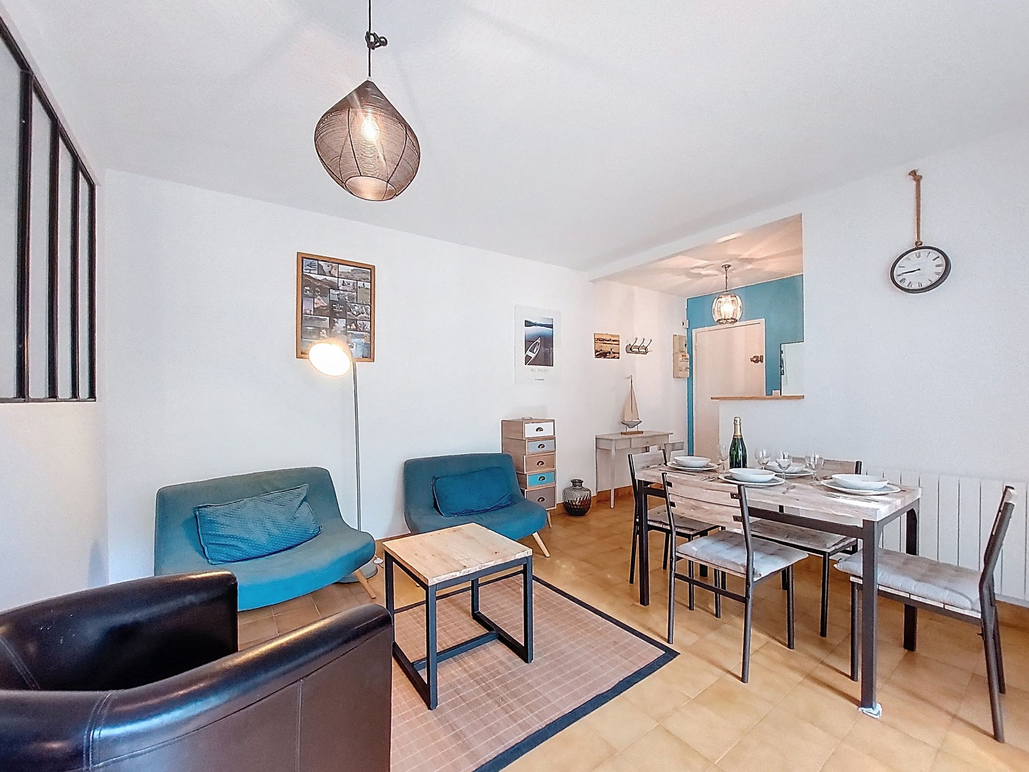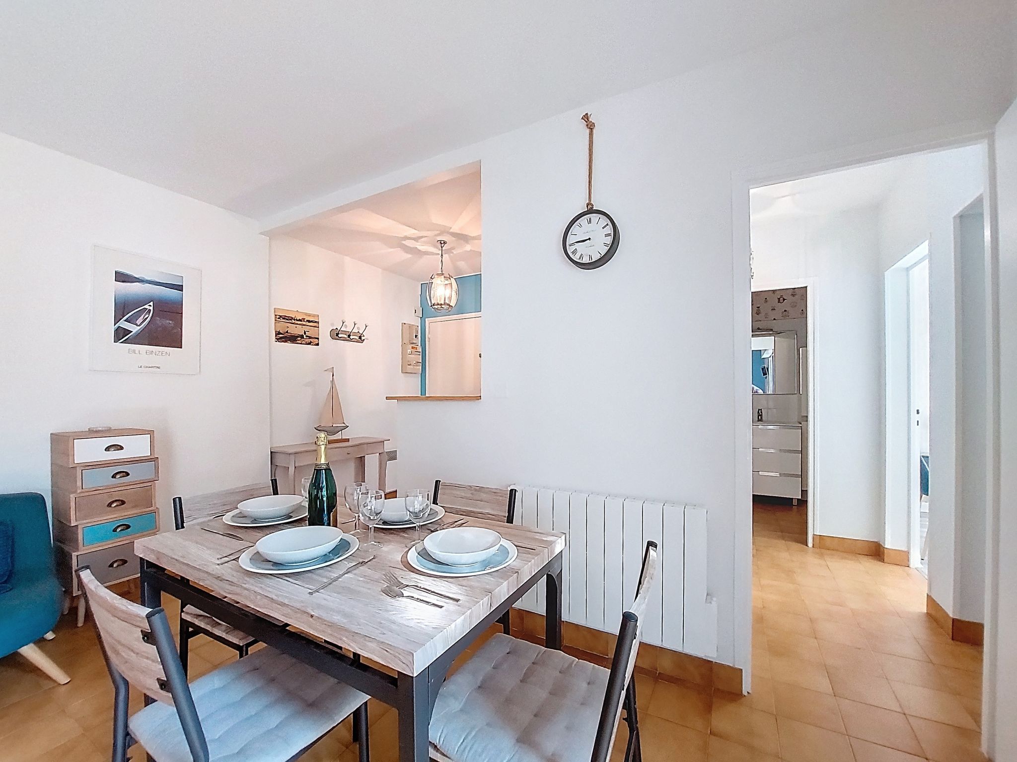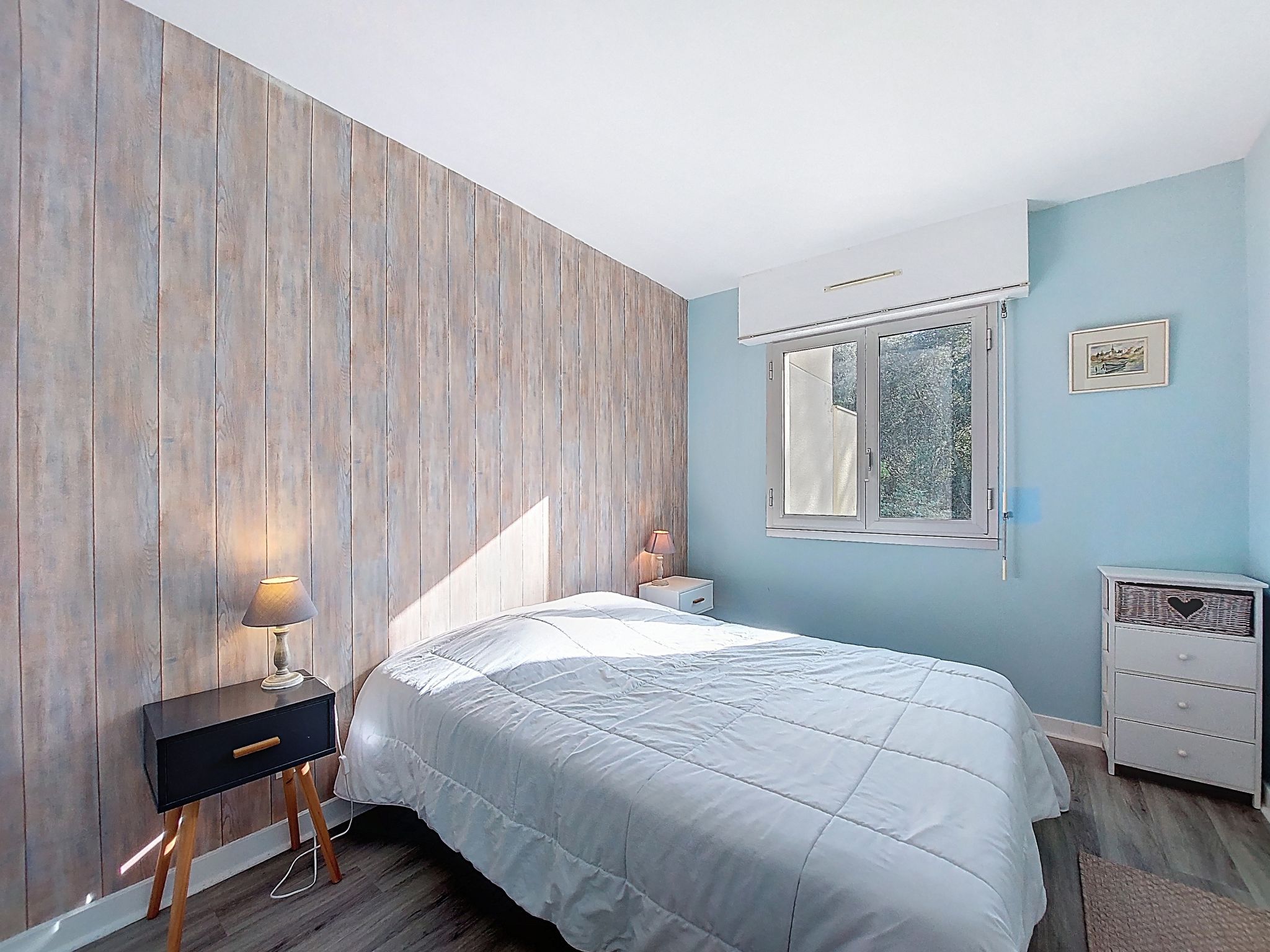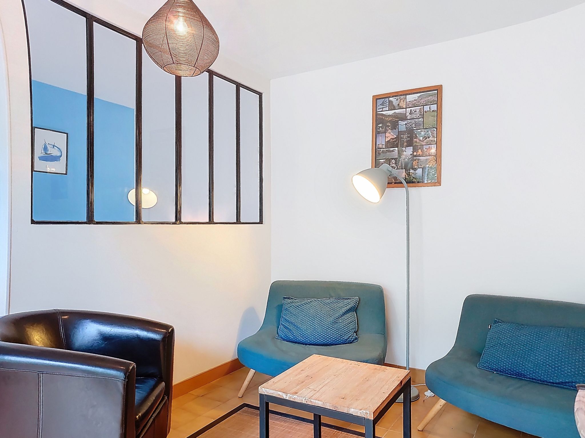 2-room apartment 51 m2 on 1st floor, south facing position. Beautiful furnishings: living/dining room with TV. Exit to the terrace. Alcove with 2 beds (70 cm, length 190 cm). 1 room with 1 french bed (1 x 140 cm, length 190 cm). Kitchen (mini-oven, dishwasher, 3 induction hot plates, microwave, freezer). Shower, sep. WC. Electric heating. Terrace 7 m2, south facing position. Terrace furniture. Facilities: washing machine. Internet (WiFi, free). Parking space n 20. Please note: smoke alarm. Instead of an enclosed bedroom, some sleeping areas are located in an open-plan area (gallery, alcove, etc.).