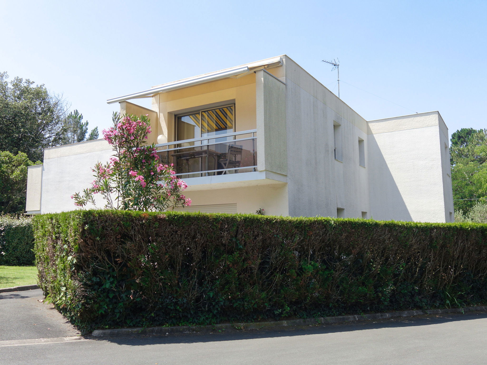 Apartment block "". 20 apartments in the residence. In the resort 500 m from the centre of Saint Palais sur Mer, in a quiet position, 500 m from the sea, 500 m from the beach. Private: terrace, garden furniture, parking. Shop, grocery 500 m, supermarket 750 m, restaurant 500 m, bar, bakery, café 600 m, bus stop "Mouillères" 300 m, railway station "Royan" 7 km, sandy beach "Le Platin" 500 m, park "Luna Park (Juillet-Août)" 12 km, thermal baths "Thalassothérapie Thalazur Royan" 6 km, lake Saint Palais sur Mer 600 m. Sports harbour 6.5 km, golf course (18 hole) 1.4 km, sailing school 1.8 km, riding stable 2 km. Nearby attractions: Zoo de La Palmyre 7 km, Hippodrome La Palmyre 9 km, Centre aquatique Iléo - Ile d'Oléron 40 km, Fort Boyard - Fouras 50 km, Aéroport La Rochelle - Ile de Ré 80 km, Aéroport Bordeaux - Mérignac 110 km. The keys‘ handover takes place by the agency in Vaux sur Mer, 4 km.