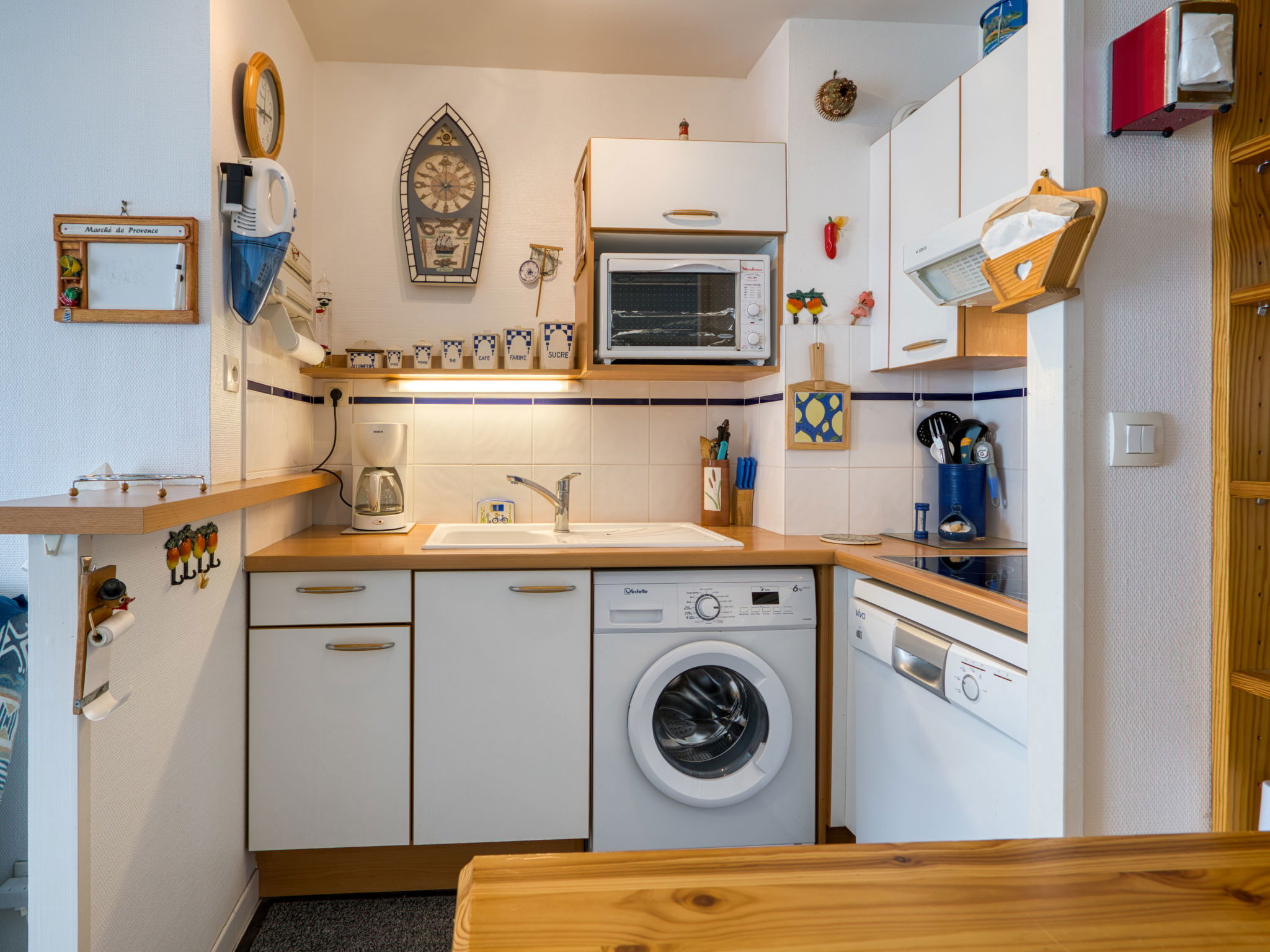 2-room apartment 36 m2 on 2nd floor. Living/dining room with 1 double sofabed (1 x 140 cm, length 190 cm), TV. 1 room with 1 french bed (1 x 140 cm, length 190 cm), TV. Kitchenette (4 hot plates, oven, dishwasher, microwave, freezer). Shower, sep. WC. Electric heating. Small terrace, west facing position. Terrace furniture. Facilities: washing machine. Internet (WiFi, extra). Parking space n 16. Please note: apartment street side. Smoke alarm.