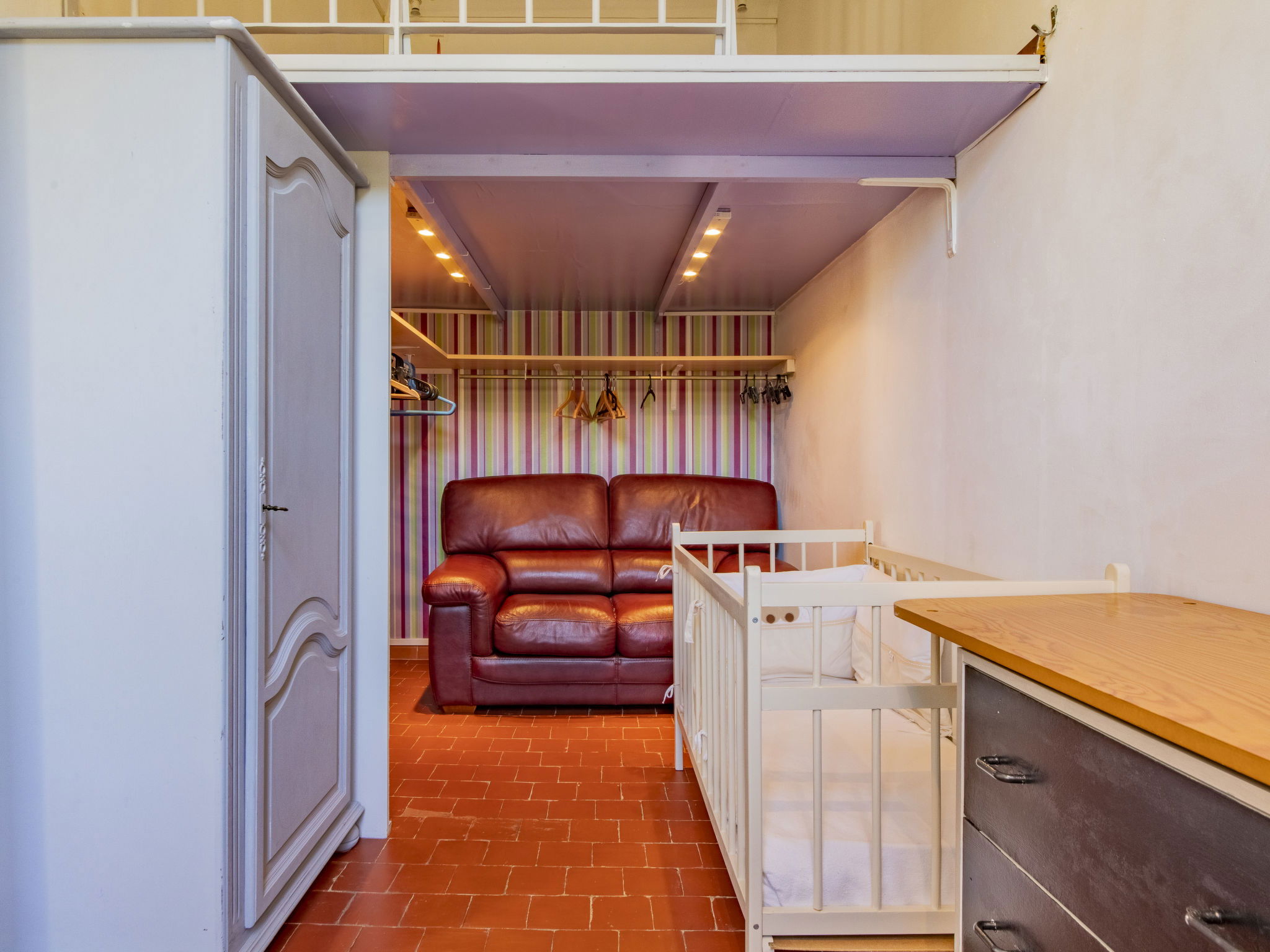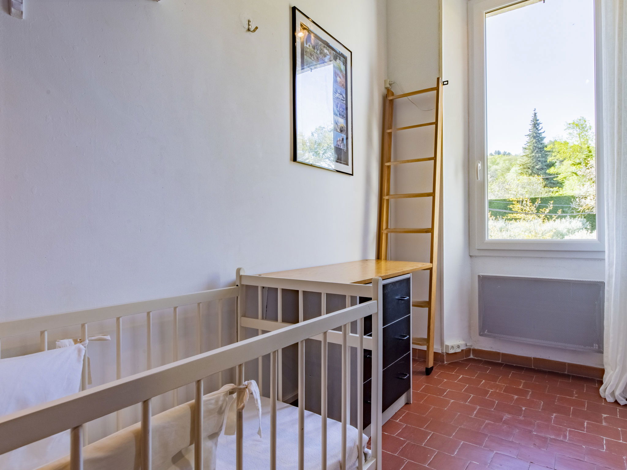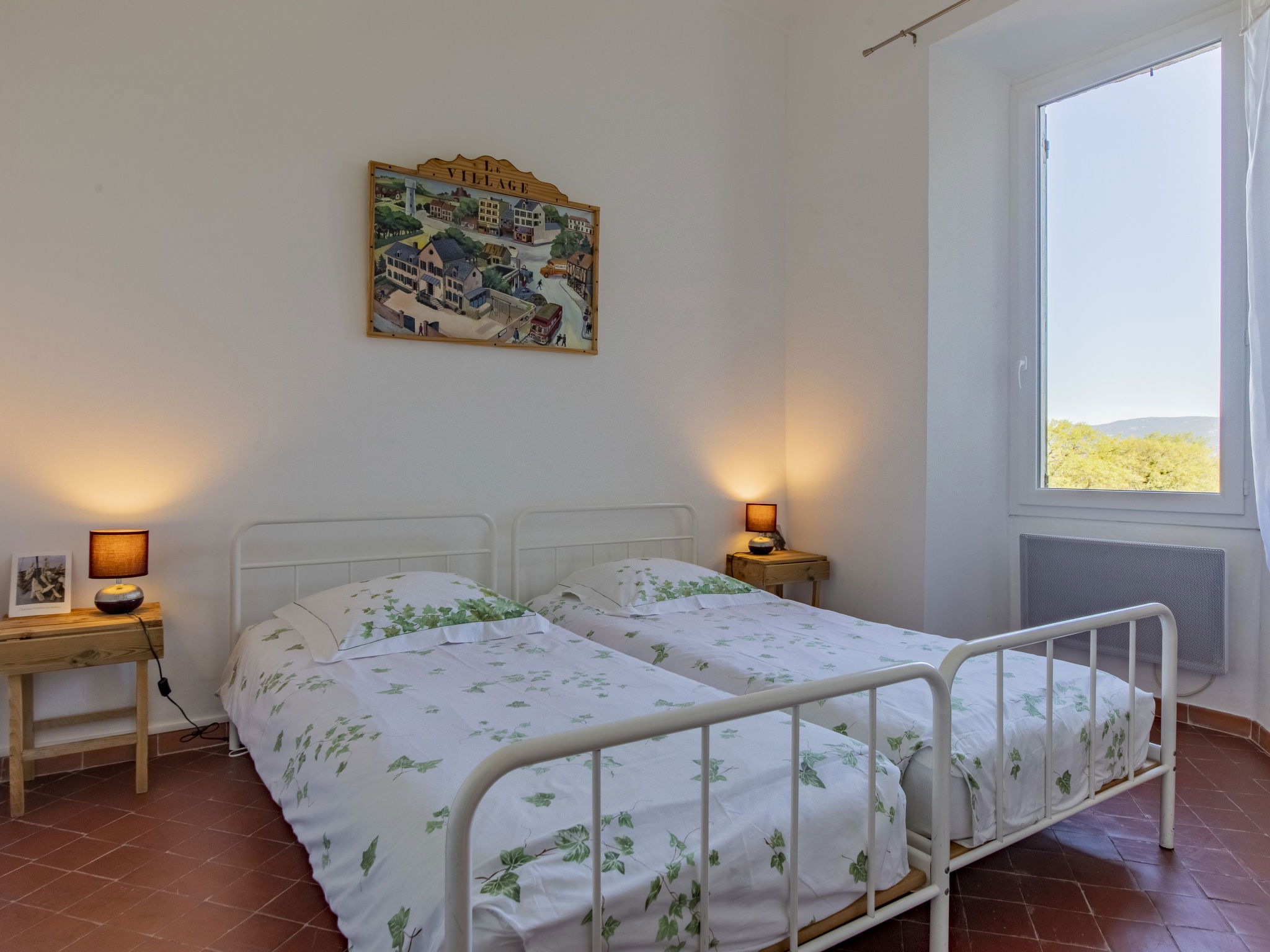 "Bastide du 19ième ()", 3-room house 100 m2 on 2 levels. Partly renovated in 2018, tasteful and cosy furnishings: living/dining room with dining table and TV. Exit to the terrace. Kitchen (4 hot plates, dishwasher, freezer, electric coffee machine, combination microwave). Upper floor: 1 room with 1 french bed (160 cm). 1 room with 2 beds. Bathroom, sep. WC. Electric heating. Terrace 60 m2, roofed, patio. Terrace furniture, barbecue, deck chairs (4), box-room. Panoramic view. Facilities: washing machine, iron.