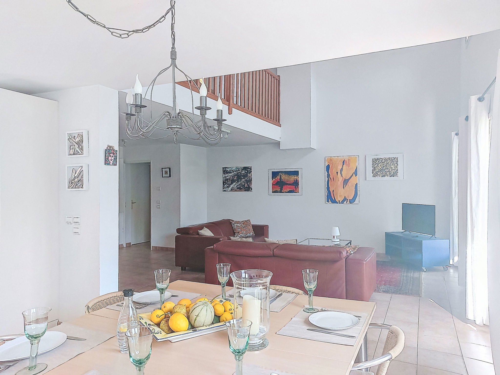 Beautiful house "Olivier". 3 km from the centre of Mougins, 10 km from the centre of Cannes, residential area (villas), 8 km from the sea. Private: property 600 m2 (fenced), garden, single garage. Shop 500 m, bus stop 300 m, sandy beach 8 km.