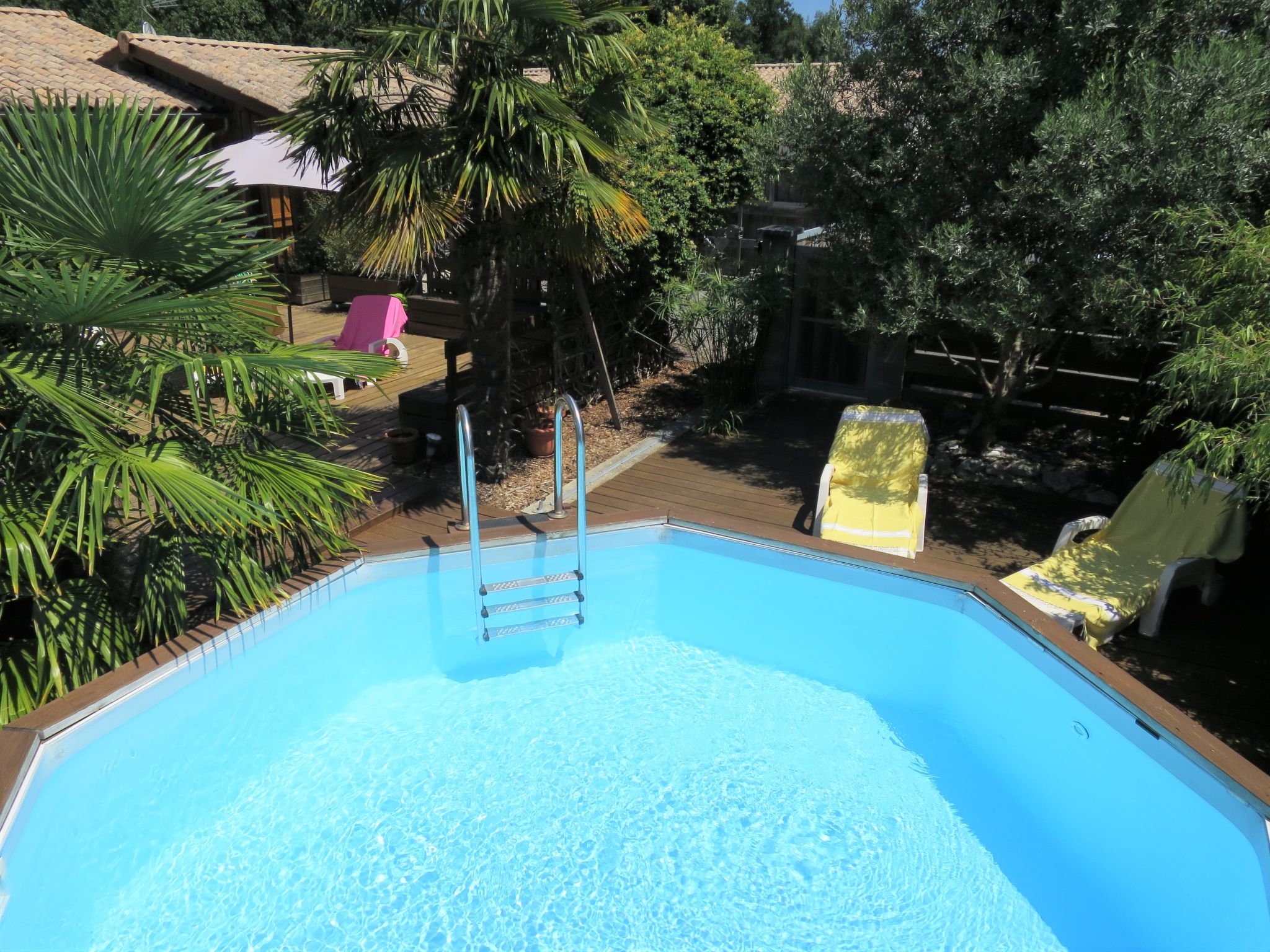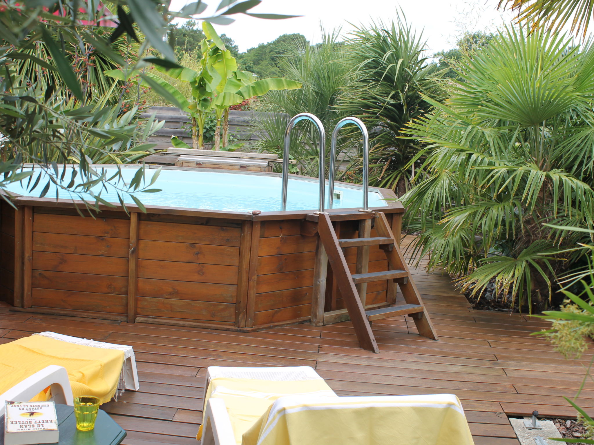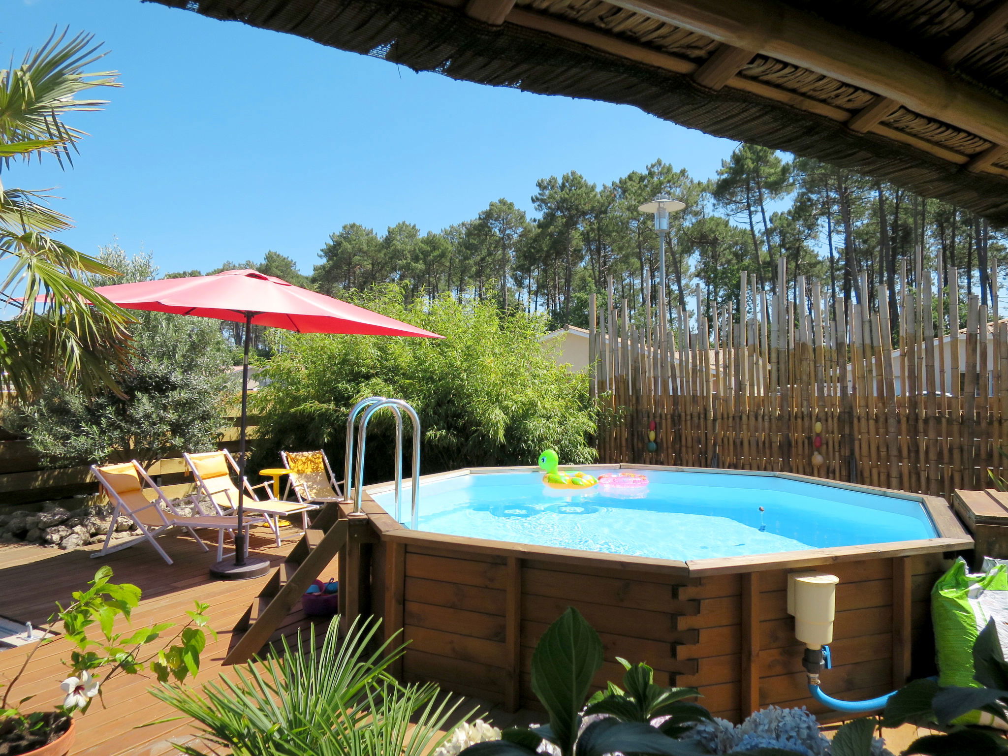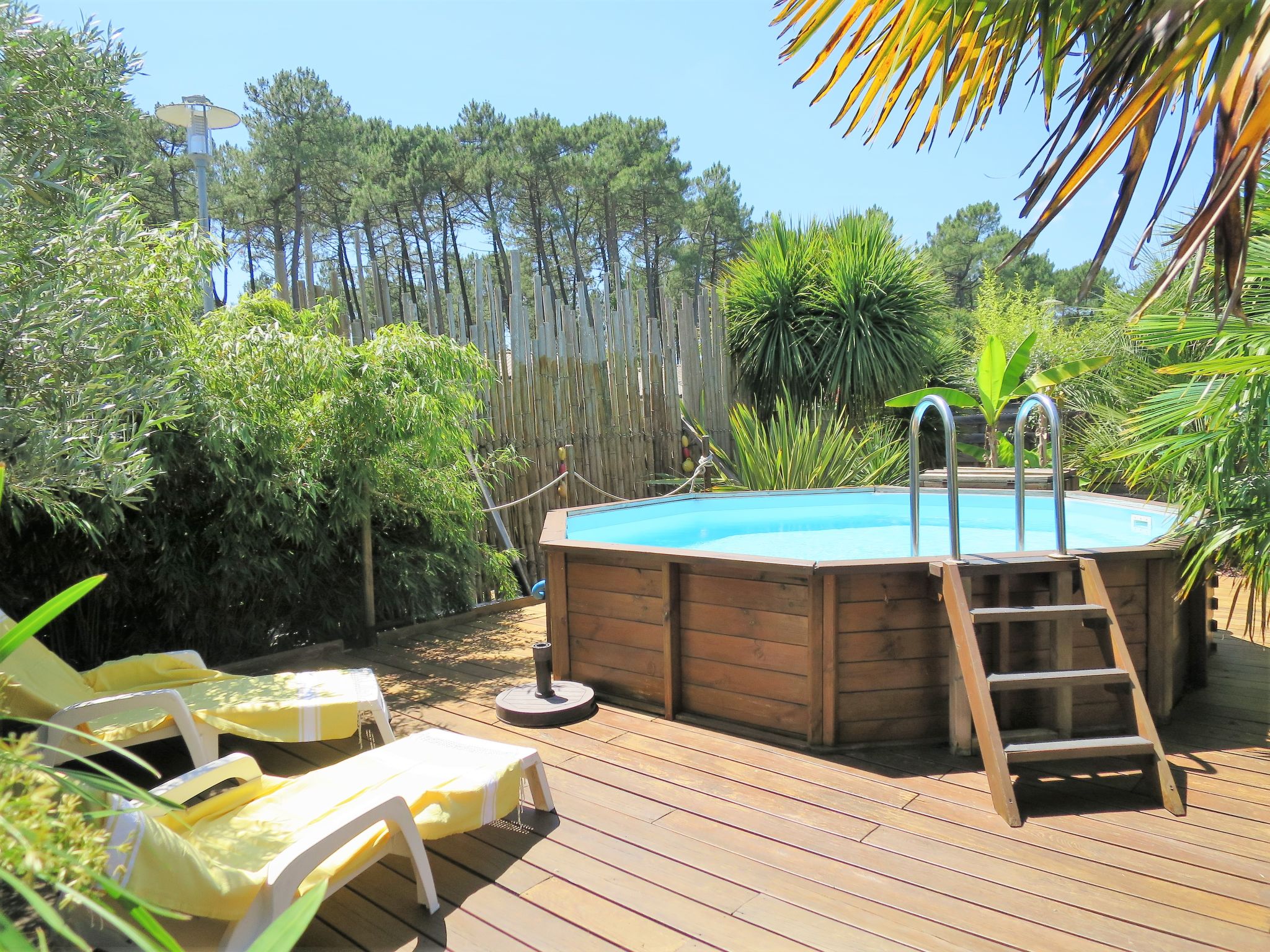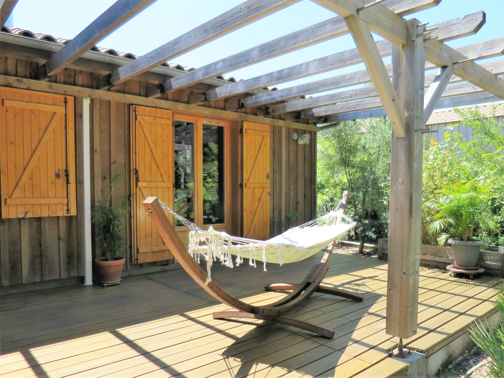 Single-family house "Ti Kaz Doudou", surrounded by trees. In the district of Ferron 1.5 km from the centre of Le Porge, 32 km from the centre of Cap Ferret, 50 km from the centre of Bordeaux, 9 km from the sea. Private: property 800 m2 (fenced) with trees, swimming pool (above ground) (4 m diameter, depth 130 cm, seasonal availability: 15.Jun. - 30.Sep.). Pergola, pool maintenance by the owner/gardener. Parking (for 2 cars) at the house. Shop 1.5 km, bus stop "Le ferron" 20 m, sandy beach "Le Porge Océan" 9 km.