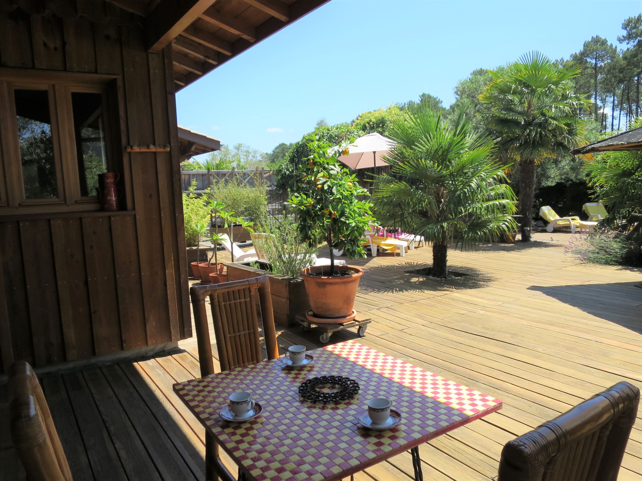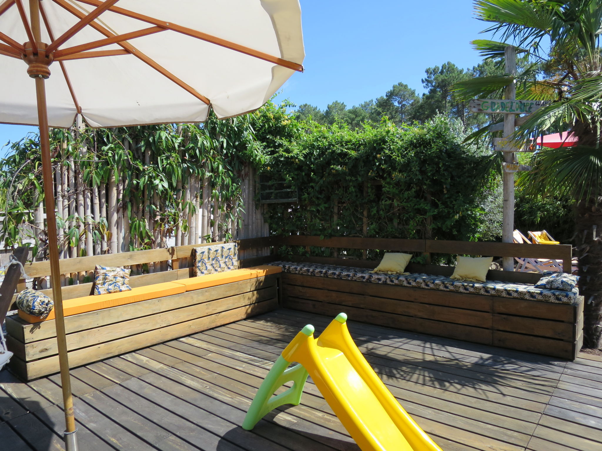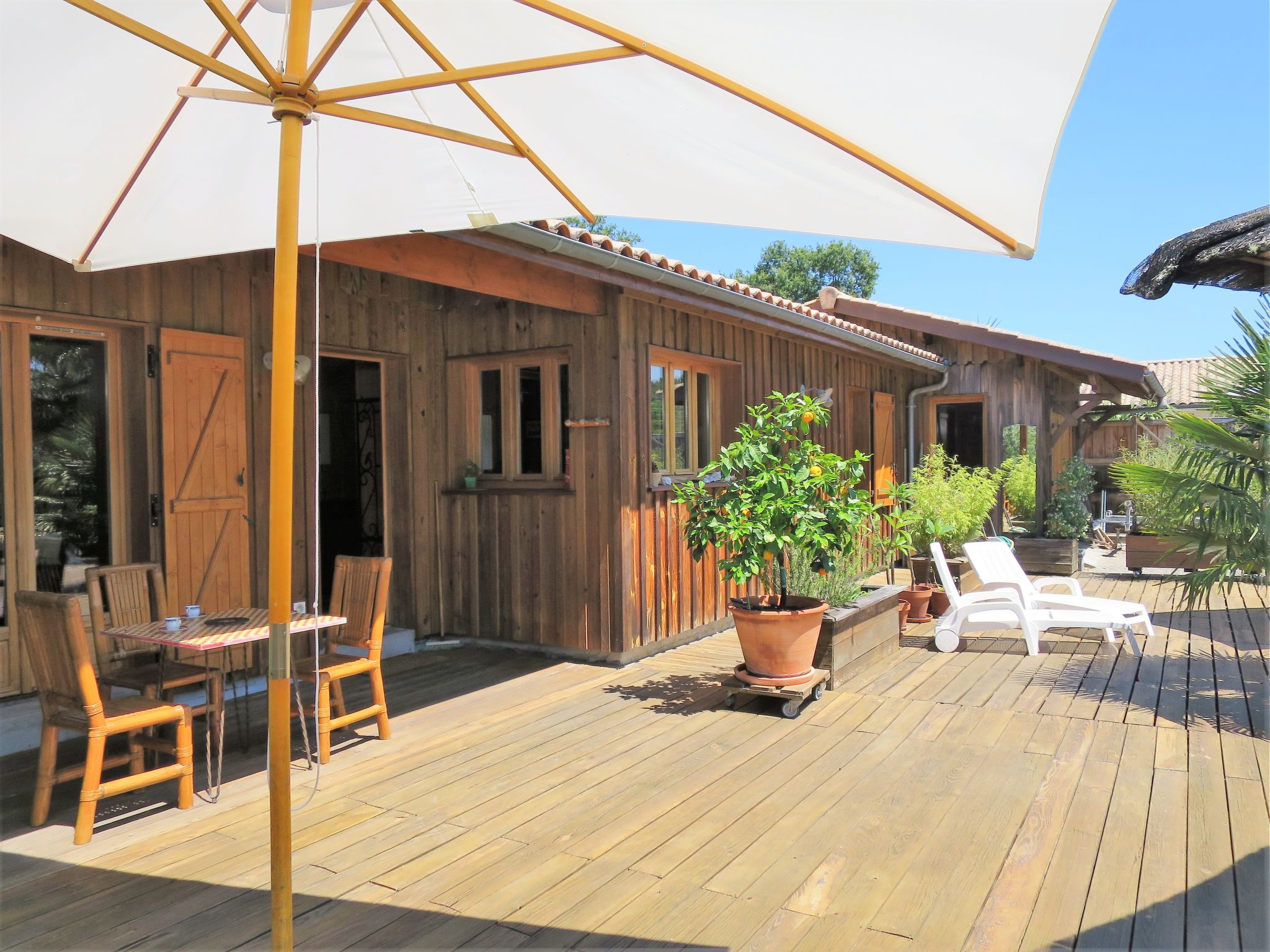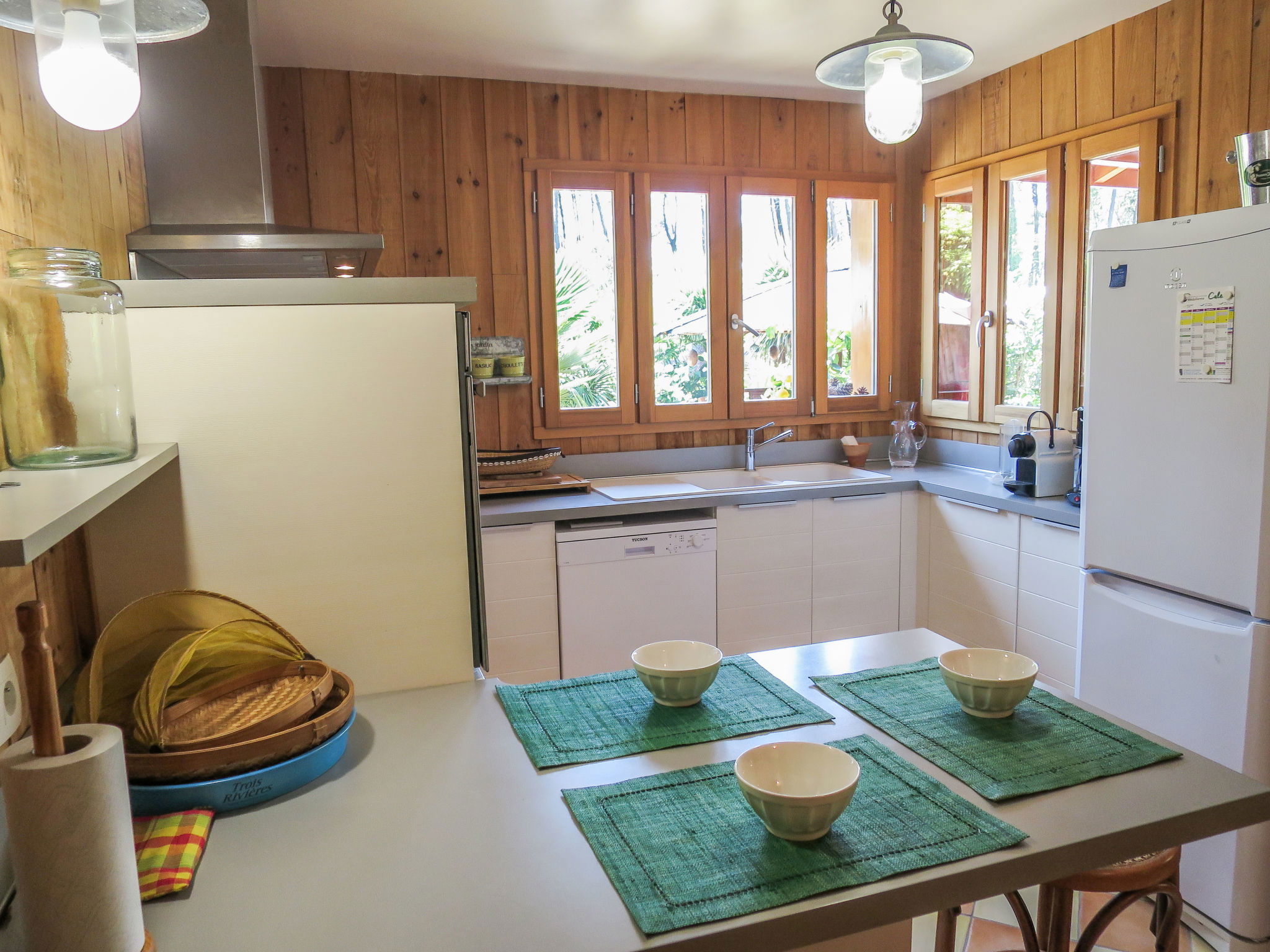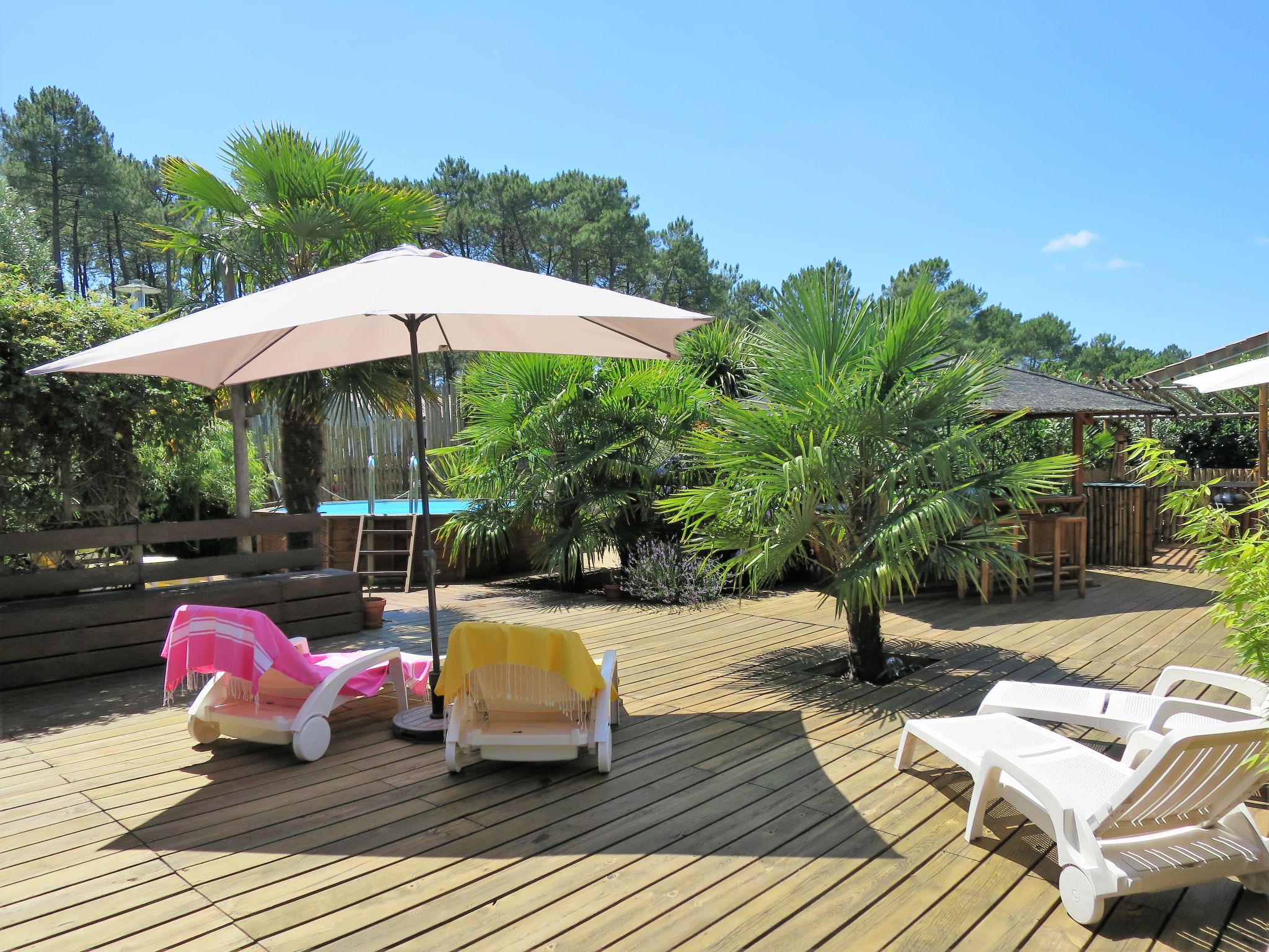 Single-family house "Ti Kaz Doudou", surrounded by trees. In the district of Ferron 1.5 km from the centre of Le Porge, 32 km from the centre of Cap Ferret, 50 km from the centre of Bordeaux, 9 km from the sea. Private: property 800 m2 (fenced) with trees, swimming pool (above ground) (4 m diameter, depth 130 cm, seasonal availability: 15.Jun. - 30.Sep.). Pergola, pool maintenance by the owner/gardener. Parking (for 2 cars) at the house. Shop 1.5 km, bus stop "Le ferron" 20 m, sandy beach "Le Porge Océan" 9 km.