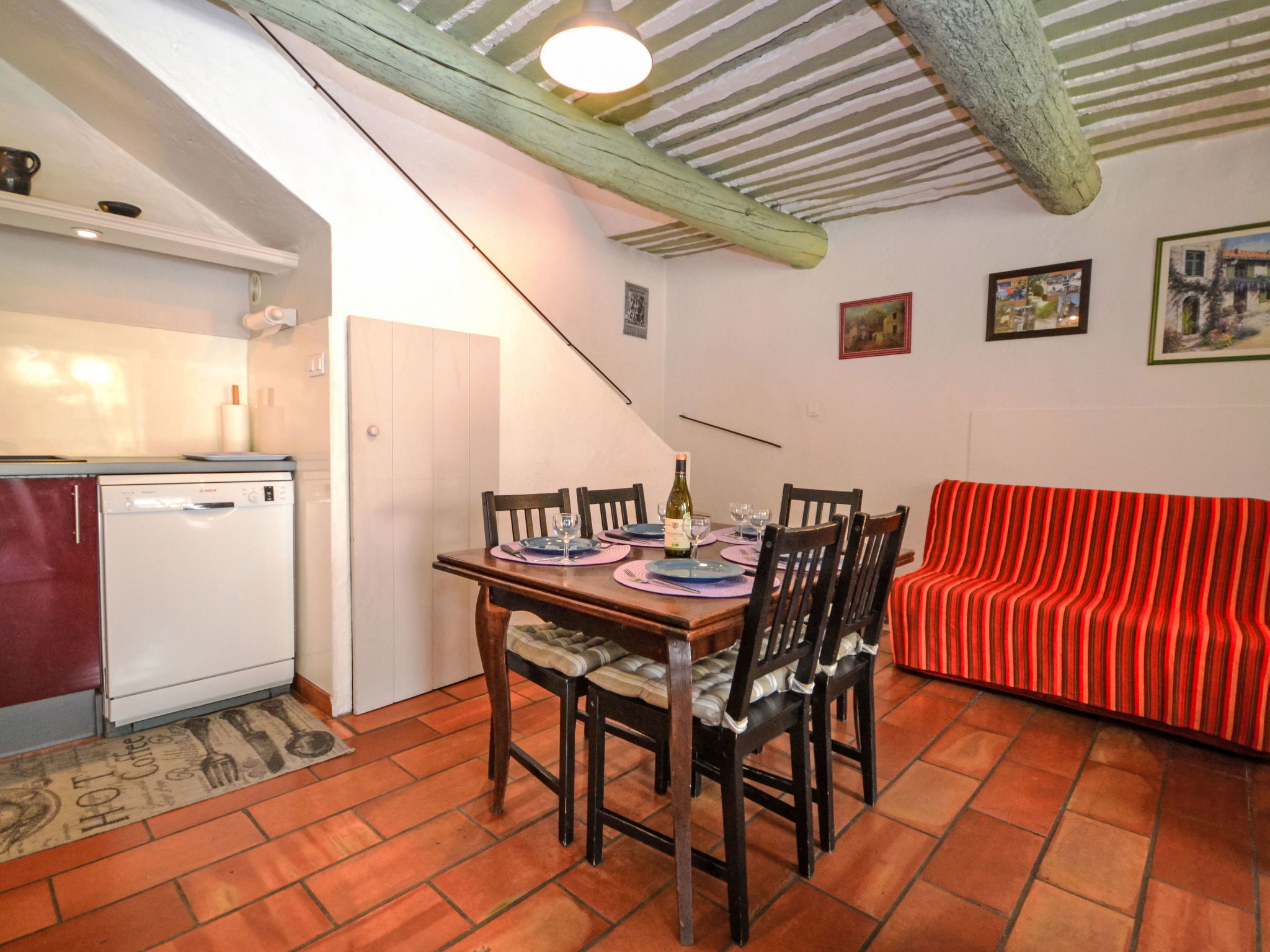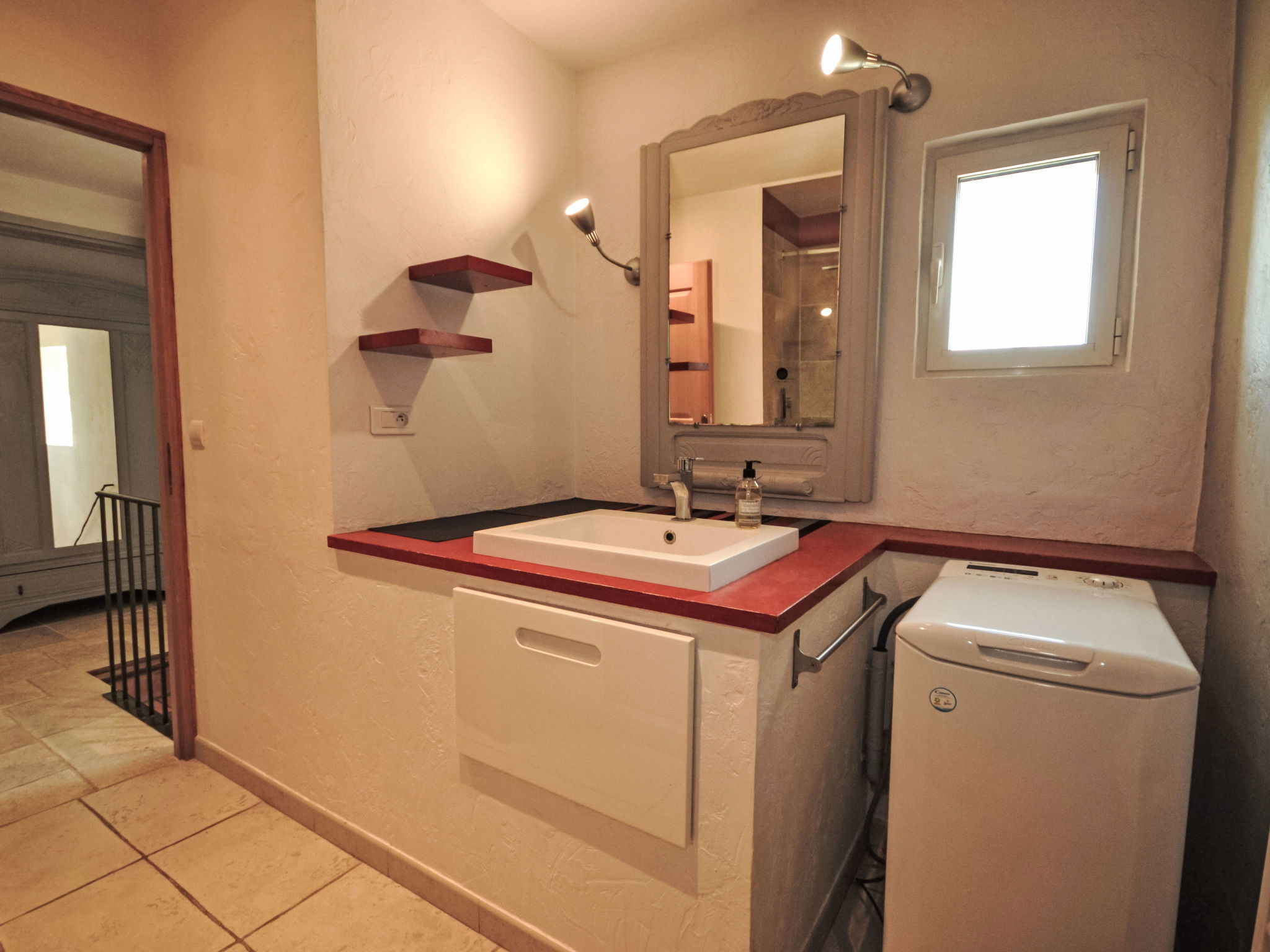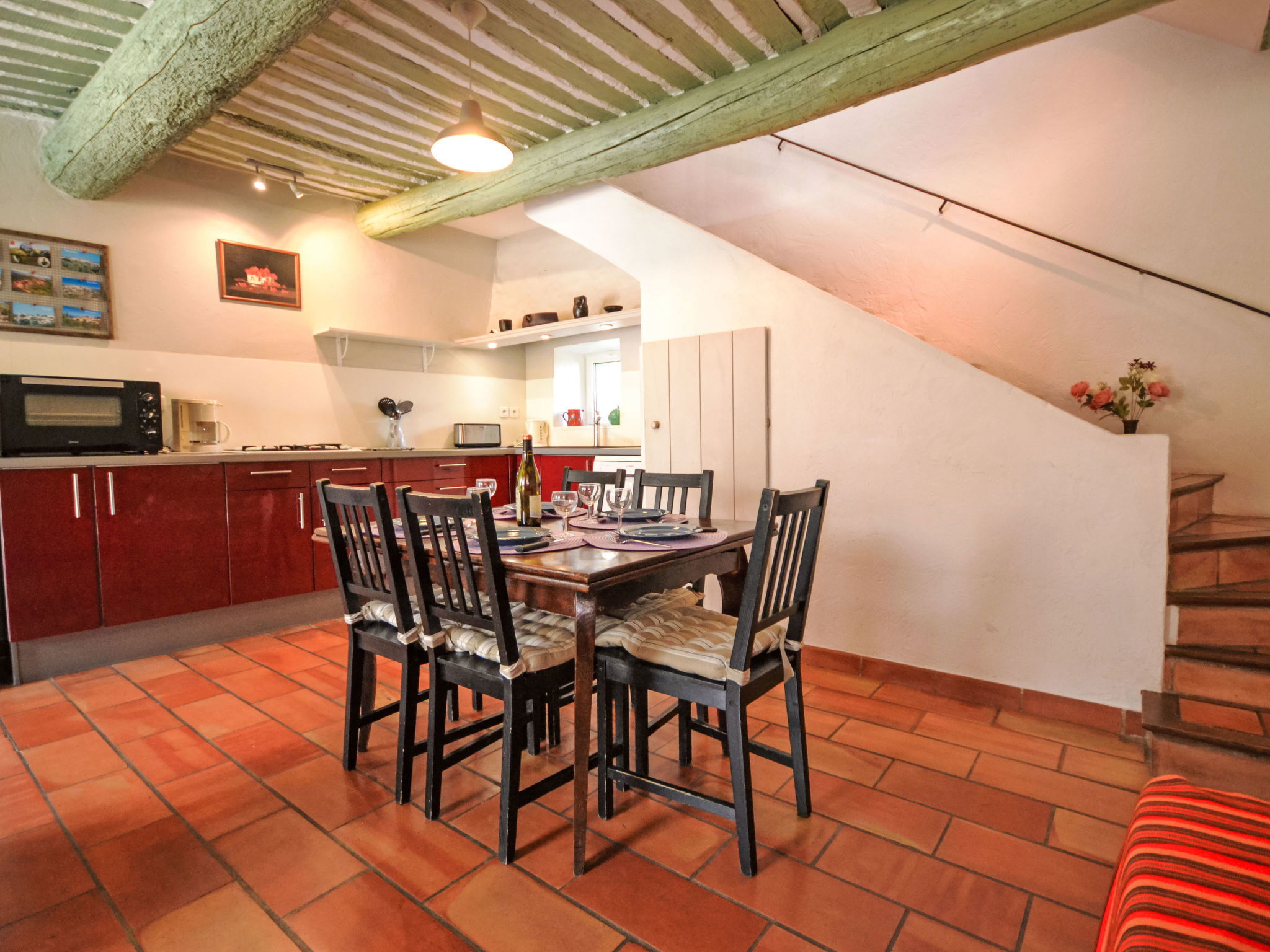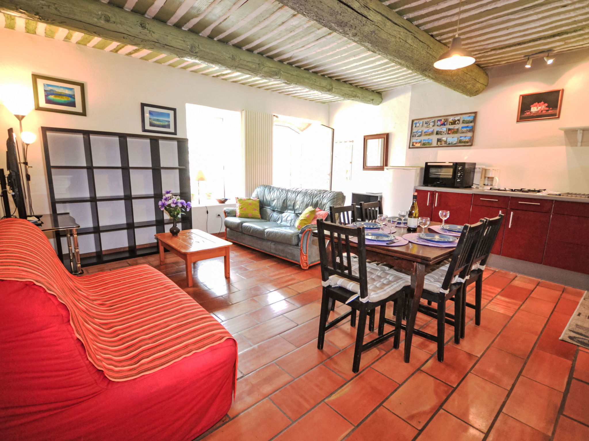 3-room terraced house 65 m2 on 2 levels. Rustic furnishings: living/dining room with TV and flat screen. Kitchenette (4 hot plates, dishwasher, electric coffee machine). Upper floor: 1 room with 1 french bed (140 cm, length 190 cm). 1 room with 1 bed (90 cm, length 190 cm), 1 french bed (1 x 140 cm, length 190 cm). Shower, sep. WC. Heating, air-conditioning. Terrace 15 m2. Terrace furniture, barbecue, deck chairs (4). View. Facilities: washing machine, iron, children's high chair, baby cot, hair dryer. Internet (WiFi, free). Please note: smoke alarm. FR8019.103.1