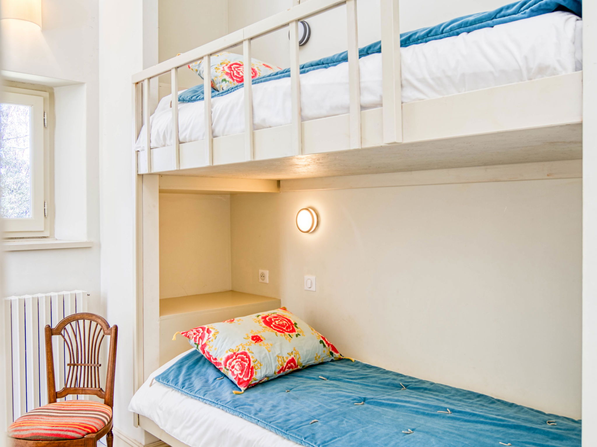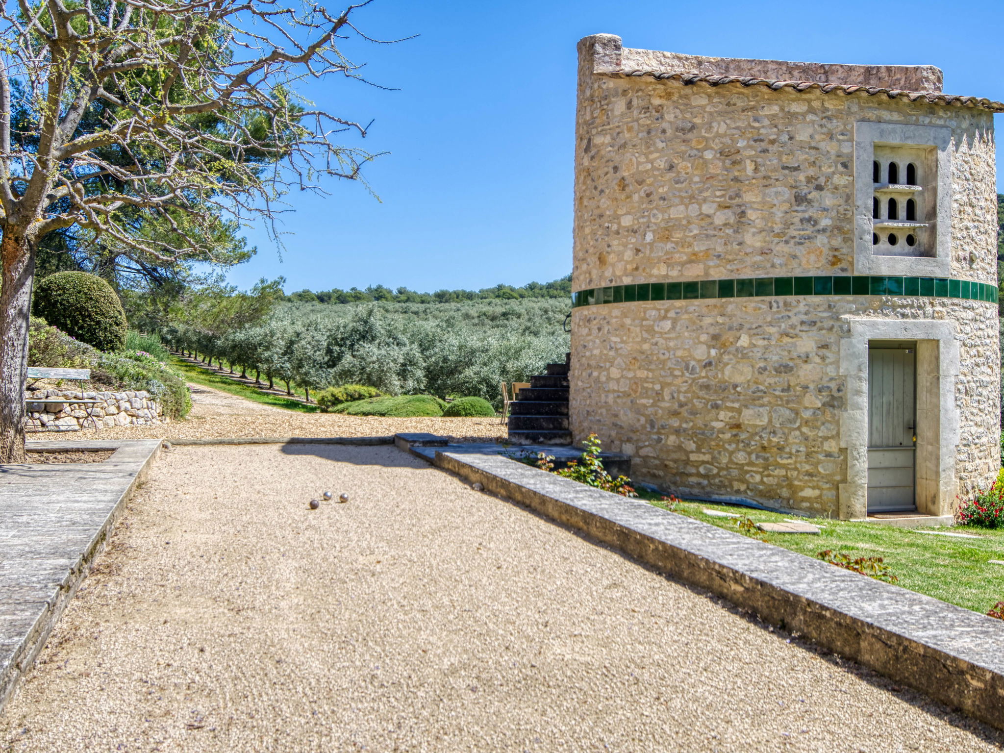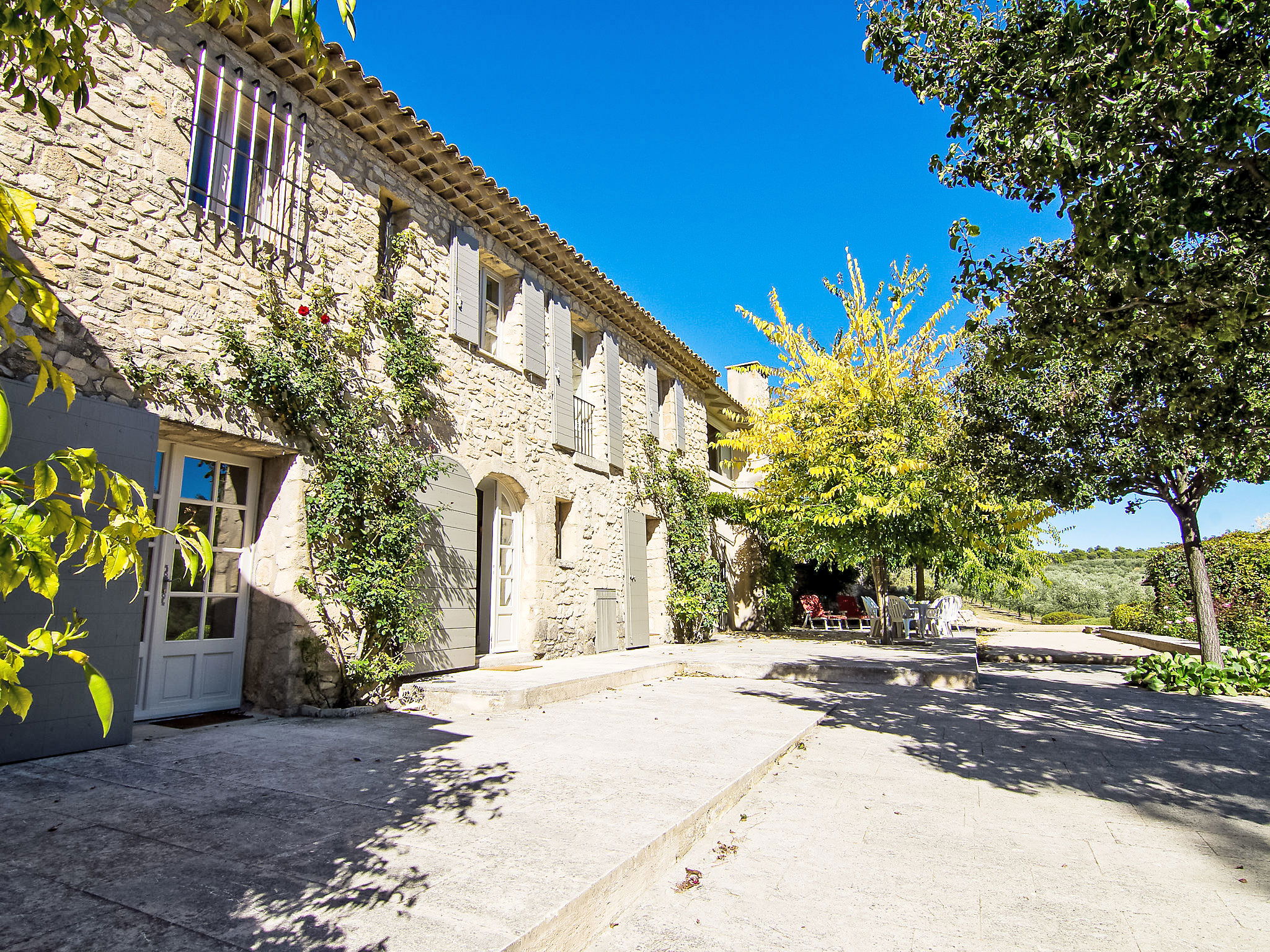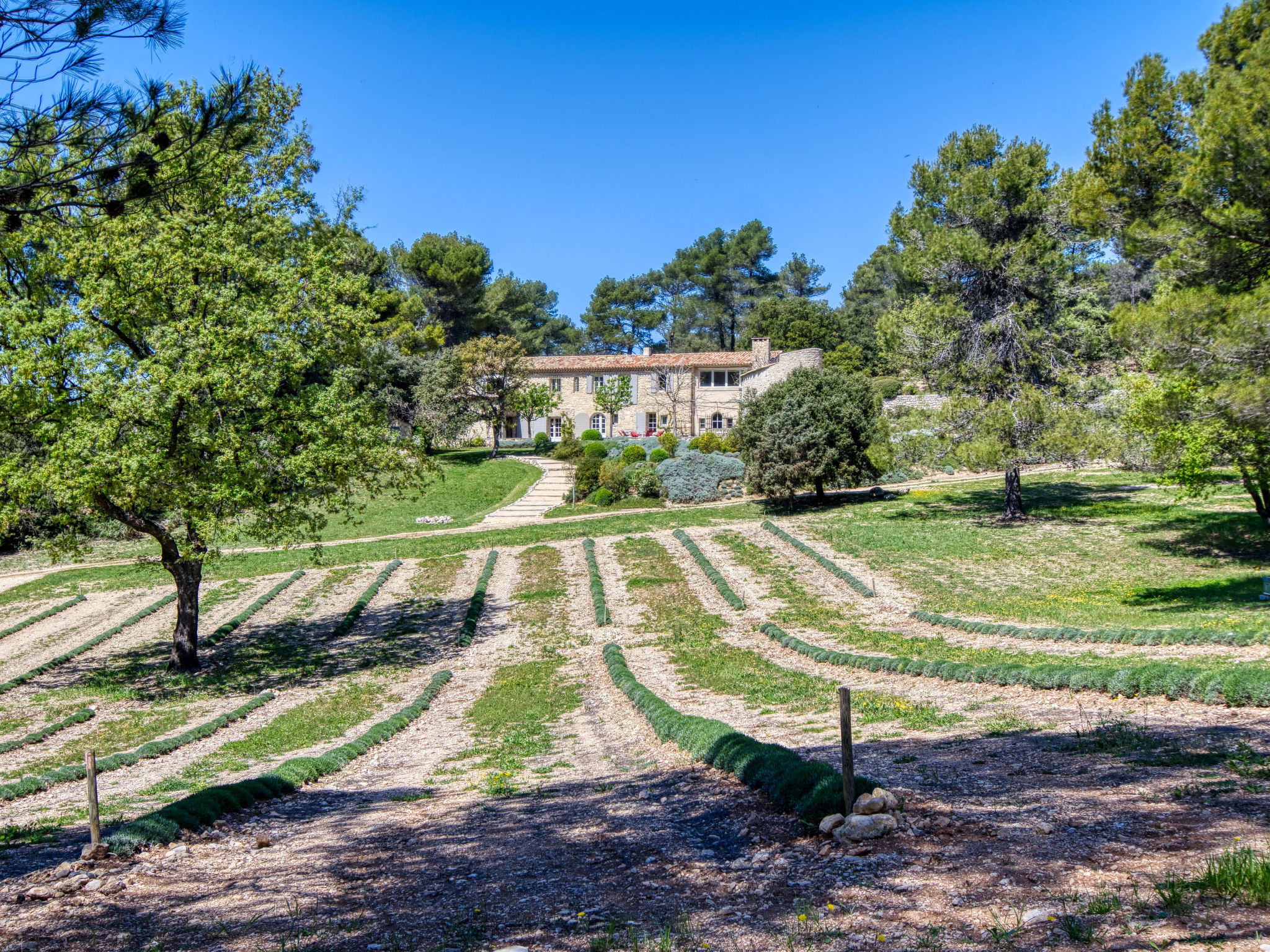 Located on land made up of woods, an olive grove and a lavender field. Available: plancha. Petanque pitch in front of the house. Pond at 150m with pontoon. two fountains on the property. On request, in addition, possibility of securing the services of a caterer or cook. Very beautiful house 2 storeys, surrounded by trees. Outside the resort, in a secluded, quiet, elevated position. Private: park 32 ha with trees, pond, swimming pool (12 x 6 m, depth 100 - 180 cm, seasonal availability: 01.May. - 30.Sep.) with internal staircase and shutter cover. Boules, terrace (20 m2), garden furniture, bathing jetty, pool maintenance by the owner/gardener. In the house: central heating system. Linen change (suppl. charge extra). Towel change (suppl. charge extra). Room cleaning daily on request (extra). Cook on request (extra). 1.7 km long bumpy motor access (via unmade road). Shop 5 km, restaurant 5 km, bus stop "Régusse" 8.5 km. Golf course (18 hole) 15 km, tennis 10 km. Please note: car recommended.
