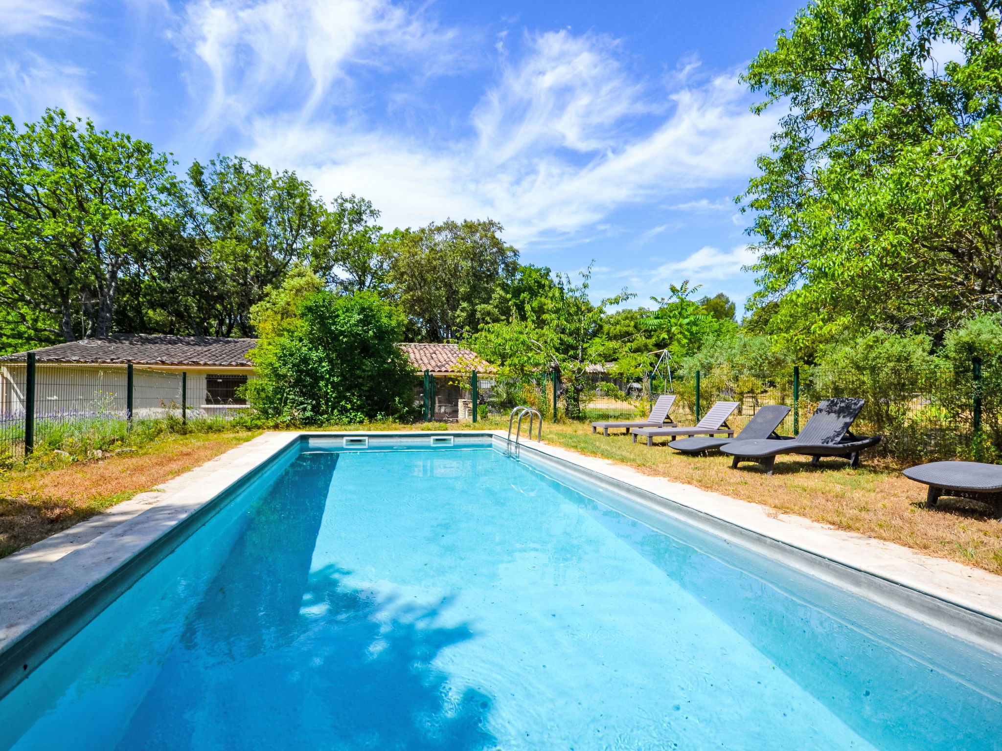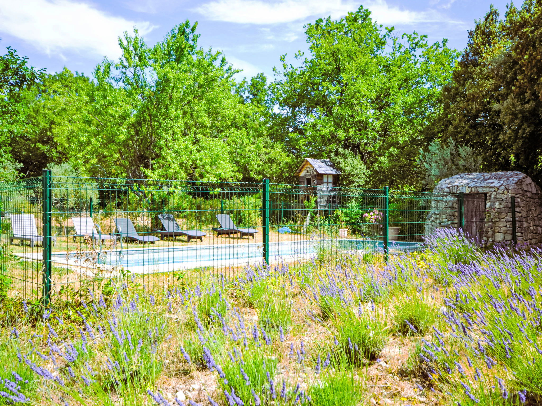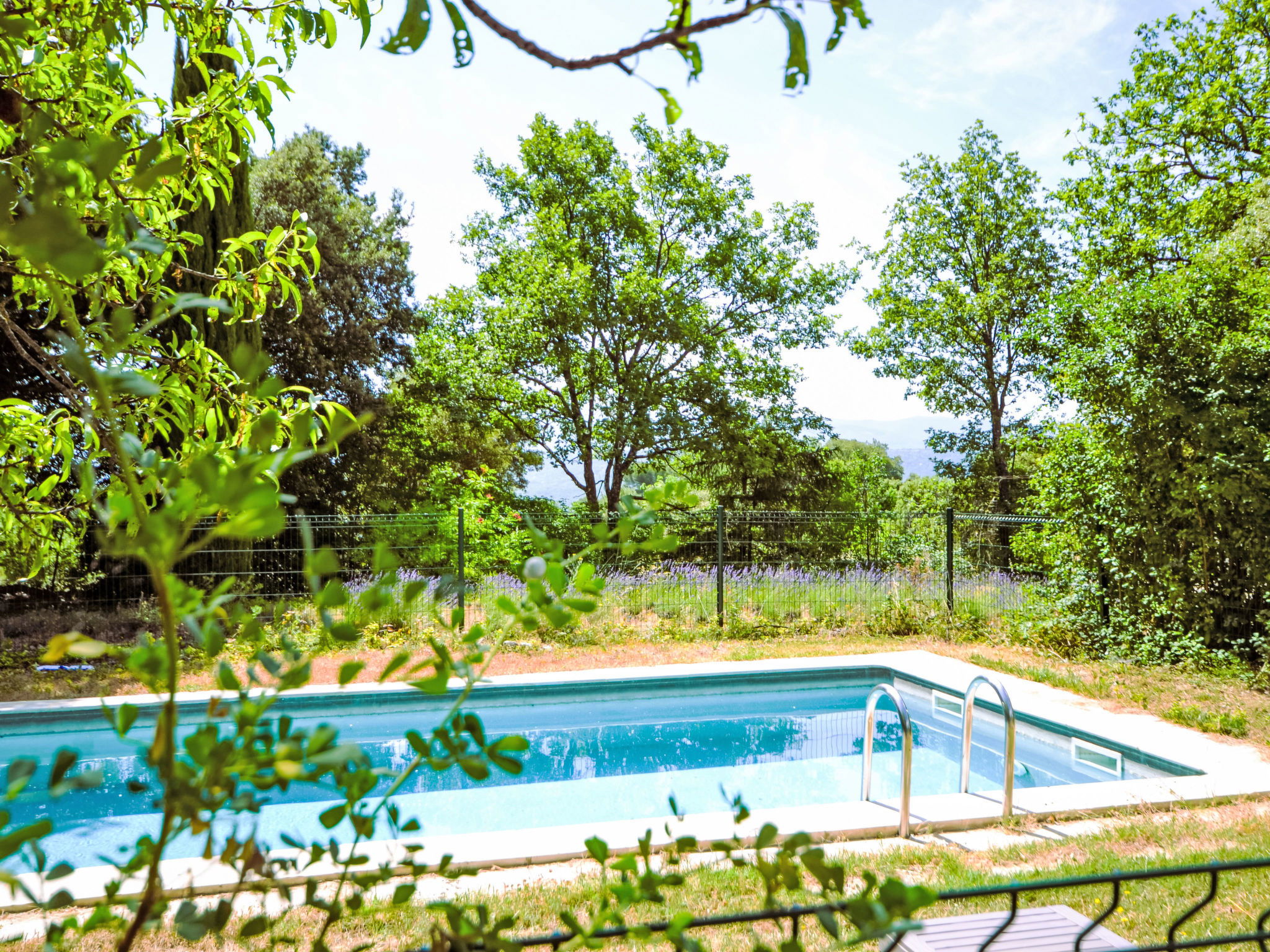 The covered terrace has a sink, a small fridge and an electrical grill. Mas "Le Bois d'Amour", built in 1900, renovated, surrounded by trees. Outside the resort, 2.5 km from the centre of d'Apt, in a quiet position, 100 m from the edge of the forest, north-east facing position. Private: property 2'500 m2 (fenced) with flowers and trees, swimming pool fenced (10 x 4 m, depth 150 cm, seasonal availability: 01.May. - 15.Oct.) with alarm system. Outdoor shower, terrace, garden furniture. Motor access to the house (50 m via unmade road). Parking on the premises. E-charging station. Shop 4 km, grocery 4 km, restaurant 4 km, bakery 4.8 km, bicycle rental 4.3 km, bus stop "Gare Routière" 5 km, lake Plan d'eau d'Appartement de 6.4 km. Golf course (9 hole) 5.2 km, children's playground 5 km. Nearby attractions: Colorado de Rustrel 10 km, Les Ocres de Roussillon 11 km, Village classé de Gordes 10 km, Simiane La Rotonde 24 km, Avignon 54 km. Hiking paths: Parc Régional des Alpilles 30 km, Forêt des Cèdres 22 km, Parc Régional du Luberon 10 km. Please note: car recommended.