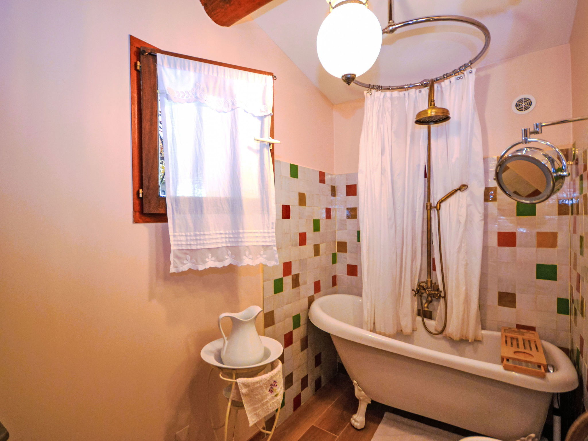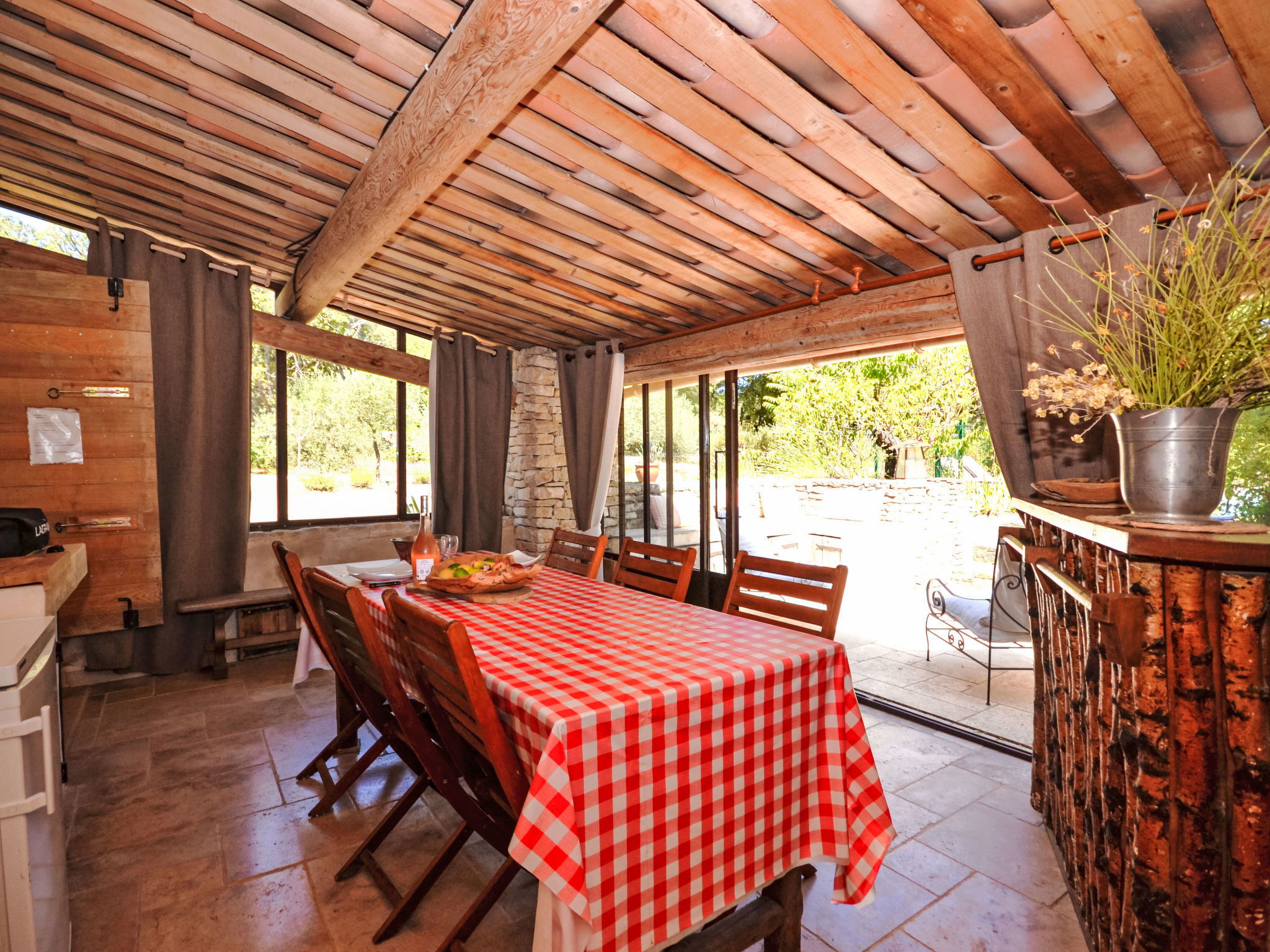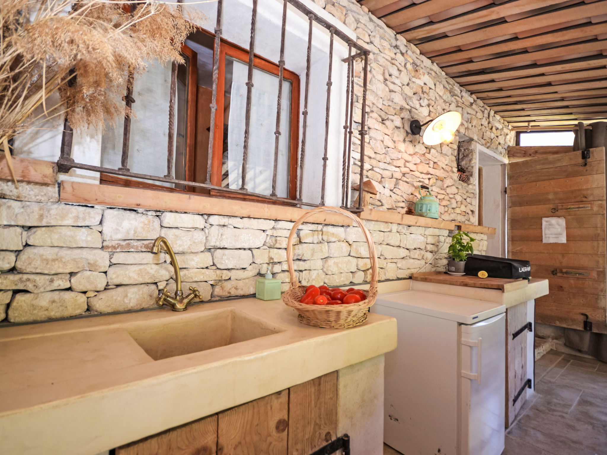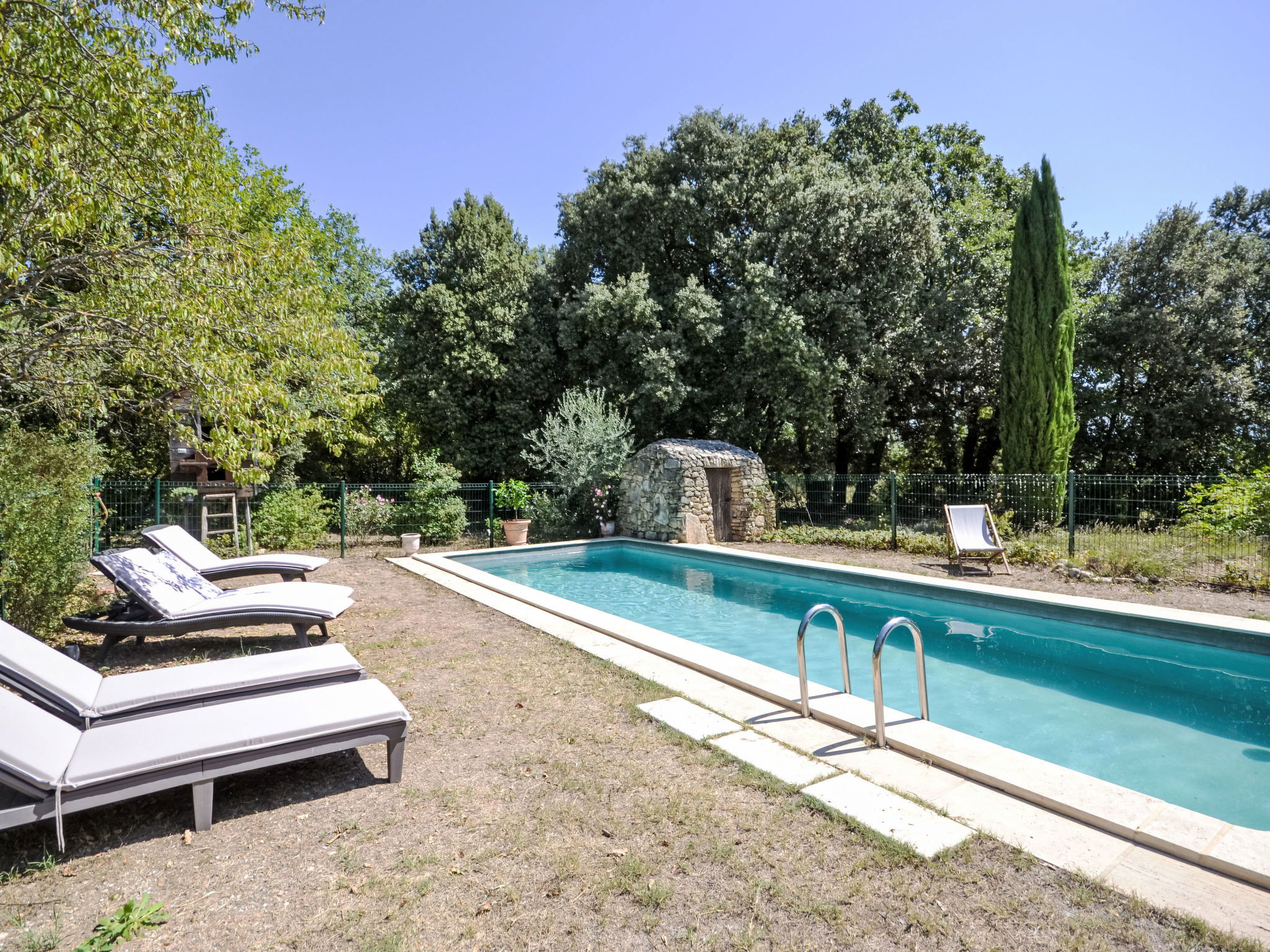 The covered terrace has a sink, a small fridge and an electrical grill. Mas "Le Bois d'Amour", built in 1900, renovated, surrounded by trees. Outside the resort, 2.5 km from the centre of d'Apt, in a quiet position, 100 m from the edge of the forest, north-east facing position. Private: property 2'500 m2 (fenced) with flowers and trees, swimming pool fenced (10 x 4 m, depth 150 cm, seasonal availability: 01.May. - 15.Oct.) with alarm system. Outdoor shower, terrace, garden furniture. Motor access to the house (50 m via unmade road). Parking on the premises. E-charging station. Shop 4 km, grocery 4 km, restaurant 4 km, bakery 4.8 km, bicycle rental 4.3 km, bus stop "Gare Routière" 5 km, lake Plan d'eau d'Appartement de 6.4 km. Golf course (9 hole) 5.2 km, children's playground 5 km. Nearby attractions: Colorado de Rustrel 10 km, Les Ocres de Roussillon 11 km, Village classé de Gordes 10 km, Simiane La Rotonde 24 km, Avignon 54 km. Hiking paths: Parc Régional des Alpilles 30 km, Forêt des Cèdres 22 km, Parc Régional du Luberon 10 km. Please note: car recommended.