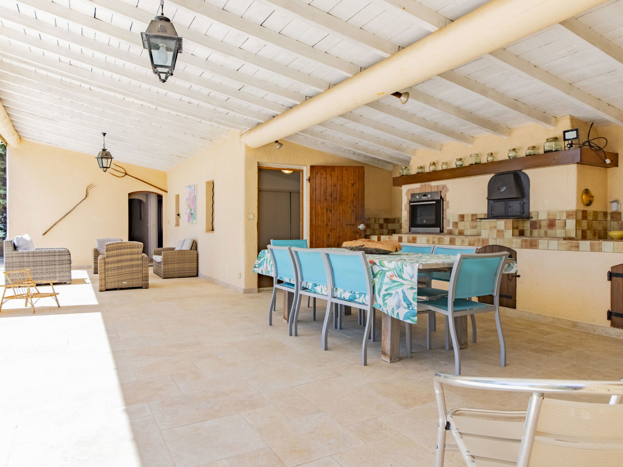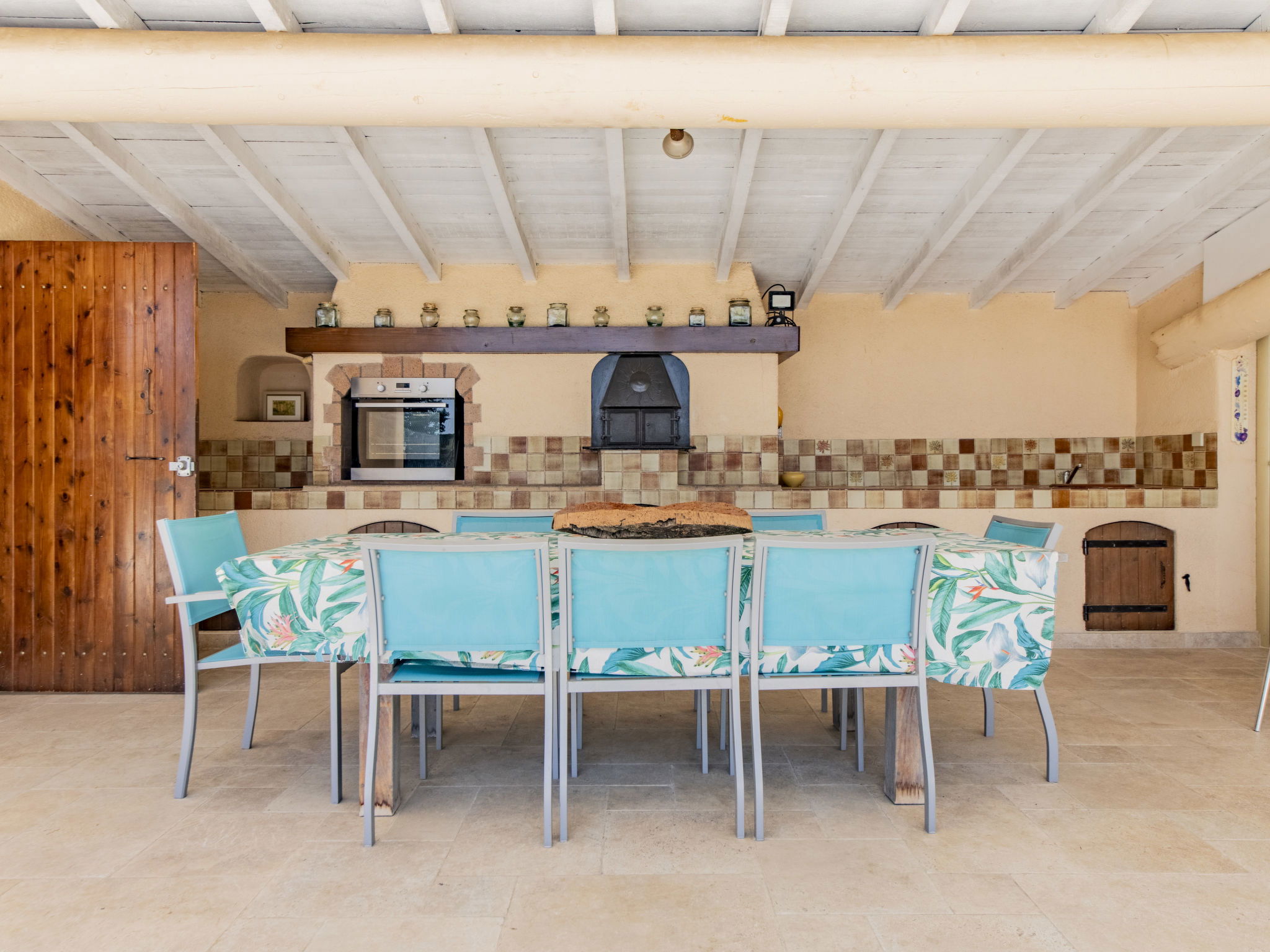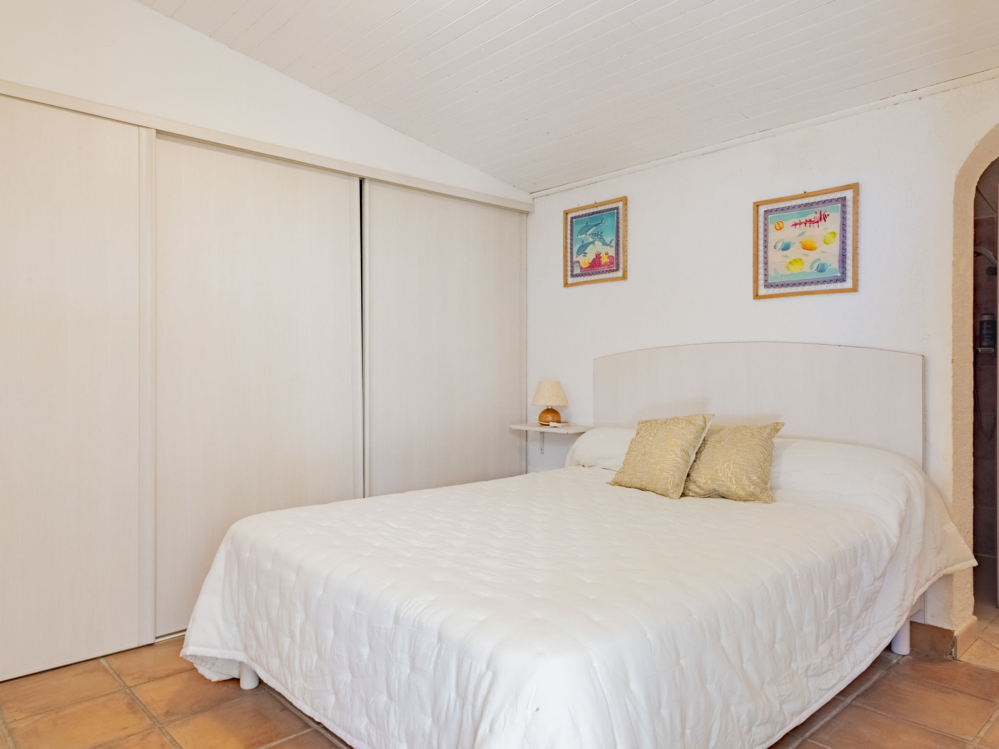 4-room house 100 m2. Living/dining room 40 m2 with TV (flat screen), hi-fi system. Exit to the terrace. 3 rooms, each room with 1 french bed (1 x 140 cm, length 190 cm), shower/WC and TV (flat screen). Kitchenette (4 hot plates, oven, dishwasher, microwave, freezer). Heating. Facilities: washing machine, children's high chair, baby cot for up to 2 year olds. Please note: smoke alarm. The bedrooms are accessible only from the pool house and two of them have mosquito nets.