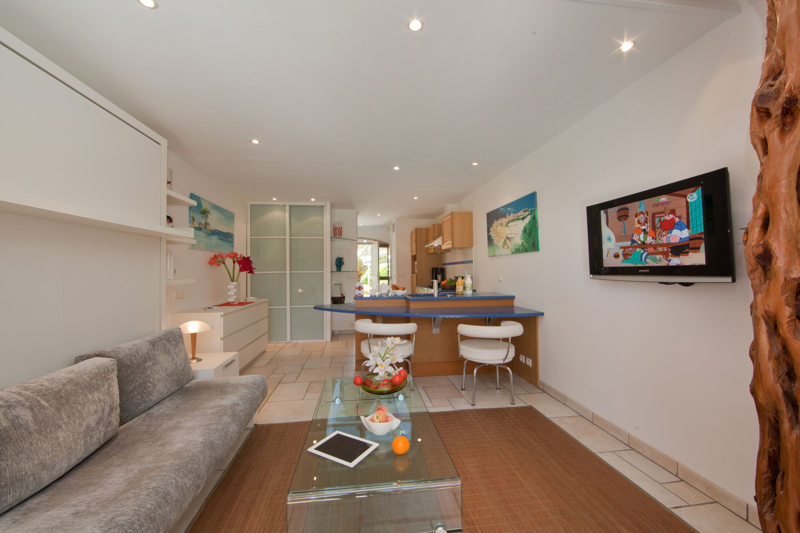 A superb cedar wood decking terrace leads to a magnificent private garden, tastefully planted with trees and lush greenery. Its level layout, Mediterranean décor and welcoming, refined designer atmosphere will transport you to a magical world.