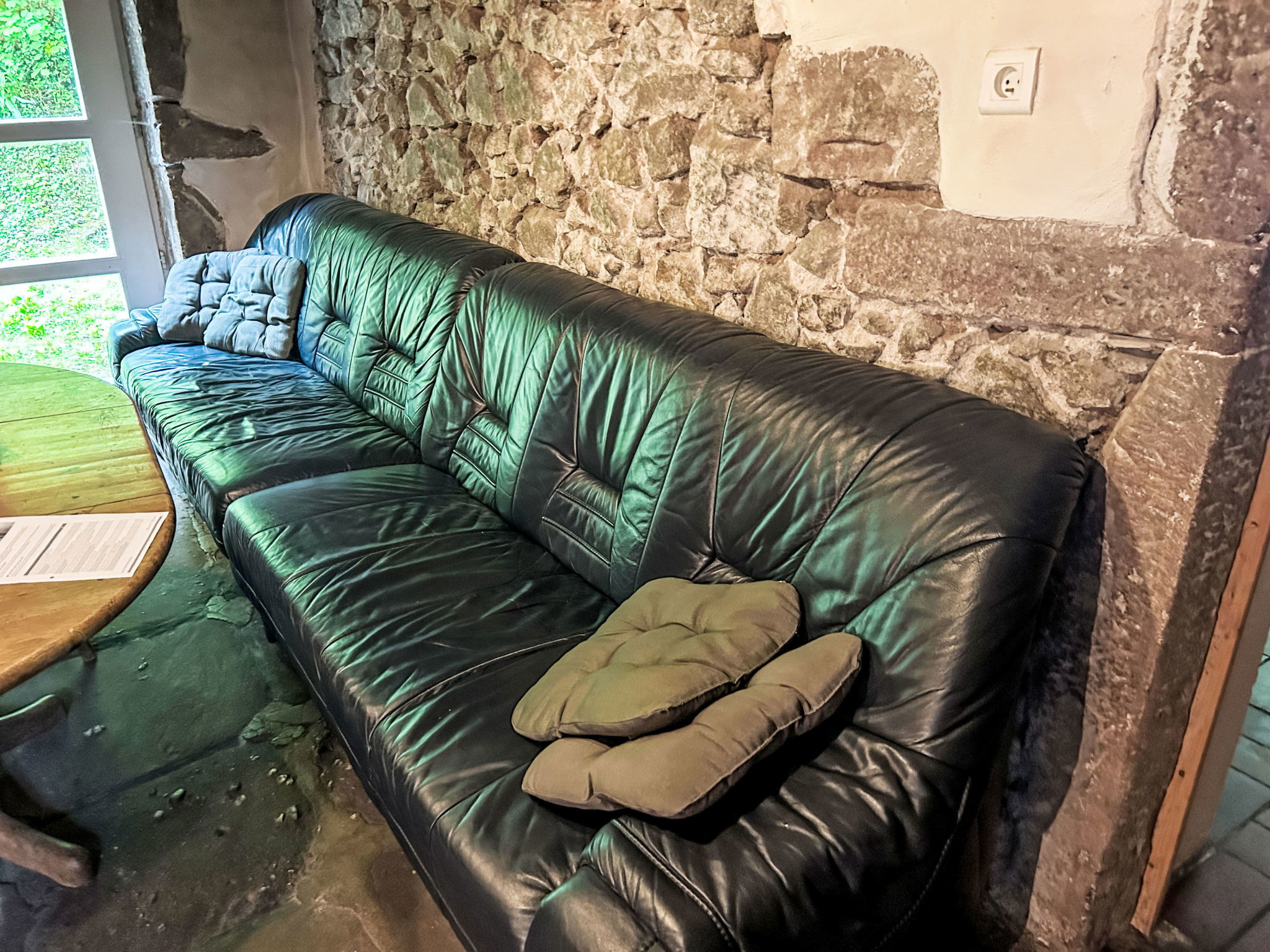 House "Escher", detached. 3.8 km from the centre of Thiéfosse, 42 km from the centre of Épinal, 110 km from the centre of Nancy, in a quiet position on a slope, 6 km from the lake, in the woods. Private: property 350 m2 with meadow. Patio, garden furniture, fireplace. In the house: sauna. Storeroom available. 200 m long bumpy, narrow motor access to the house (via unmade road). Parking (for 5 cars) on the premises. Supermarket 6 km, bus stop "Thiefosse Centre" 4 km. Groups of teenagers on request only. The tap water has no drinking water quality. Important note: Water supply from our own spring. In the event of extreme drought during the season, it may not be possible to guarantee an adequate water supply. In this case, the property will be cancelled by HHD free of charge and any amounts already paid will be refunded. The customer is not entitled to make any further claims in this regard.