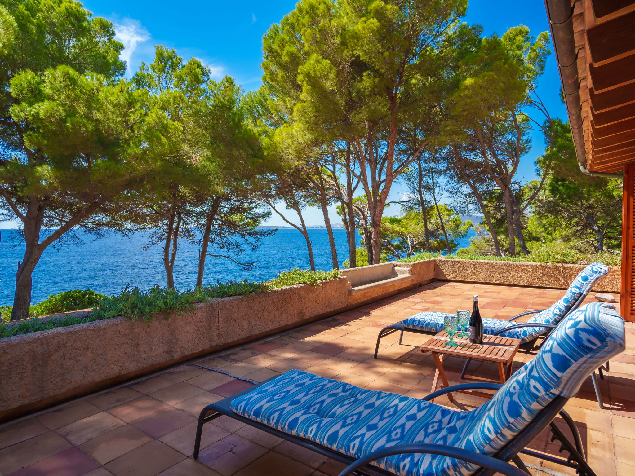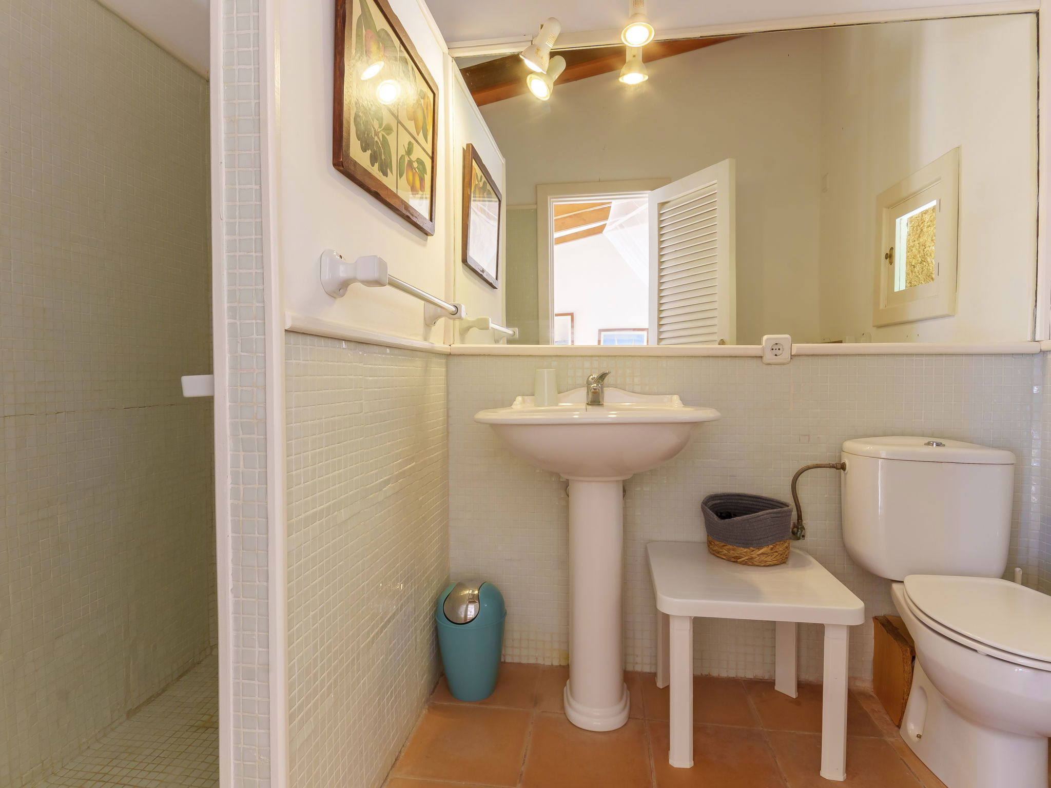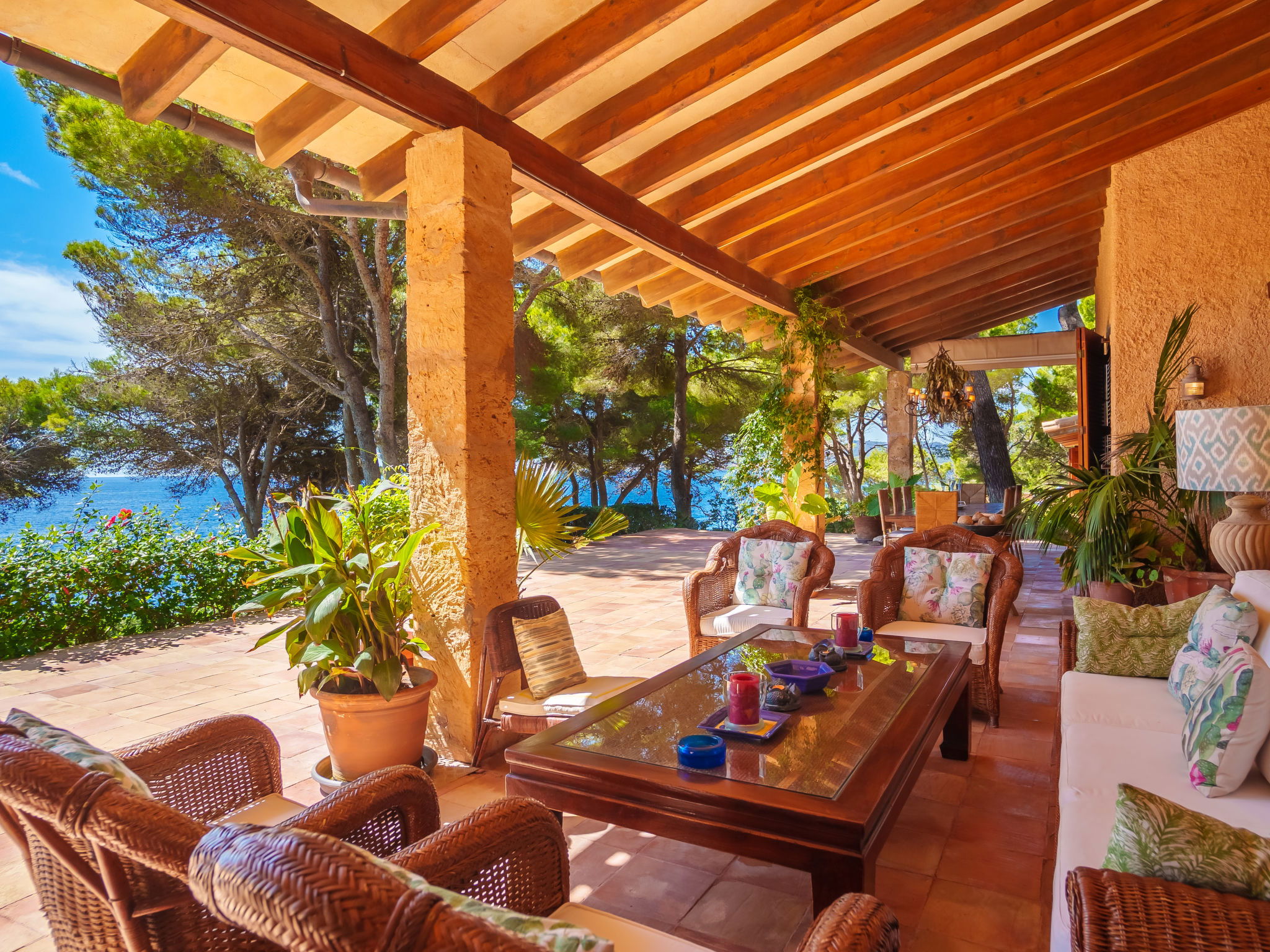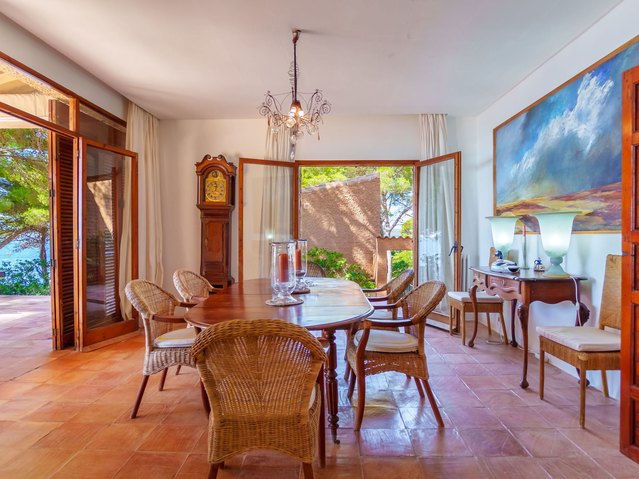 Costa de los Pinos 7 km from Son Servera: Large villa "Finca L'Embat (DLP100)". Property composed of main house and outbuilding 1.2 km from the centre of Costa de los Pinos, 6.5 km from the centre of Cala Millor, 23 km from the centre of Manacor, on a slope, residential area (villas), at the seaside, direct access to the beach. Private: property 6'500 m2, well-kept terraced garden with lawn and trees, roofed, parking on the premises. Shop 1.2 km, restaurant 1.2 km, sandy beach 2 km, rocky beach 50 m. Golf course 2 km. Please note: car recommended.